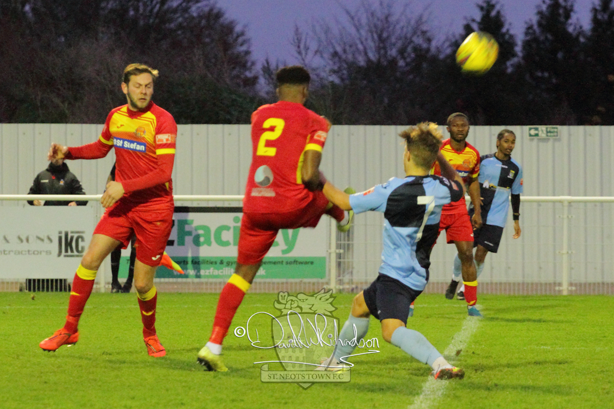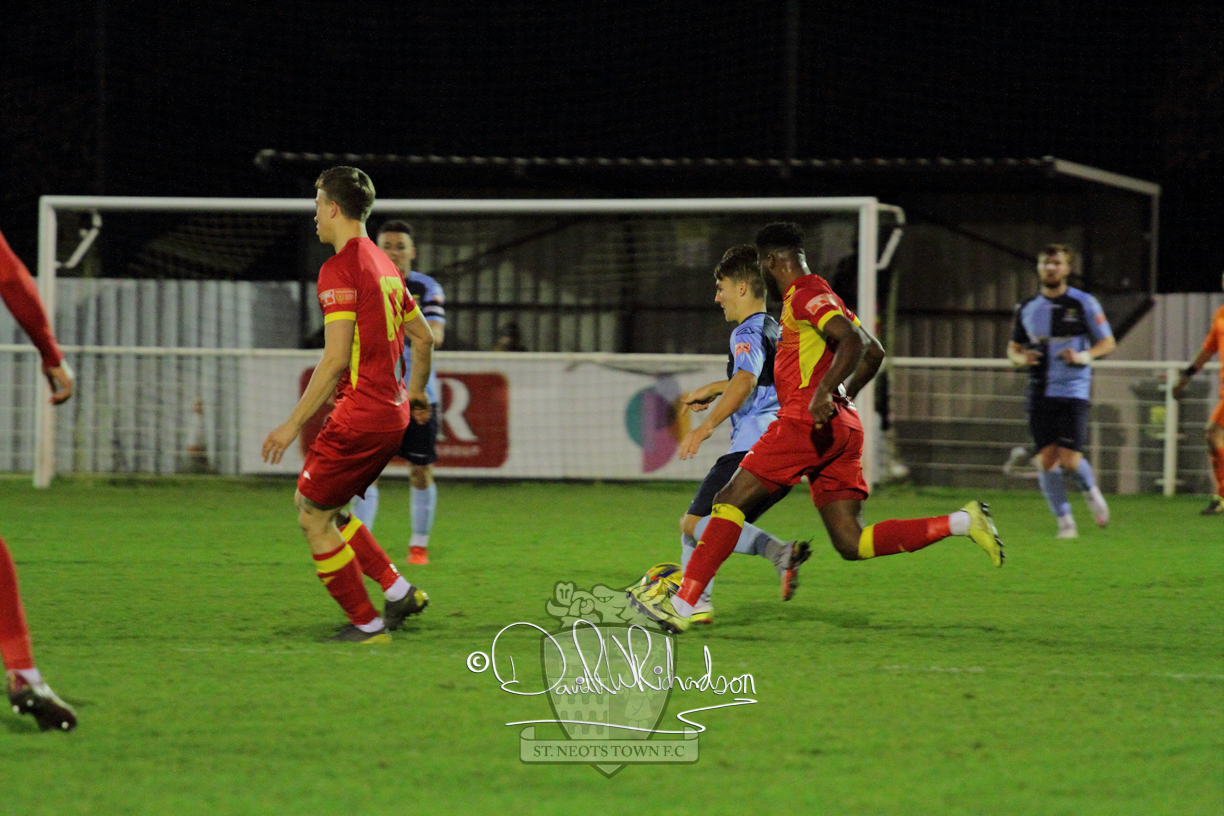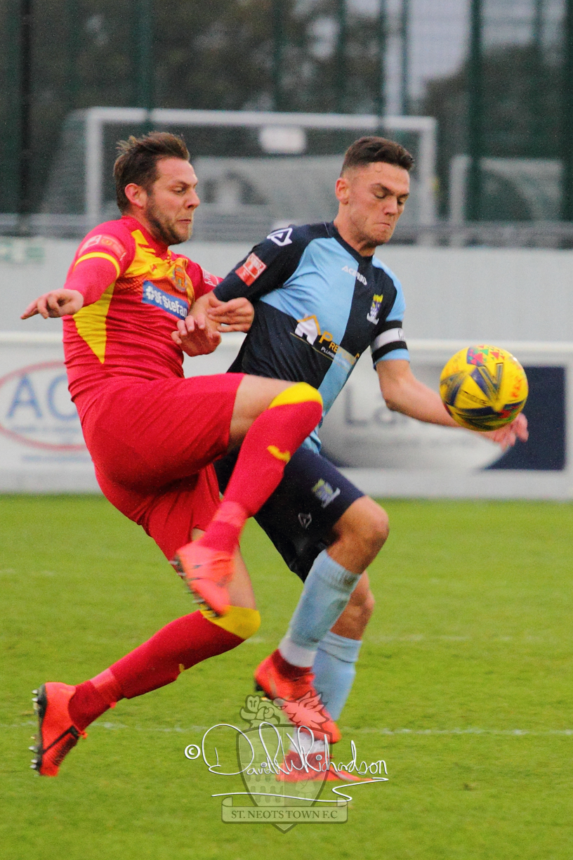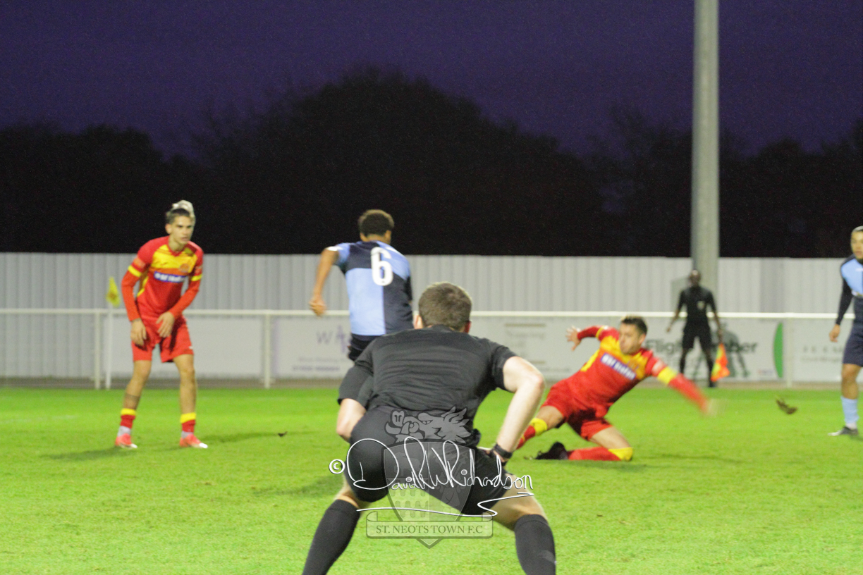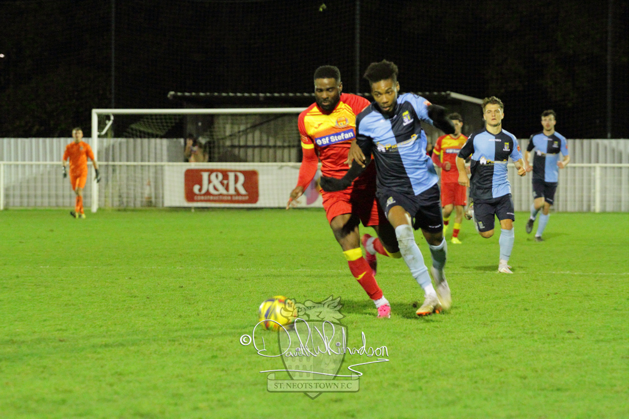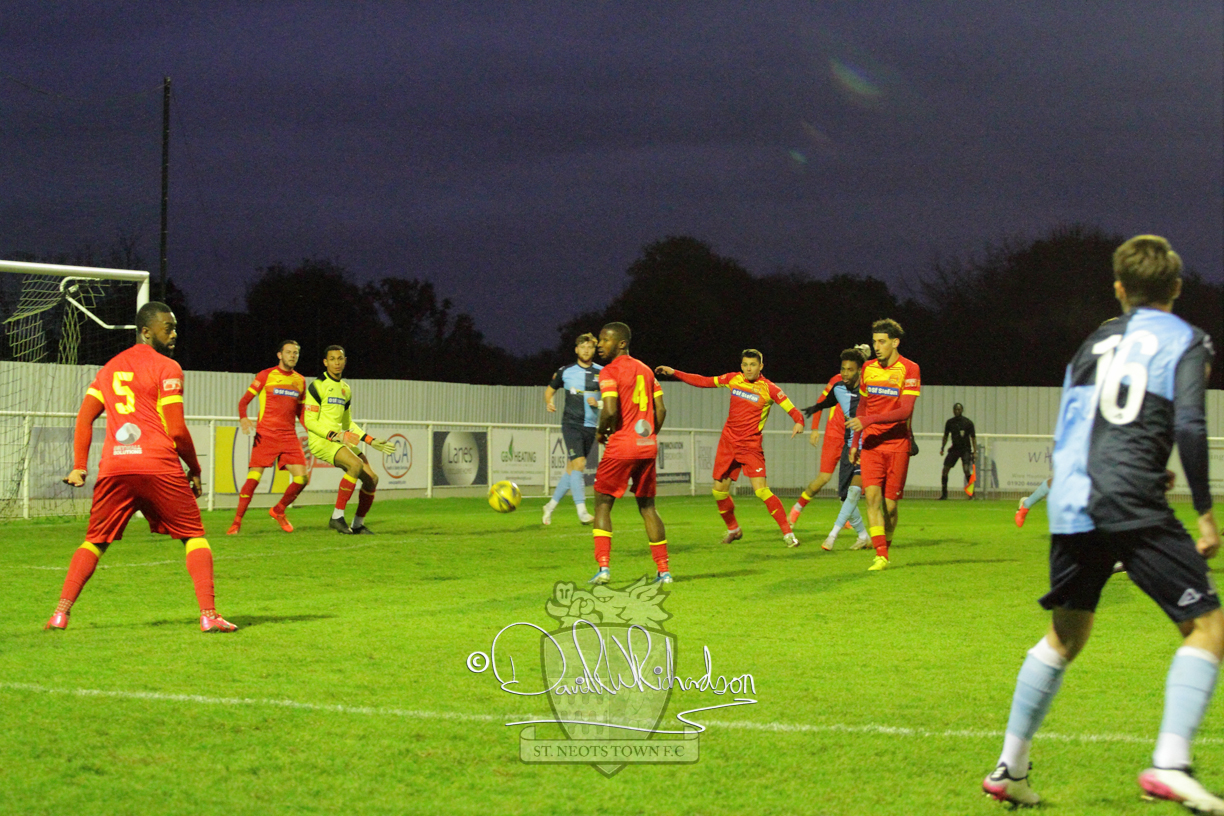 However, thankfully this proved to be the spur St Neots required and they recovered to score twice, and deservedly take home the three points avenging their opening day league defeat at St Neots. The visitors controlled much of the match throughout but failed to turn their possession into goals and at times seemed intimidated by the home sides’ tactics. There were three changes in the St Neots line up with Aaron Smith back from his loan period, replacing Wynford Marfo at full back, Elliott Sartorius leading the attack for Neo Richard-Noel, and most recent signing Ky Marsh-Brown (brother of Kwai) replacing the departed Brendon Shabani.