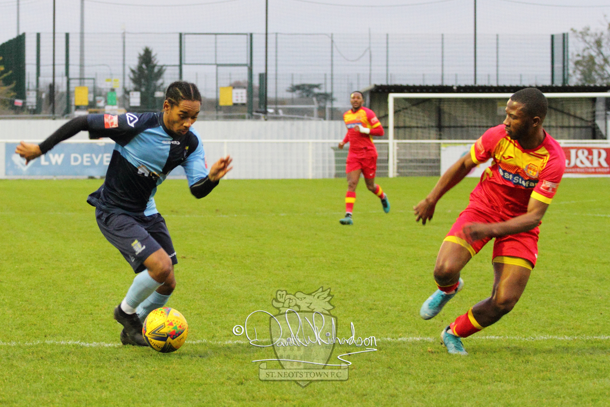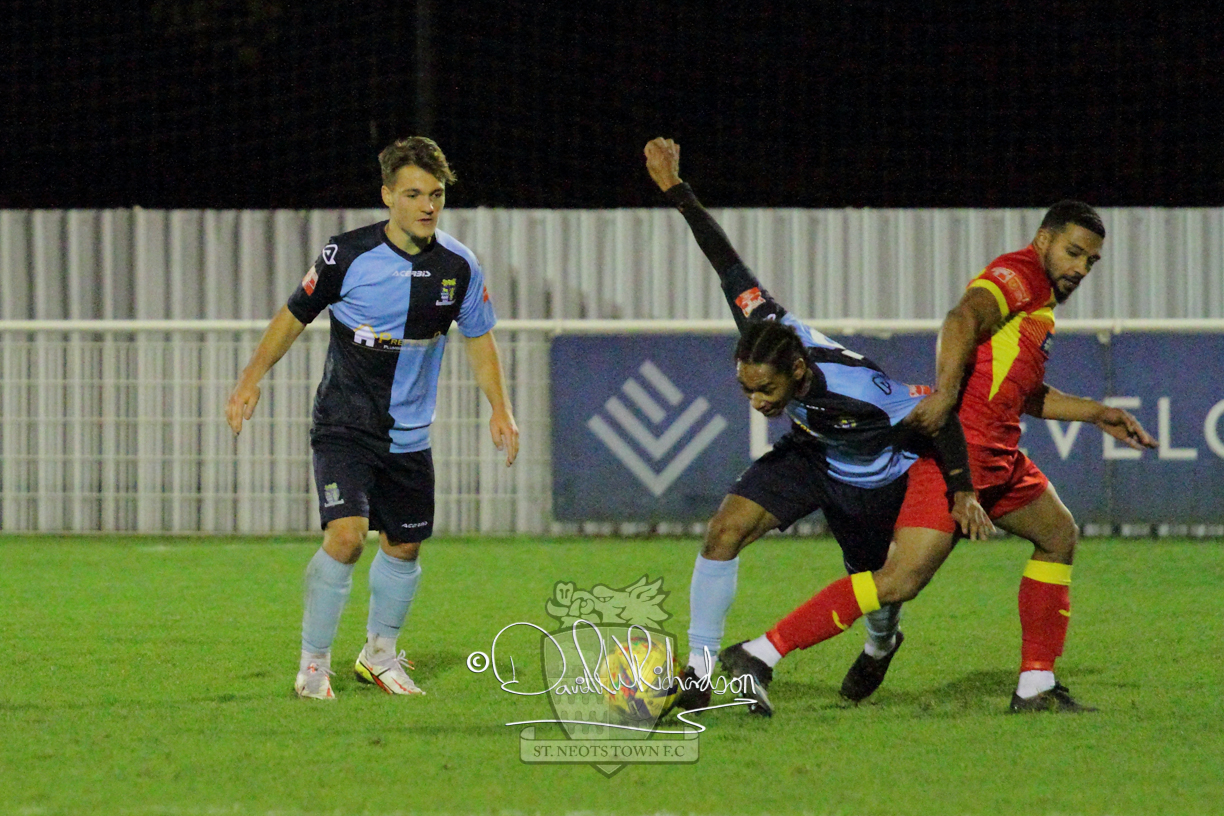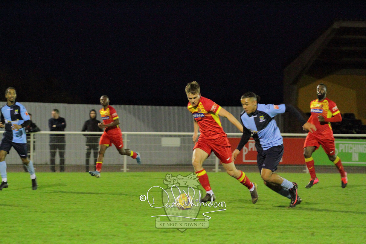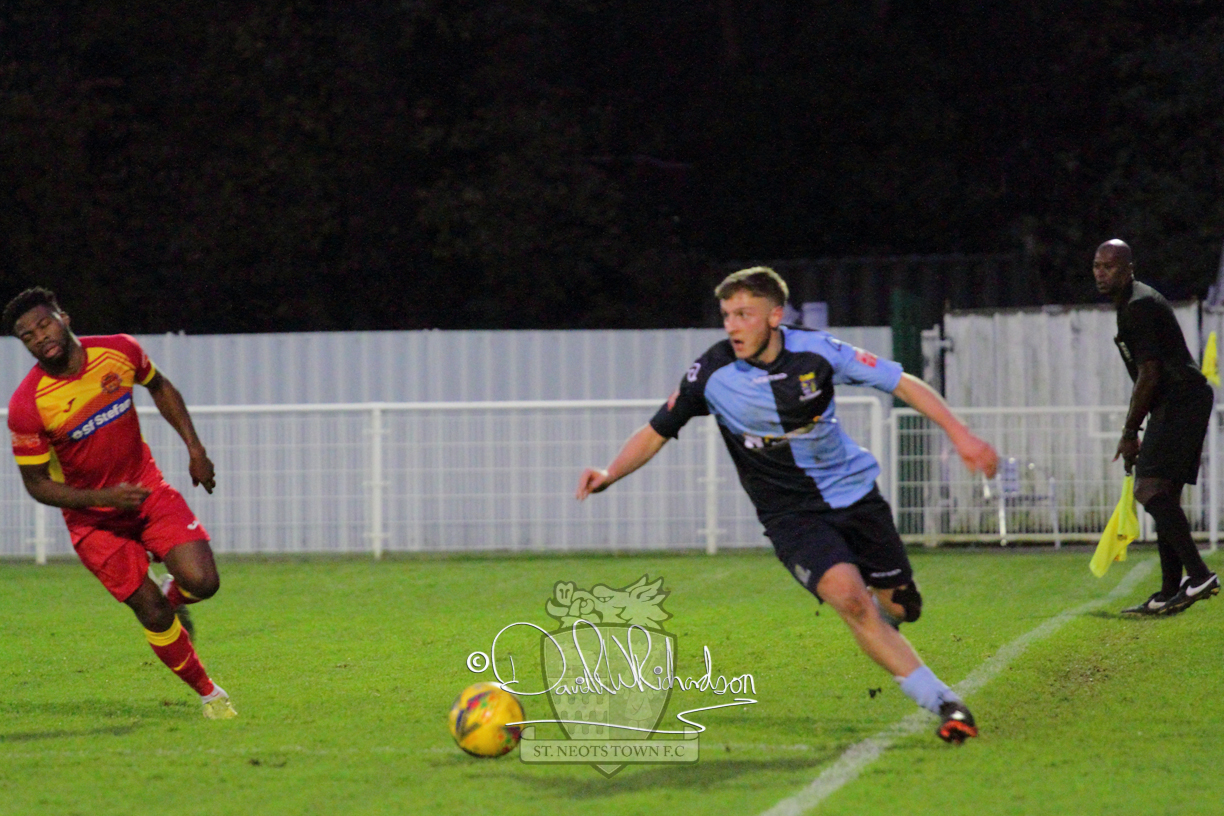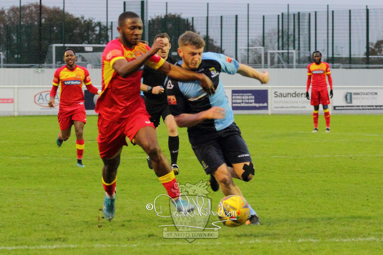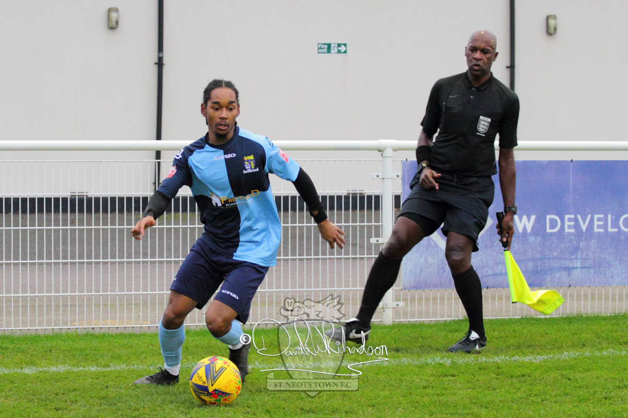 However, thankfully this proved to be the spur St Neots required and they recovered to score twice, and deservedly take home the three points avenging their opening day league defeat at St Neots. The visitors controlled much of the match throughout but failed to turn their possession into goals and at times seemed intimidated by the home sides’ tactics. There were three changes in the St Neots line up with Aaron Smith back from his loan period, replacing Wynford Marfo at full back, Elliott Sartorius leading the attack for Neo Richard-Noel, and most recent signing Ky Marsh-Brown (brother of Kwai) replacing the departed Brendon Shabani.