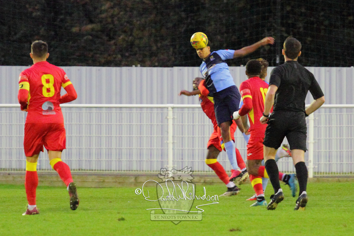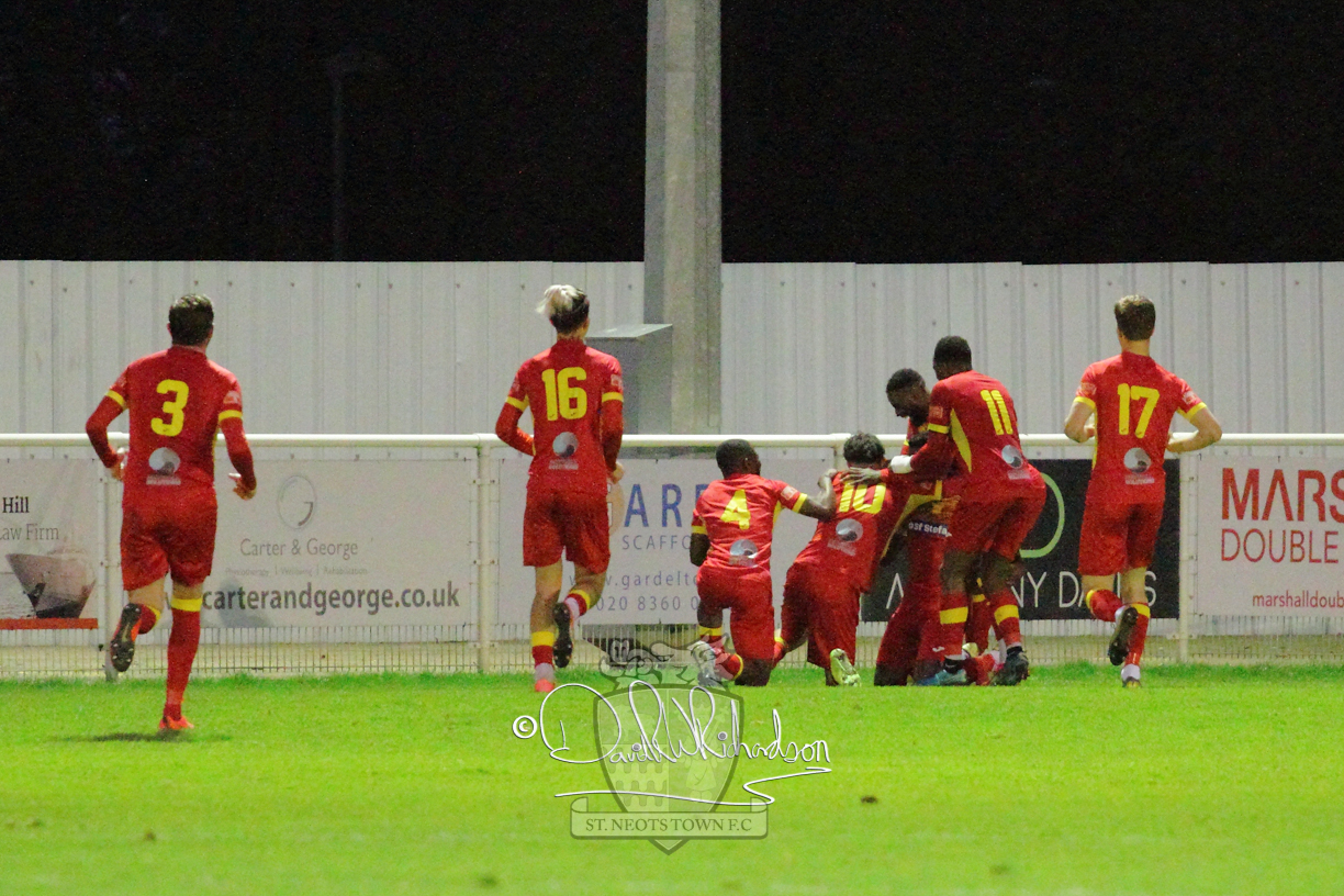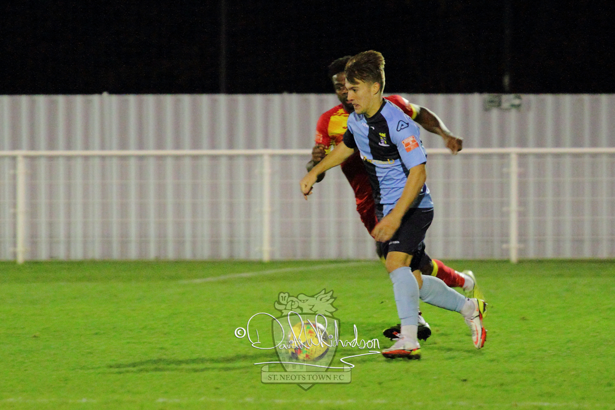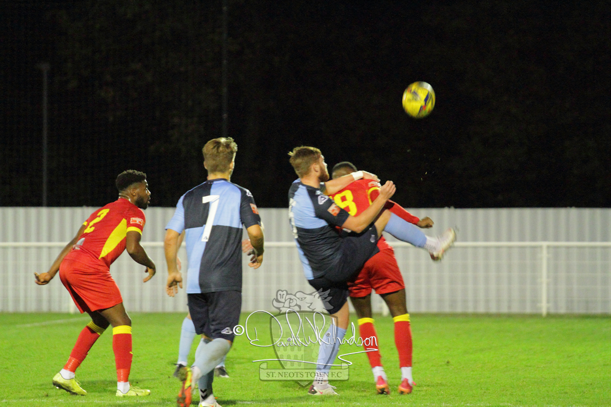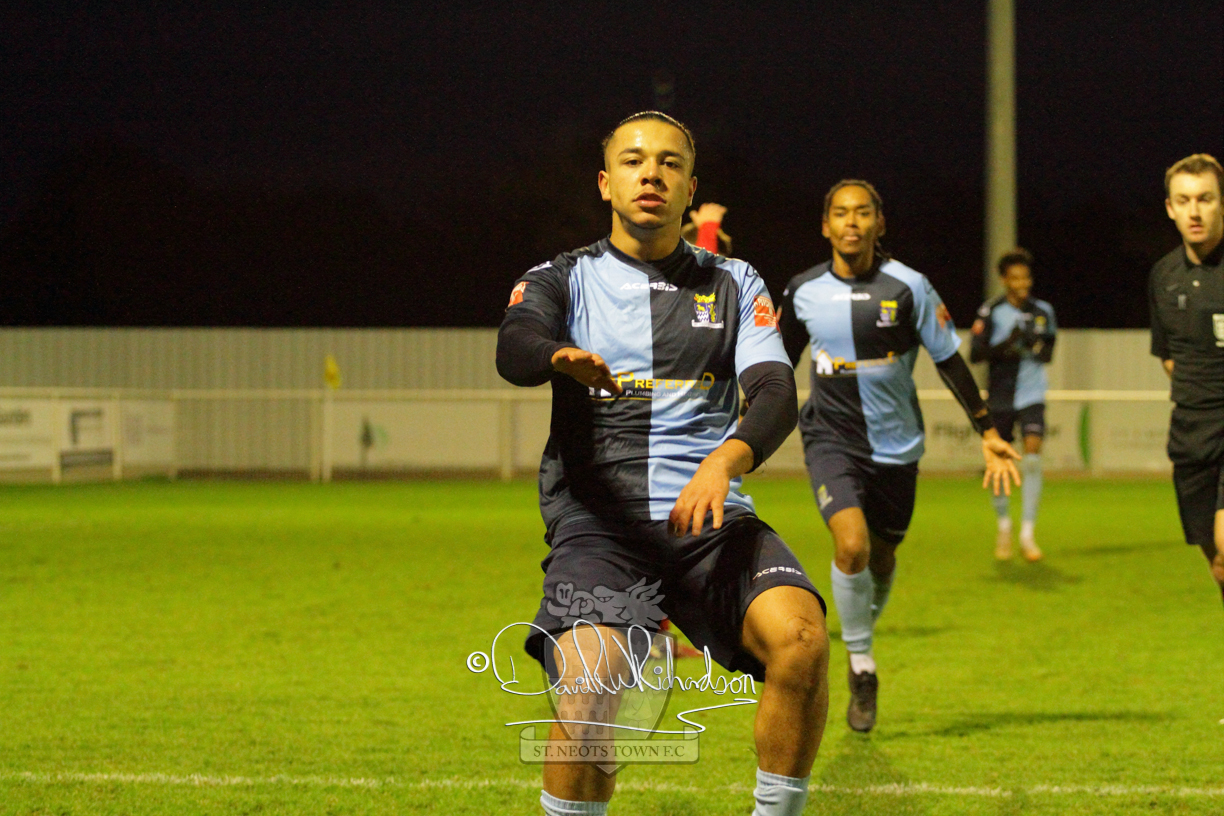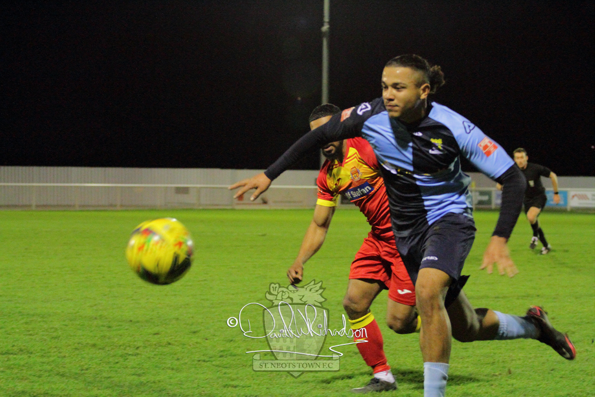 However, thankfully this proved to be the spur St Neots required and they recovered to score twice, and deservedly take home the three points avenging their opening day league defeat at St Neots. The visitors controlled much of the match throughout but failed to turn their possession into goals and at times seemed intimidated by the home sides’ tactics. There were three changes in the St Neots line up with Aaron Smith back from his loan period, replacing Wynford Marfo at full back, Elliott Sartorius leading the attack for Neo Richard-Noel, and most recent signing Ky Marsh-Brown (brother of Kwai) replacing the departed Brendon Shabani.