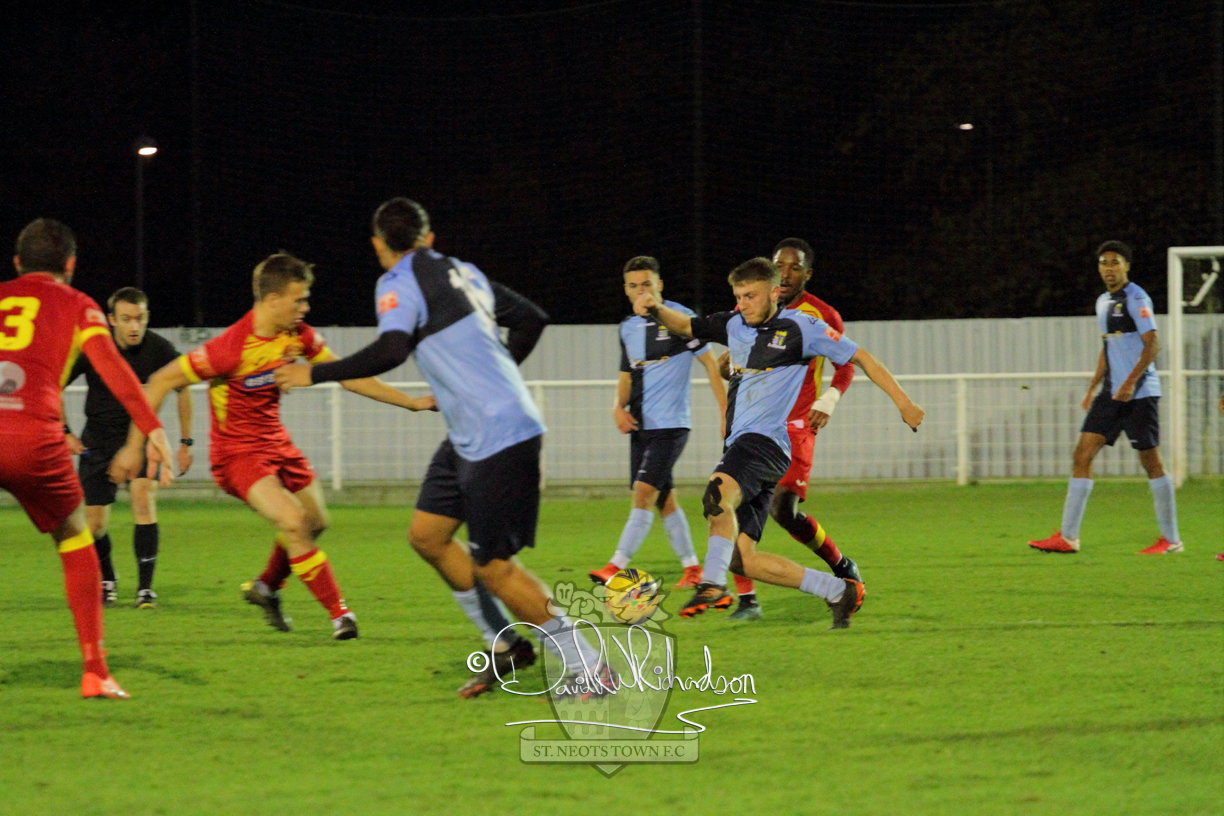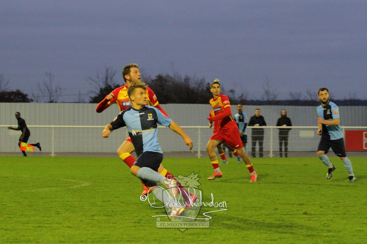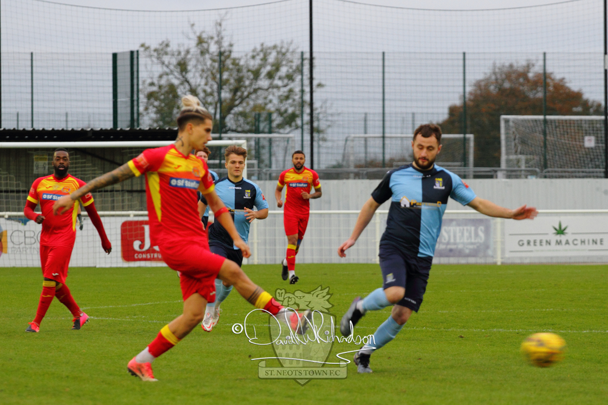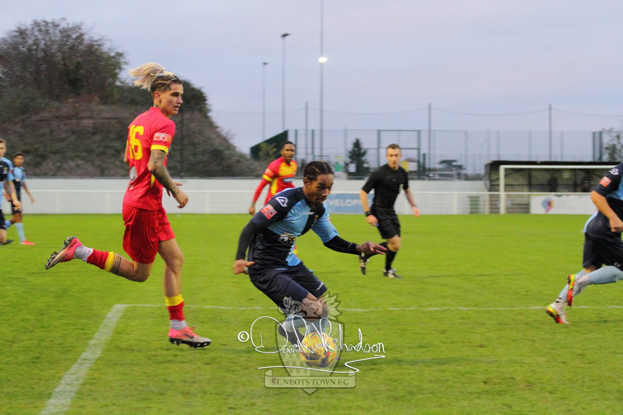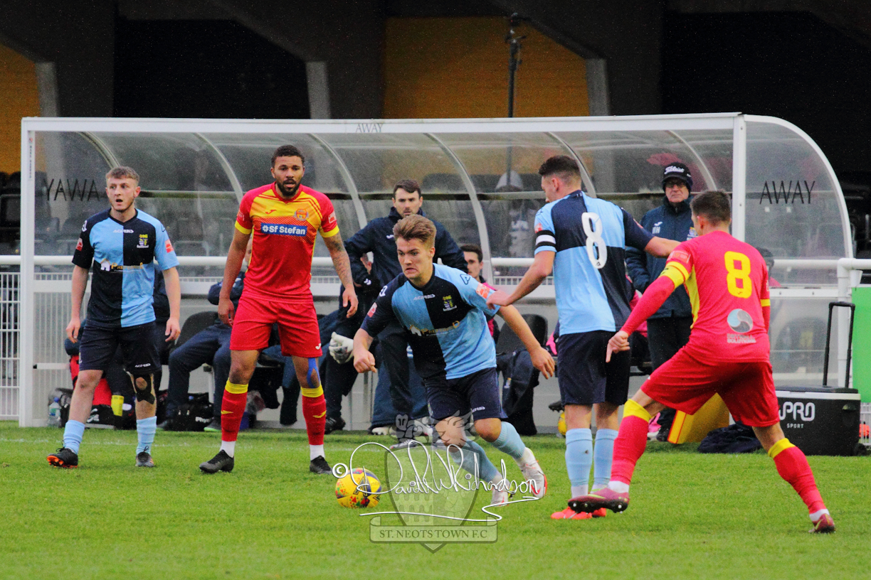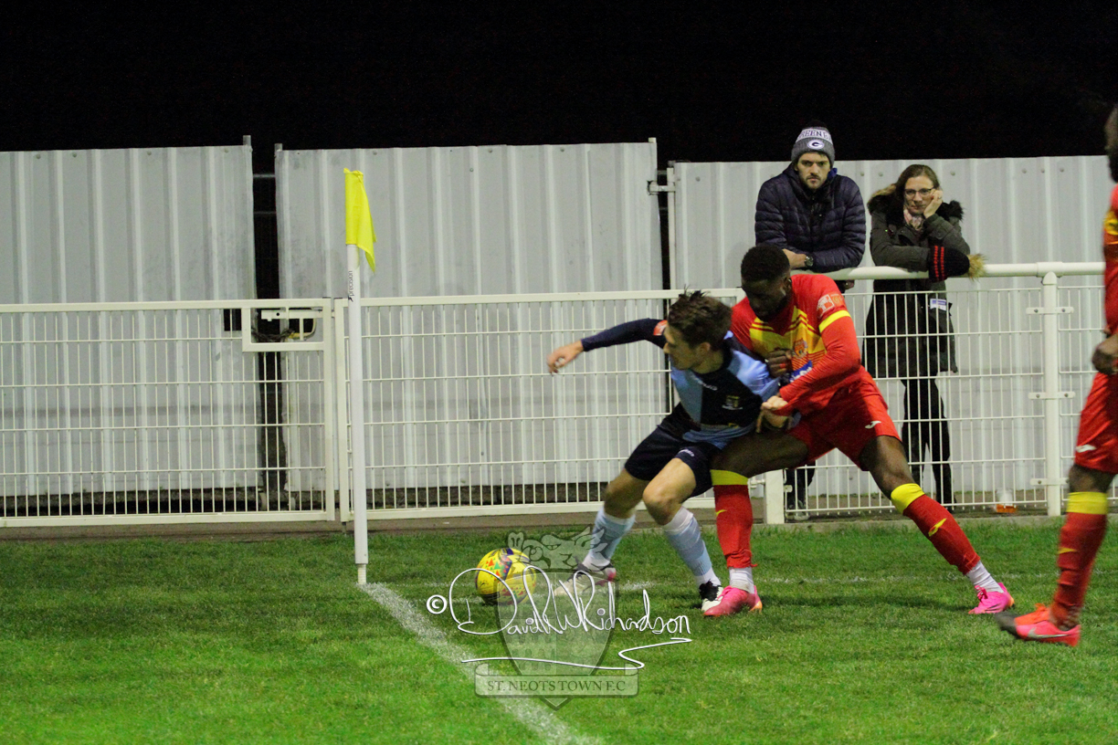 However, thankfully this proved to be the spur St Neots required and they recovered to score twice, and deservedly take home the three points avenging their opening day league defeat at St Neots. The visitors controlled much of the match throughout but failed to turn their possession into goals and at times seemed intimidated by the home sides’ tactics. There were three changes in the St Neots line up with Aaron Smith back from his loan period, replacing Wynford Marfo at full back, Elliott Sartorius leading the attack for Neo Richard-Noel, and most recent signing Ky Marsh-Brown (brother of Kwai) replacing the departed Brendon Shabani.