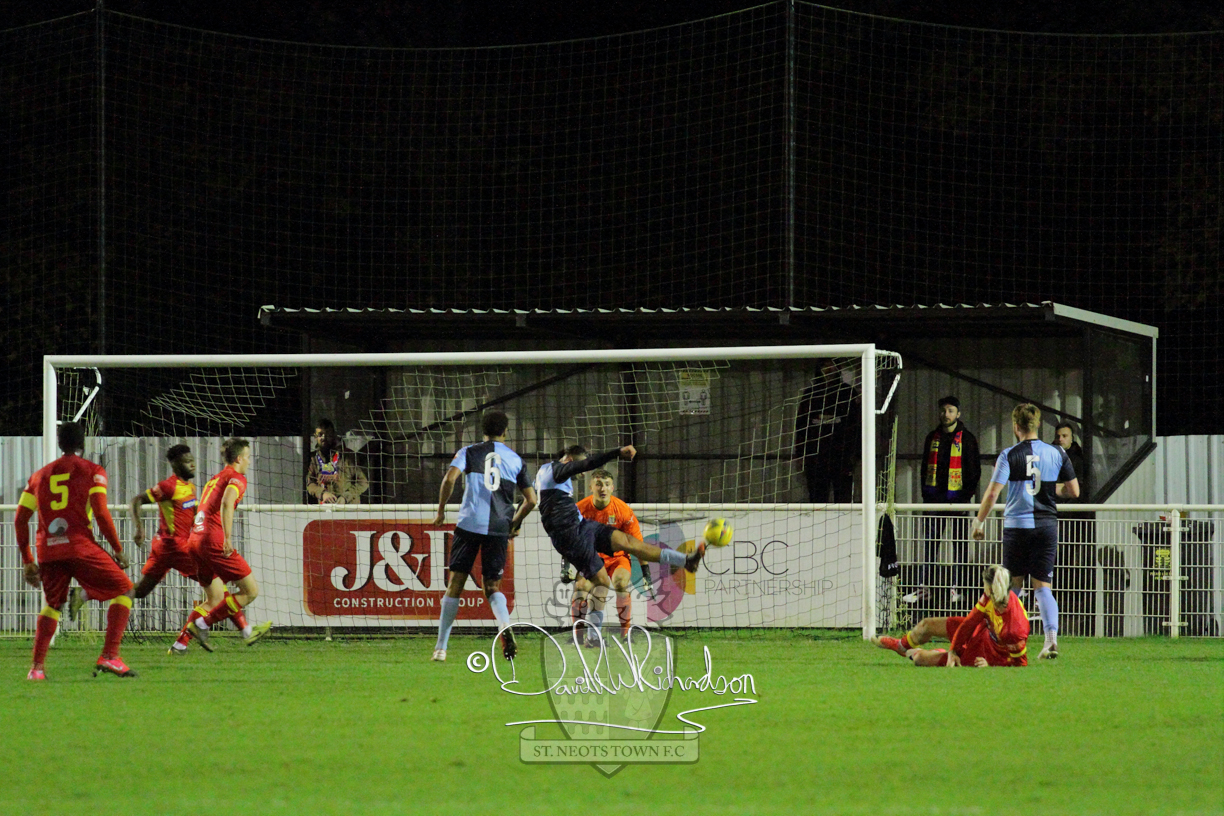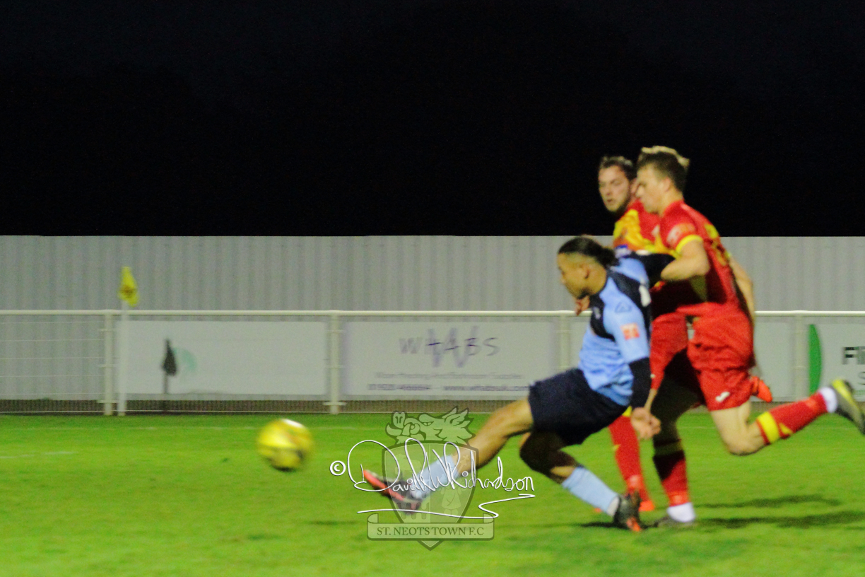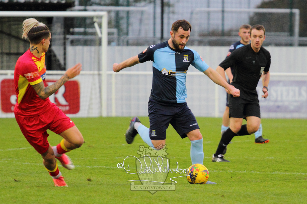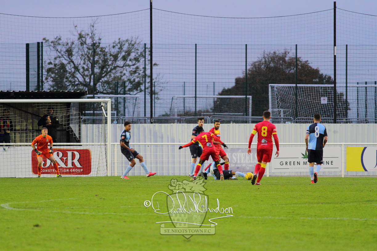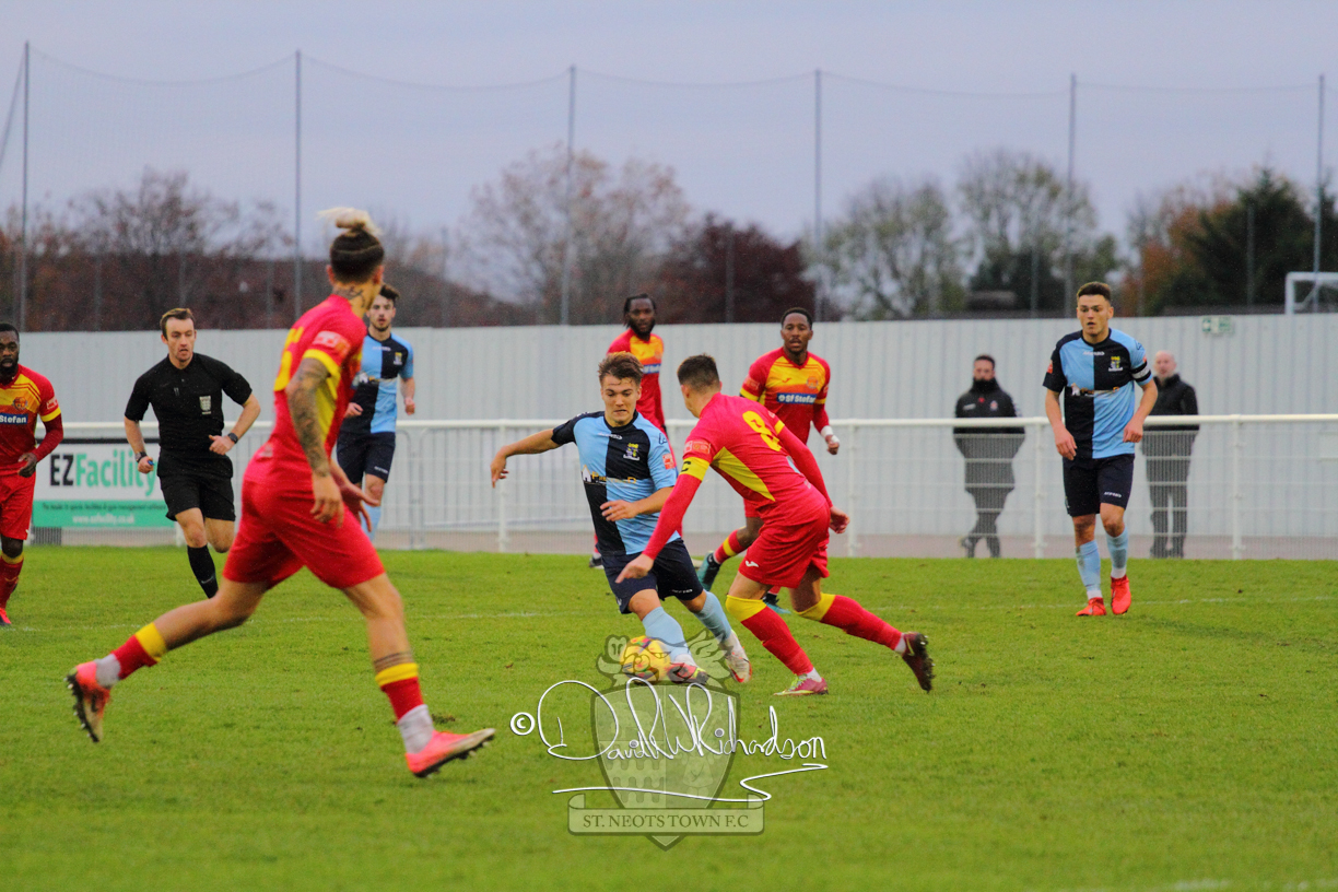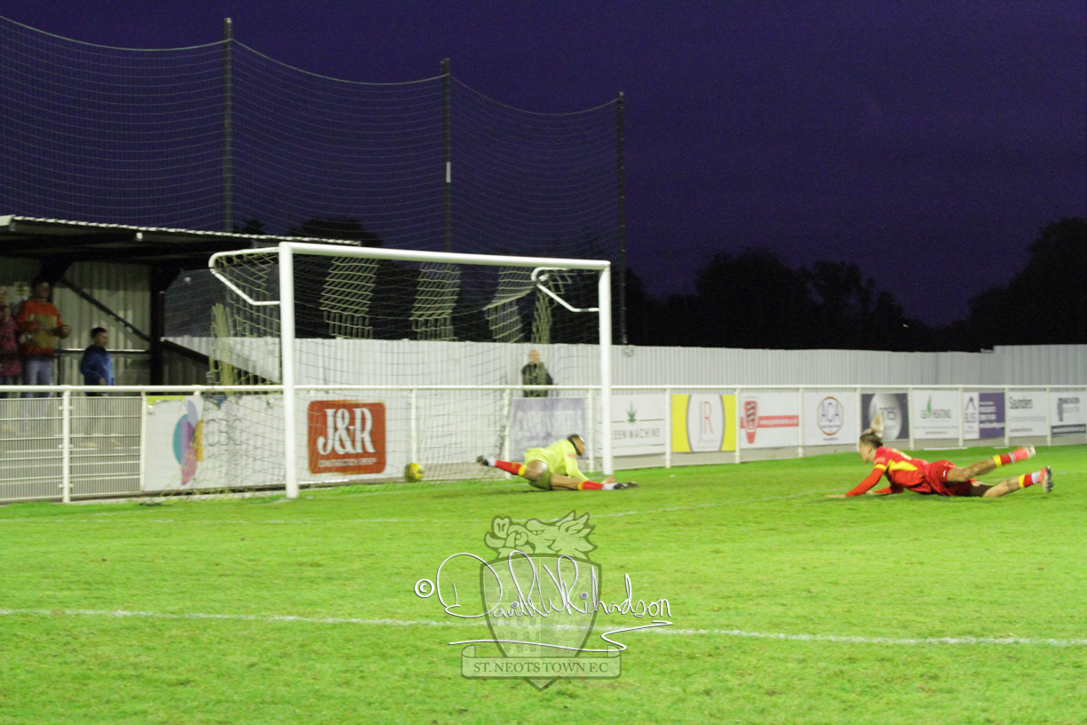 However, thankfully this proved to be the spur St Neots required and they recovered to score twice, and deservedly take home the three points avenging their opening day league defeat at St Neots. The visitors controlled much of the match throughout but failed to turn their possession into goals and at times seemed intimidated by the home sides’ tactics. There were three changes in the St Neots line up with Aaron Smith back from his loan period, replacing Wynford Marfo at full back, Elliott Sartorius leading the attack for Neo Richard-Noel, and most recent signing Ky Marsh-Brown (brother of Kwai) replacing the departed Brendon Shabani.