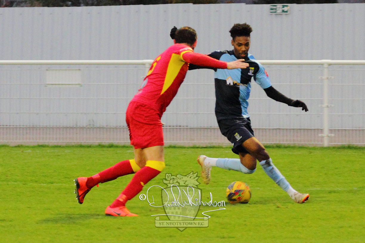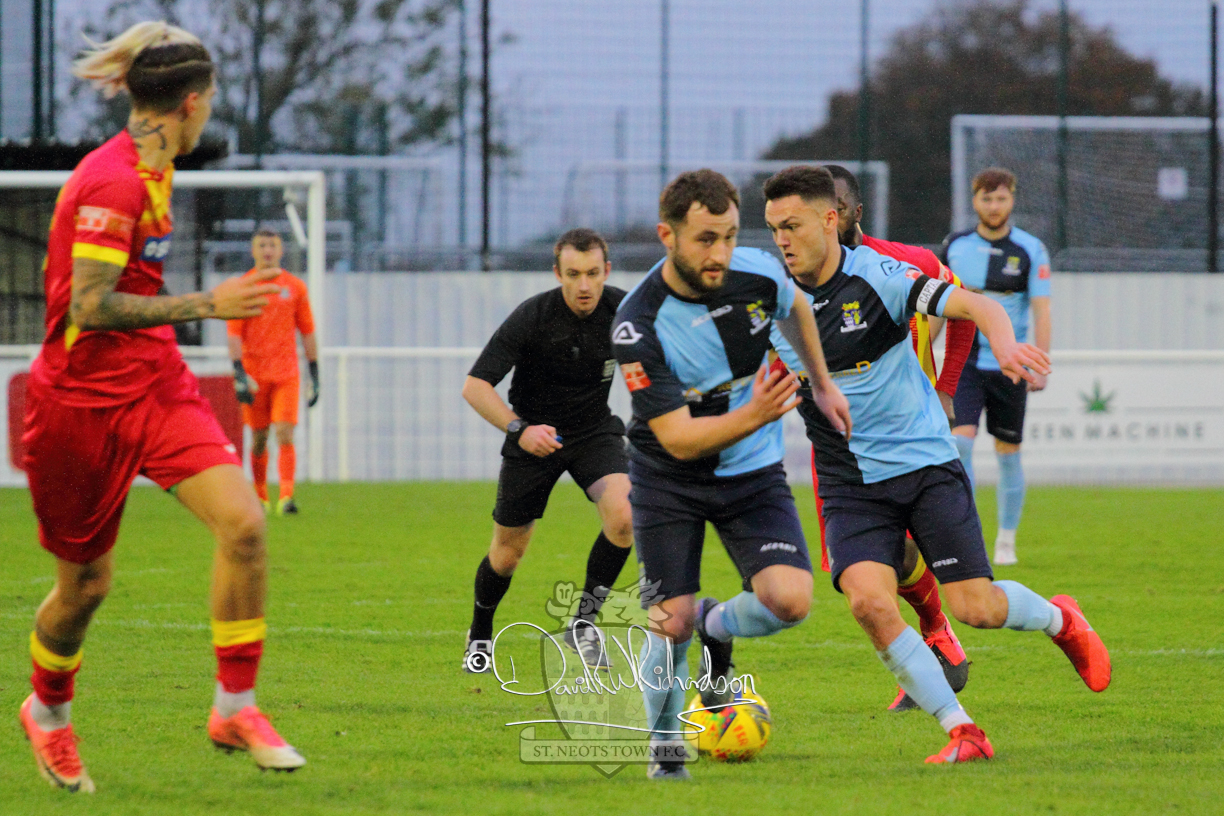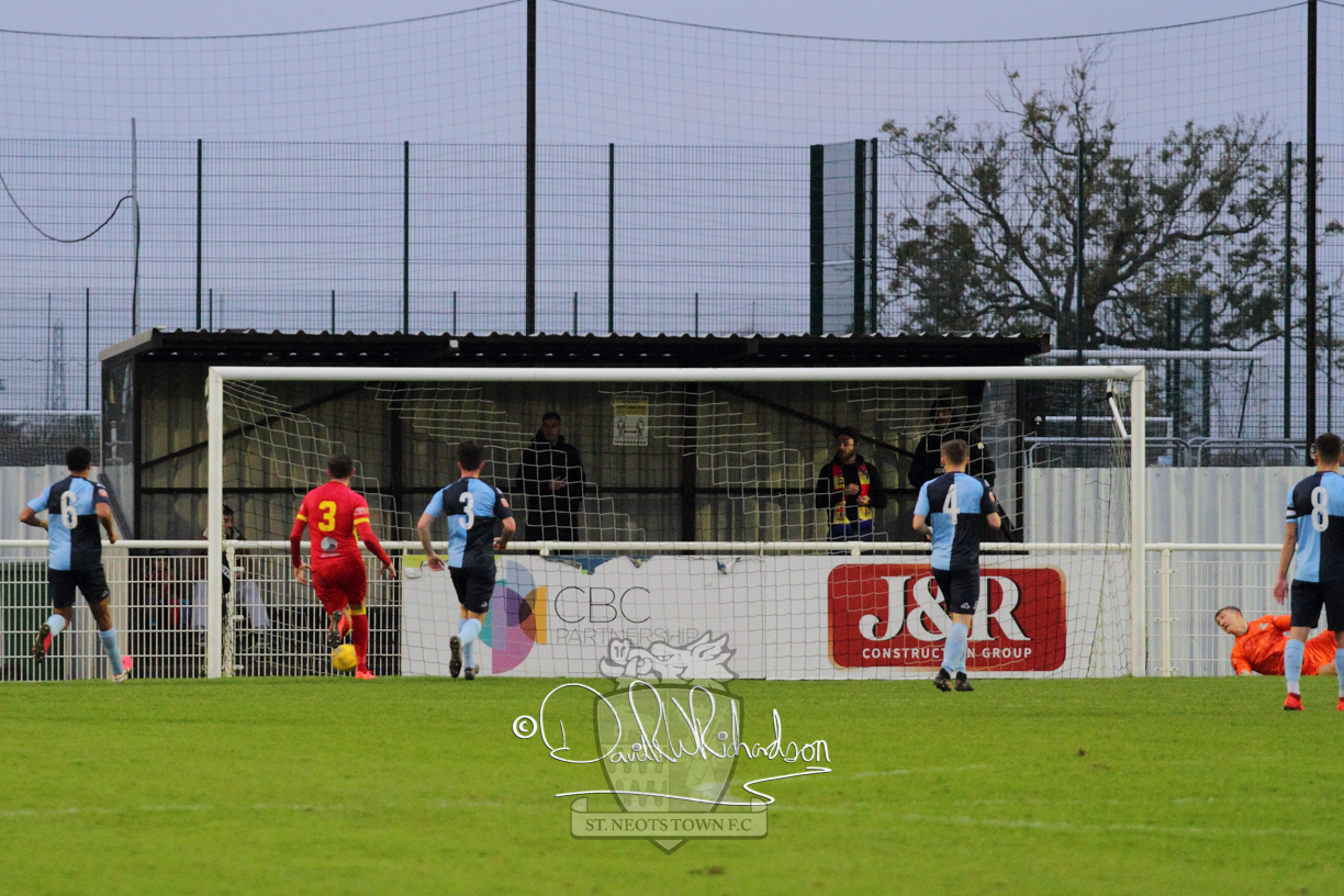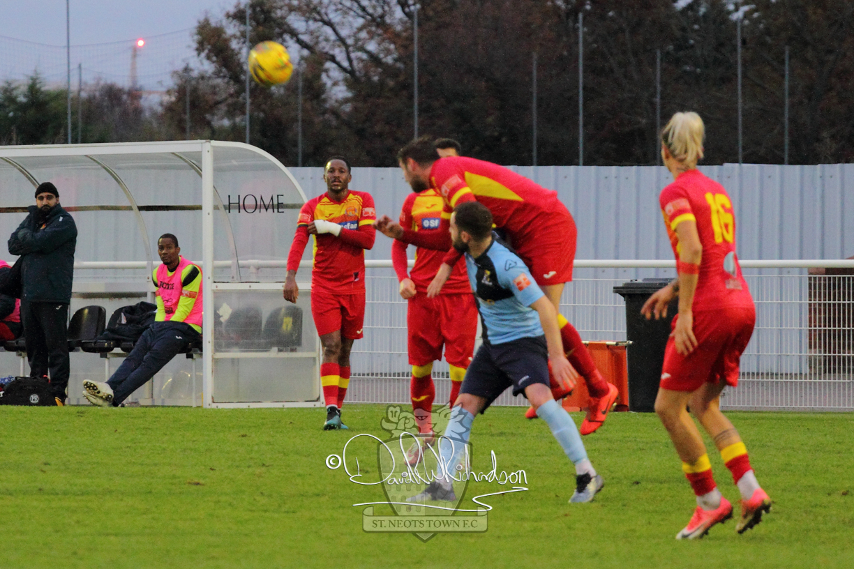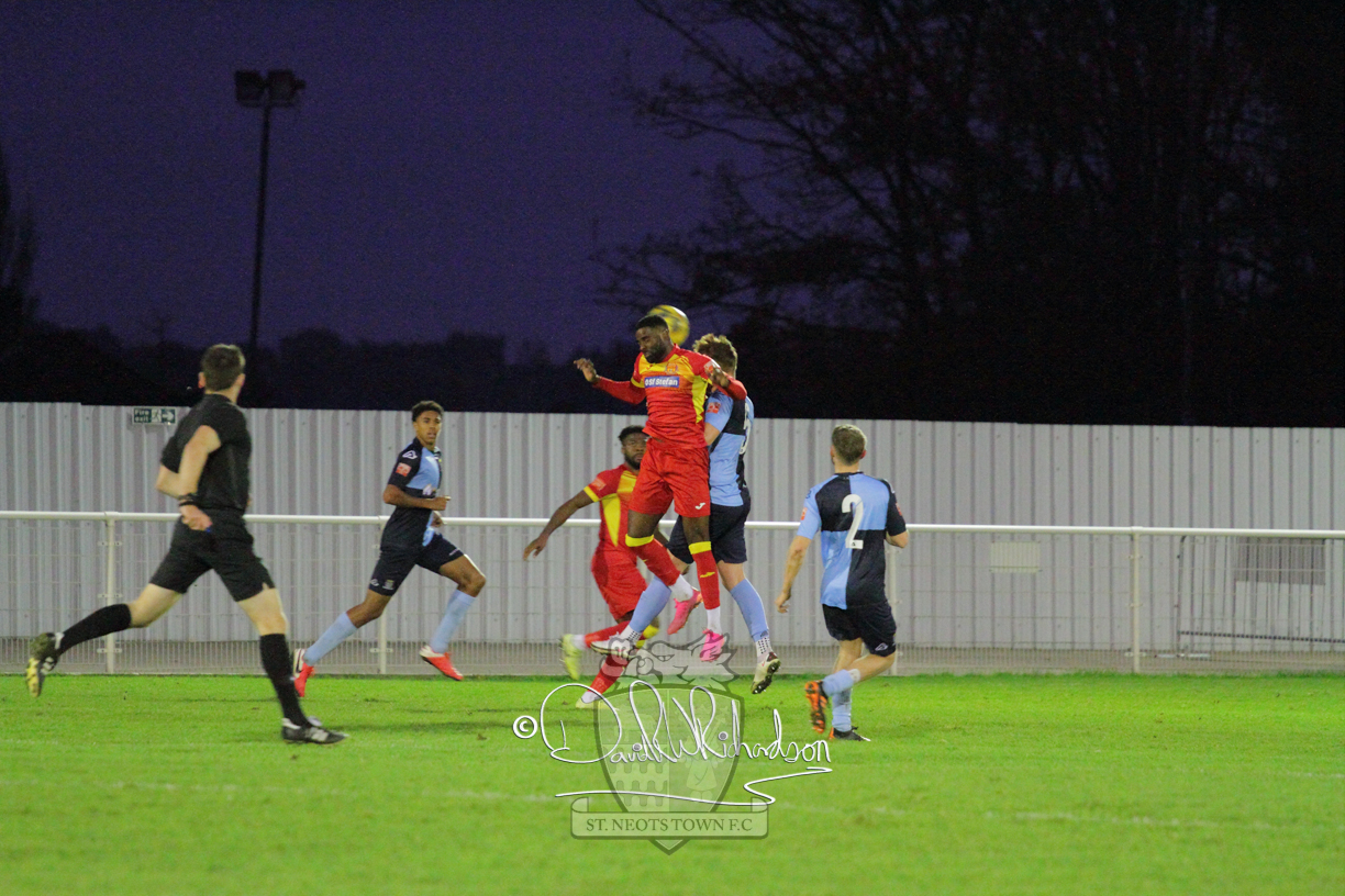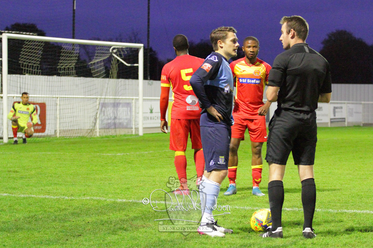 However, thankfully this proved to be the spur St Neots required and they recovered to score twice, and deservedly take home the three points avenging their opening day league defeat at St Neots. The visitors controlled much of the match throughout but failed to turn their possession into goals and at times seemed intimidated by the home sides’ tactics. There were three changes in the St Neots line up with Aaron Smith back from his loan period, replacing Wynford Marfo at full back, Elliott Sartorius leading the attack for Neo Richard-Noel, and most recent signing Ky Marsh-Brown (brother of Kwai) replacing the departed Brendon Shabani.