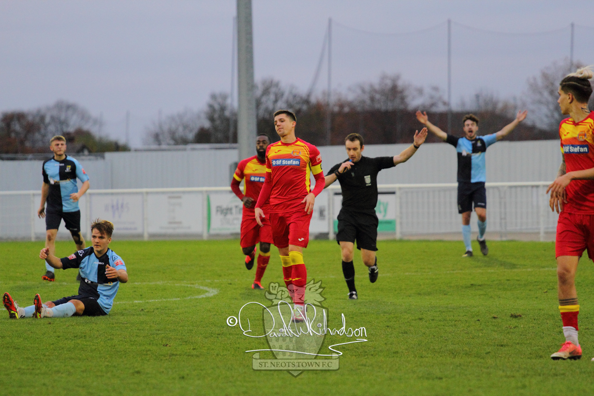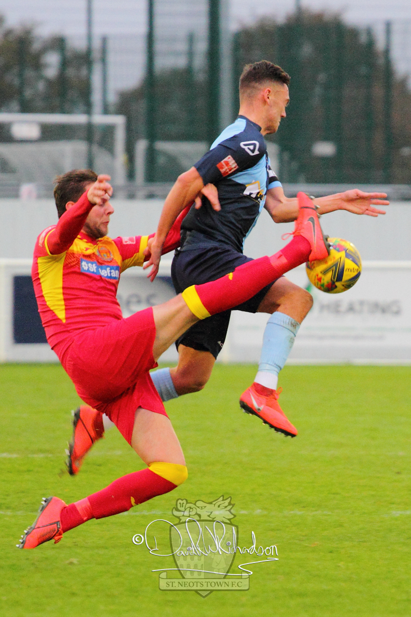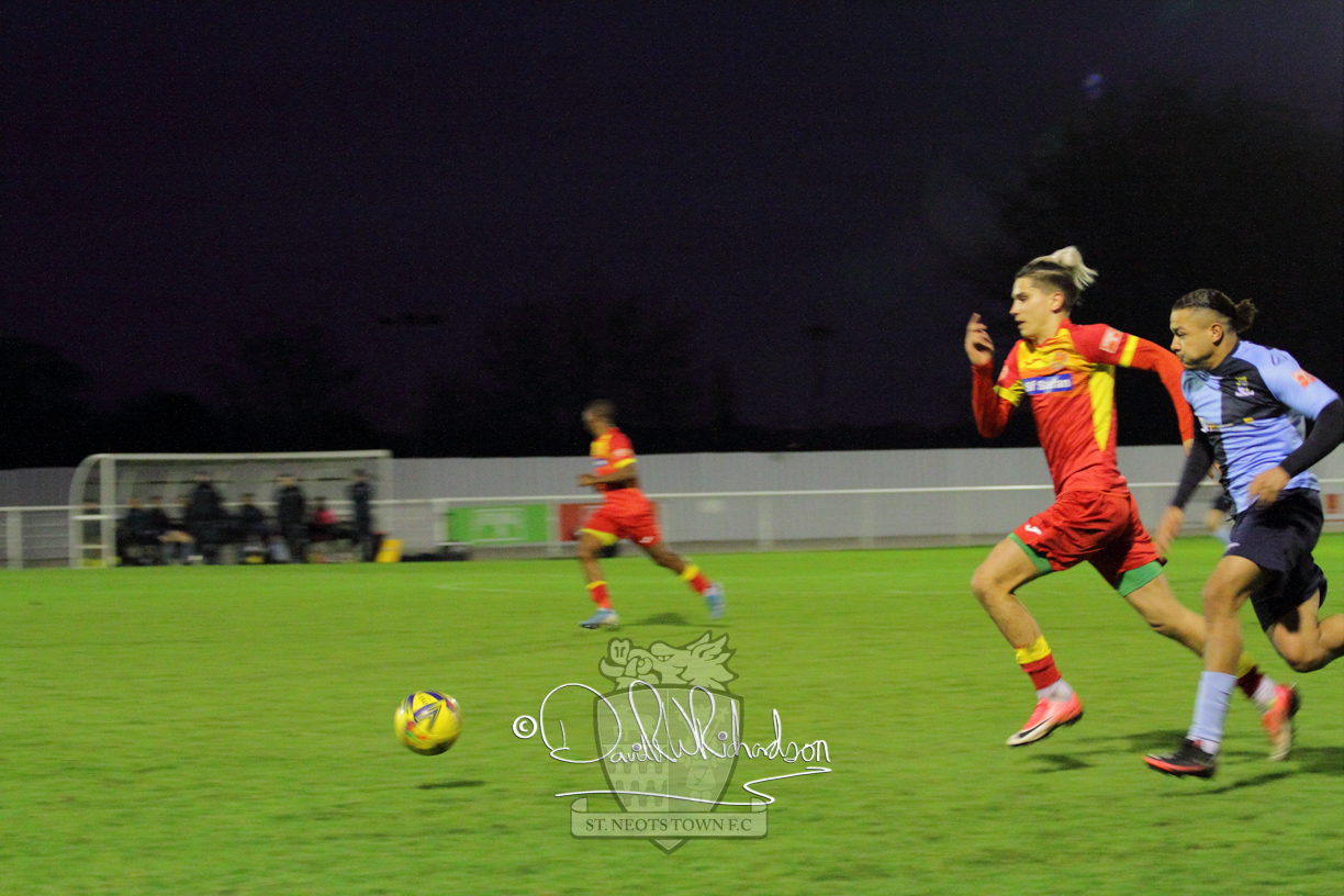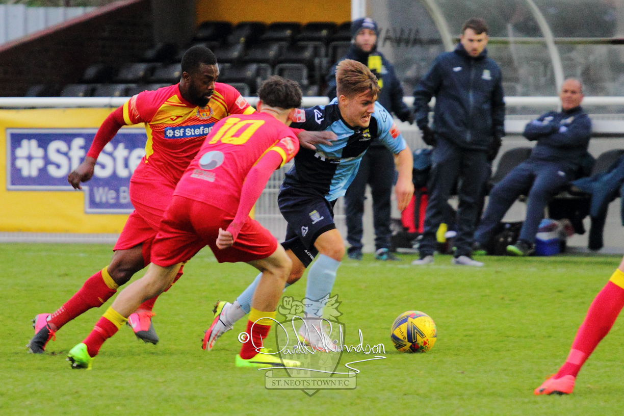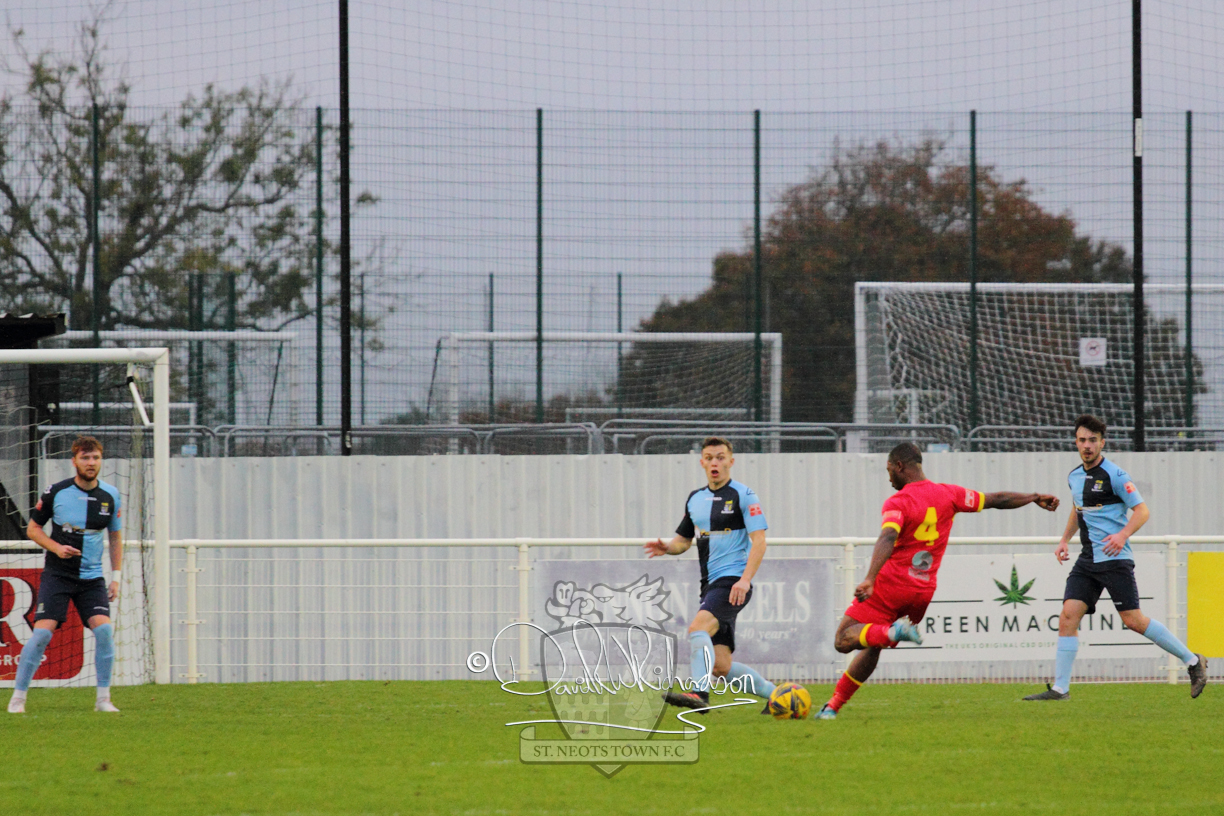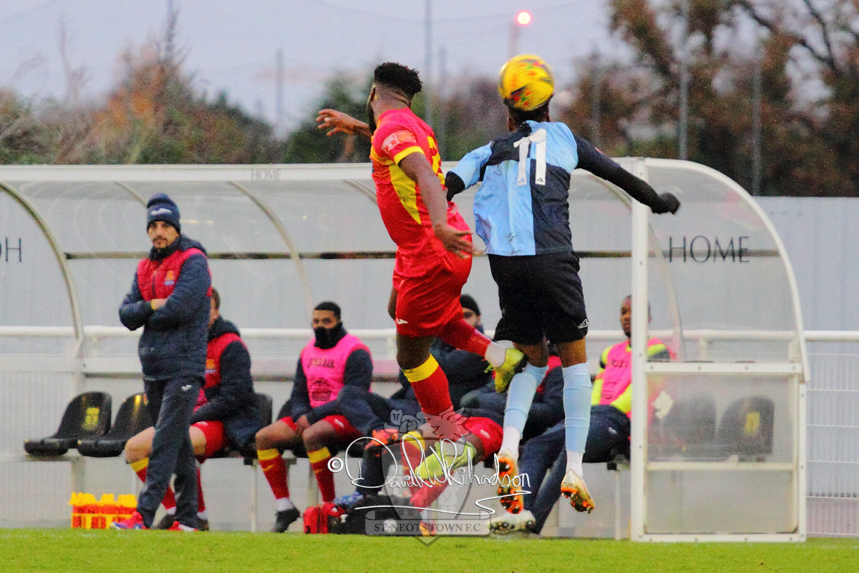 However, thankfully this proved to be the spur St Neots required and they recovered to score twice, and deservedly take home the three points avenging their opening day league defeat at St Neots. The visitors controlled much of the match throughout but failed to turn their possession into goals and at times seemed intimidated by the home sides’ tactics. There were three changes in the St Neots line up with Aaron Smith back from his loan period, replacing Wynford Marfo at full back, Elliott Sartorius leading the attack for Neo Richard-Noel, and most recent signing Ky Marsh-Brown (brother of Kwai) replacing the departed Brendon Shabani.