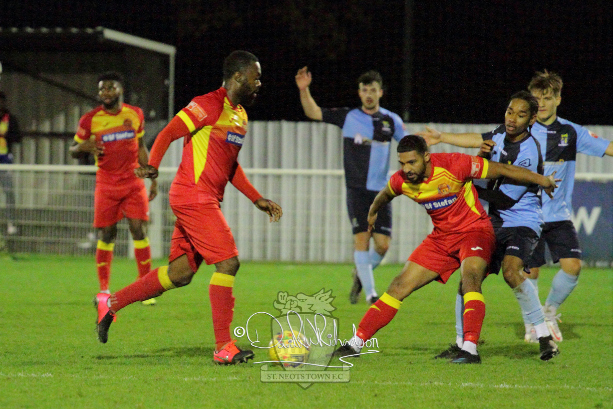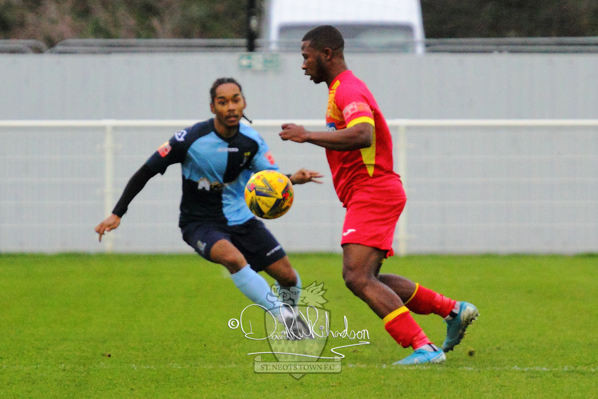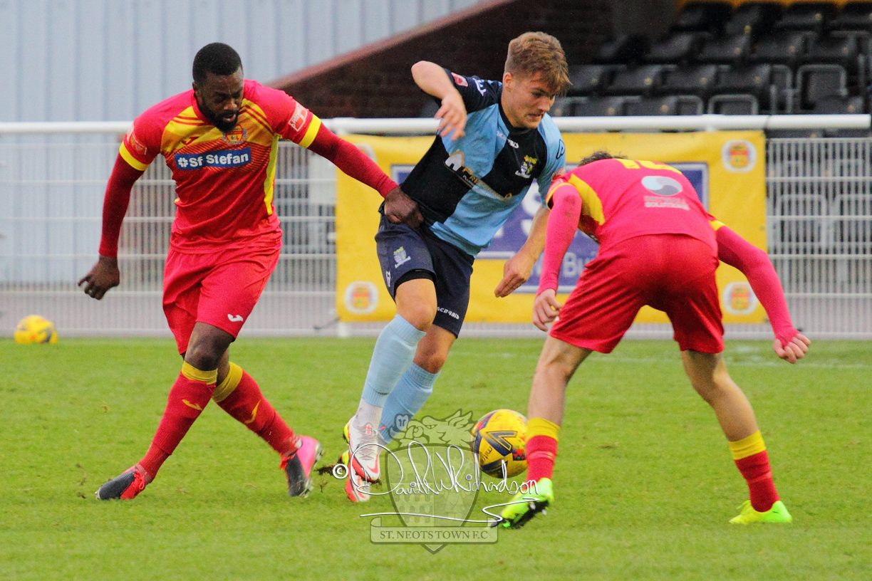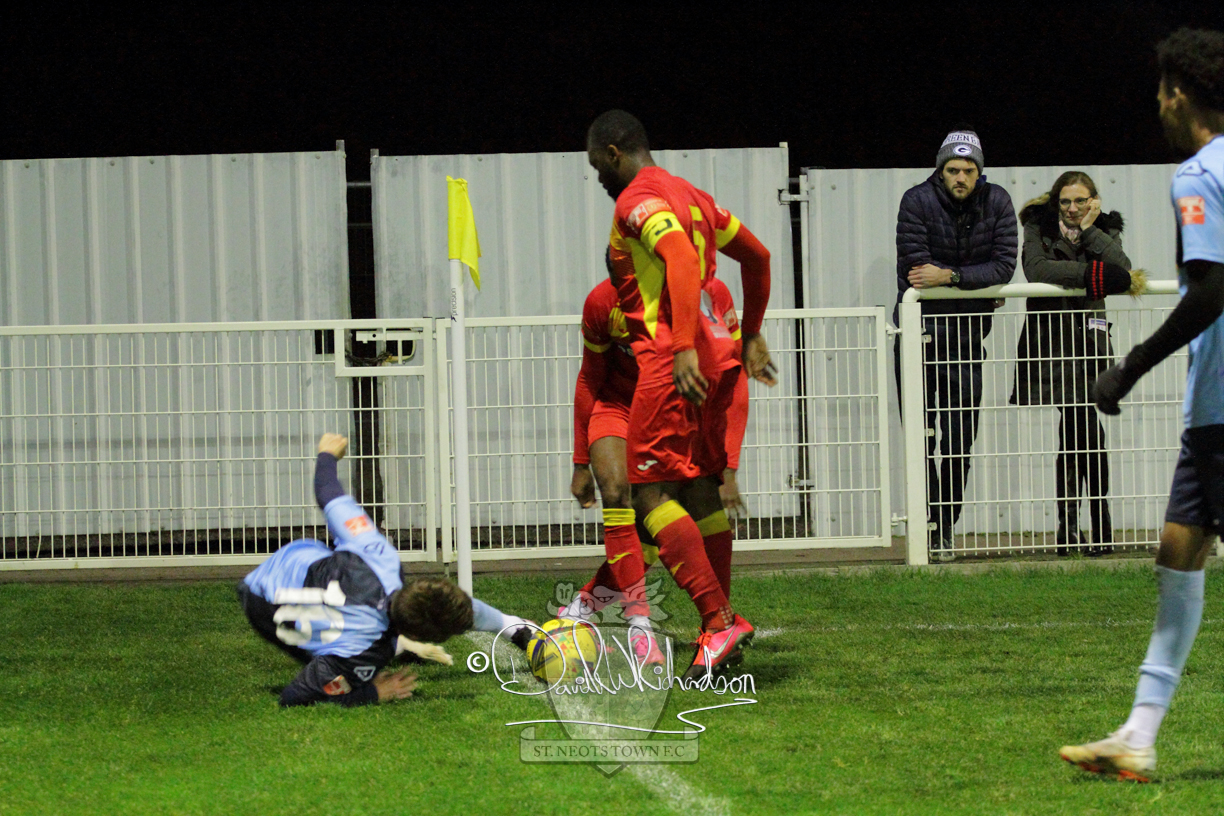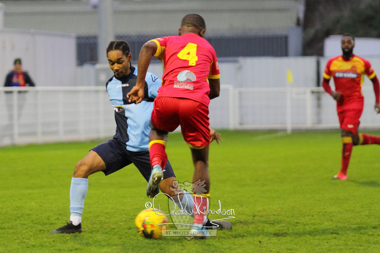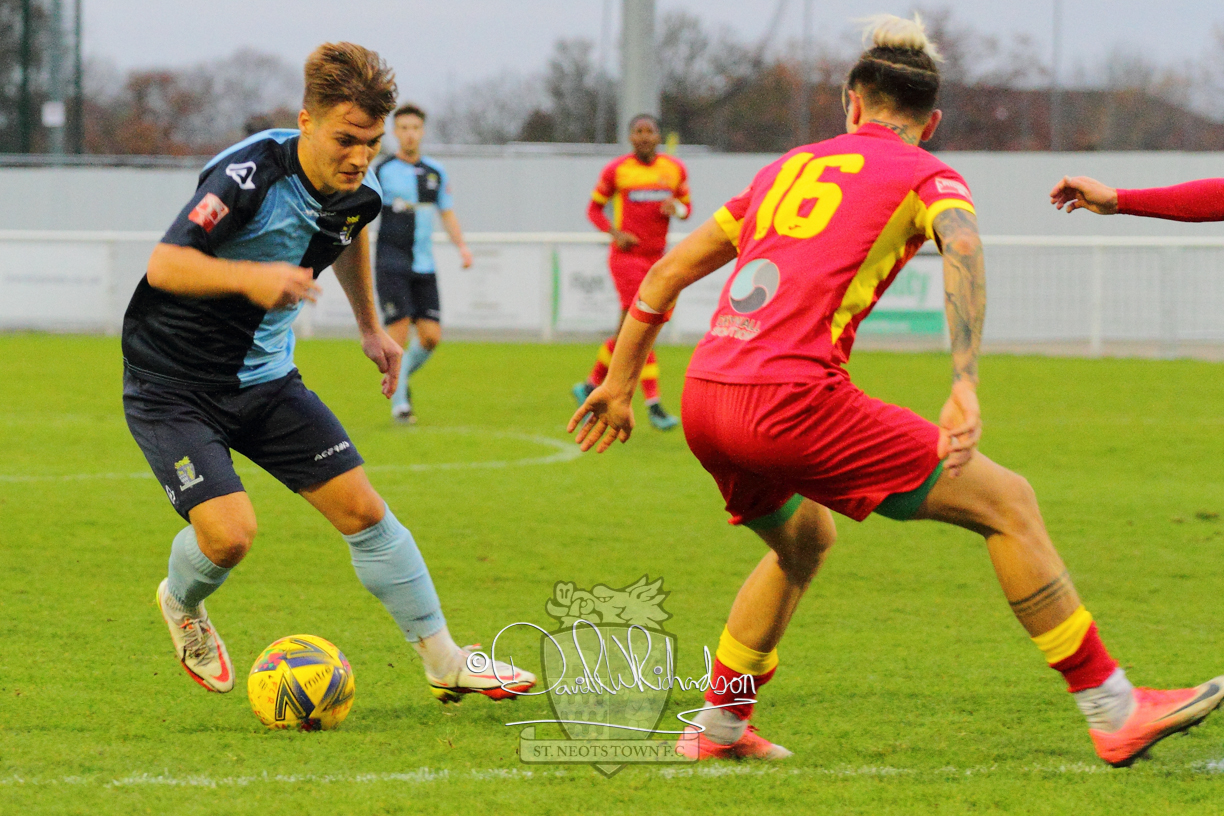 However, thankfully this proved to be the spur St Neots required and they recovered to score twice, and deservedly take home the three points avenging their opening day league defeat at St Neots. The visitors controlled much of the match throughout but failed to turn their possession into goals and at times seemed intimidated by the home sides’ tactics. There were three changes in the St Neots line up with Aaron Smith back from his loan period, replacing Wynford Marfo at full back, Elliott Sartorius leading the attack for Neo Richard-Noel, and most recent signing Ky Marsh-Brown (brother of Kwai) replacing the departed Brendon Shabani.