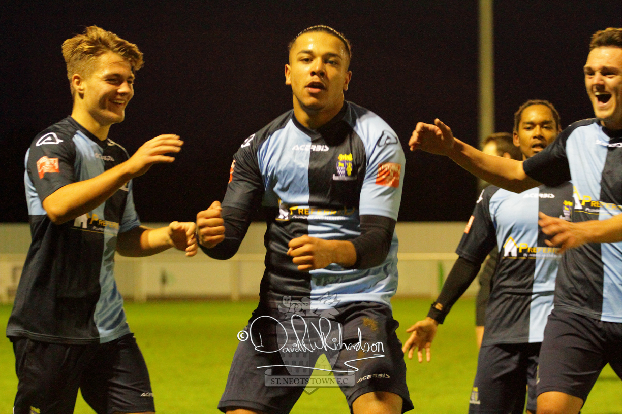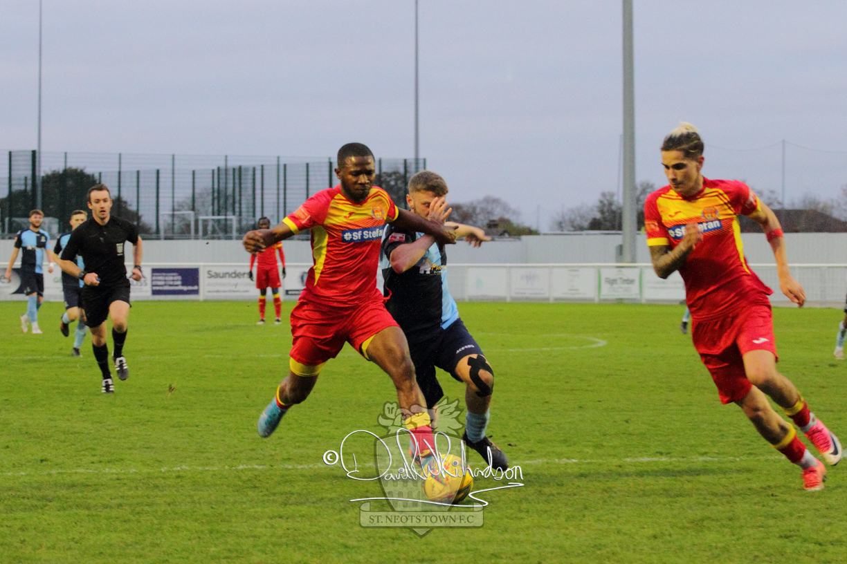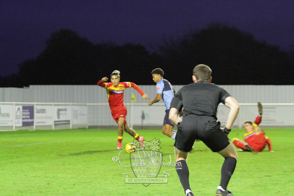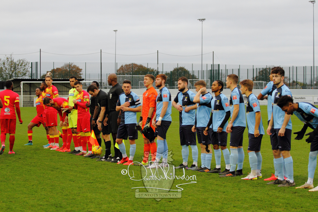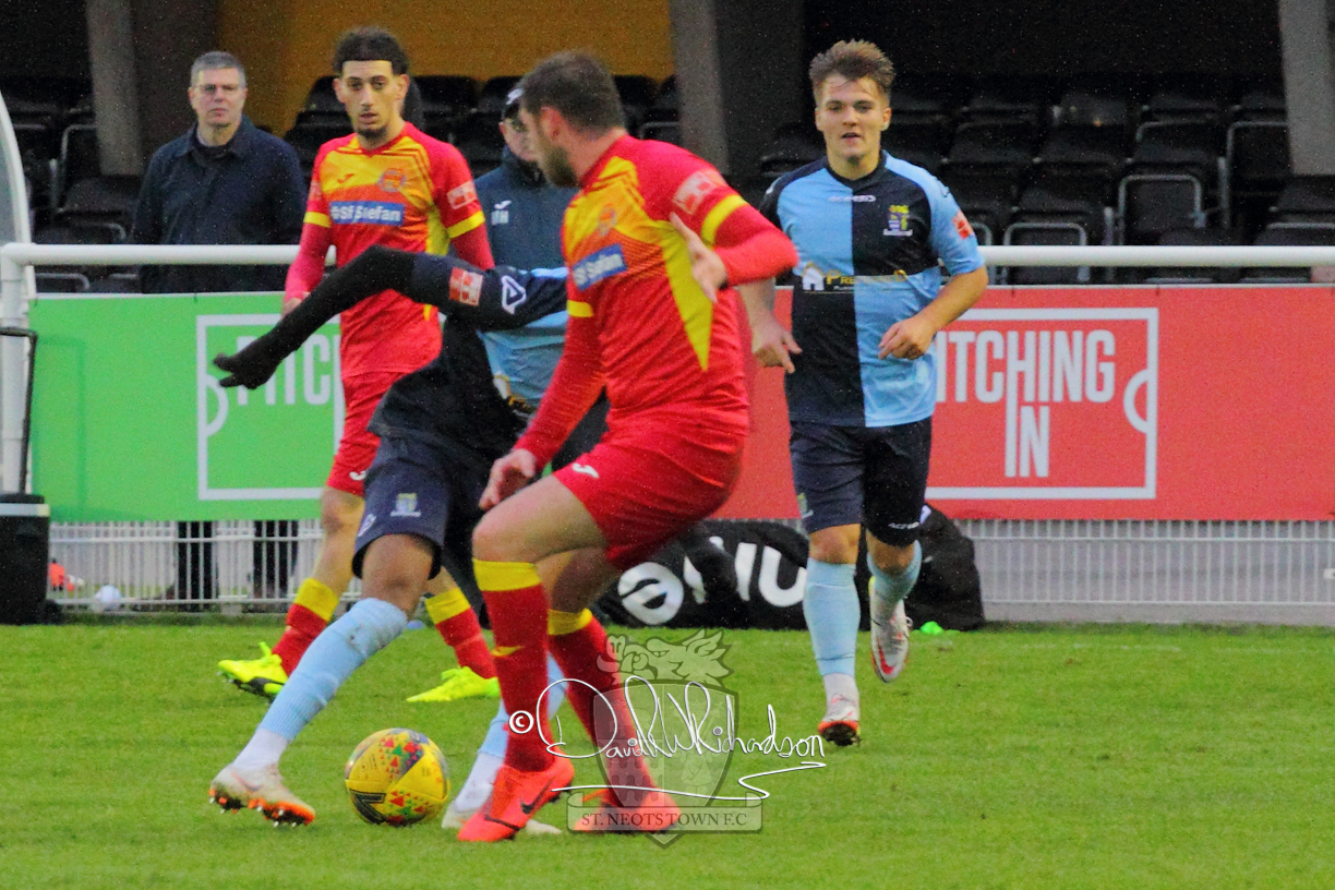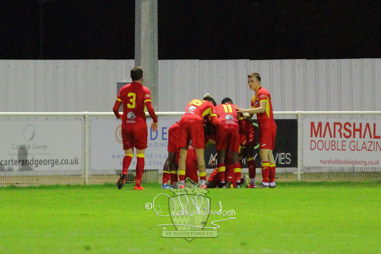 However, thankfully this proved to be the spur St Neots required and they recovered to score twice, and deservedly take home the three points avenging their opening day league defeat at St Neots. The visitors controlled much of the match throughout but failed to turn their possession into goals and at times seemed intimidated by the home sides’ tactics. There were three changes in the St Neots line up with Aaron Smith back from his loan period, replacing Wynford Marfo at full back, Elliott Sartorius leading the attack for Neo Richard-Noel, and most recent signing Ky Marsh-Brown (brother of Kwai) replacing the departed Brendon Shabani.