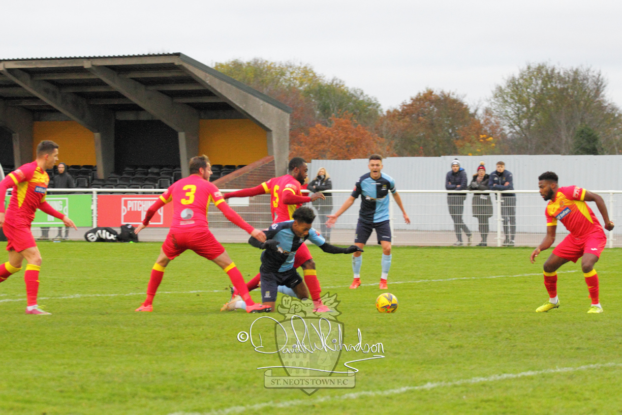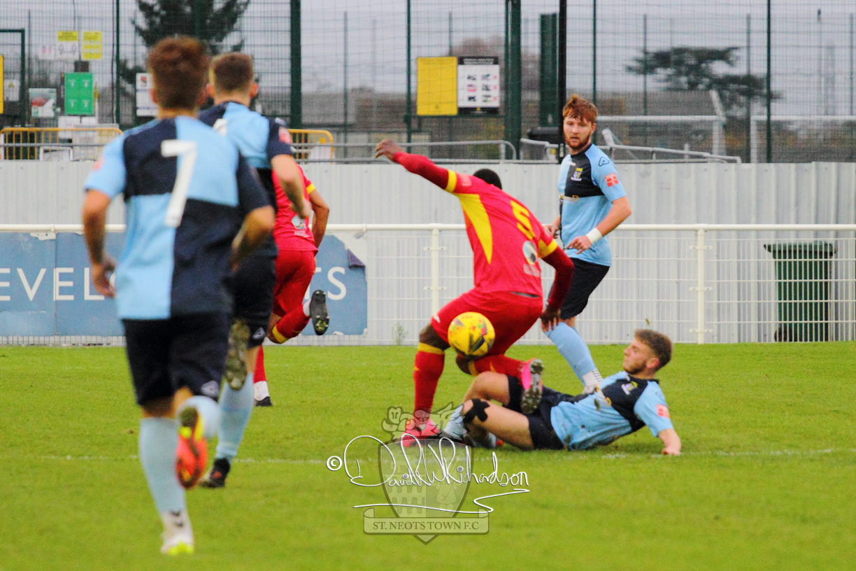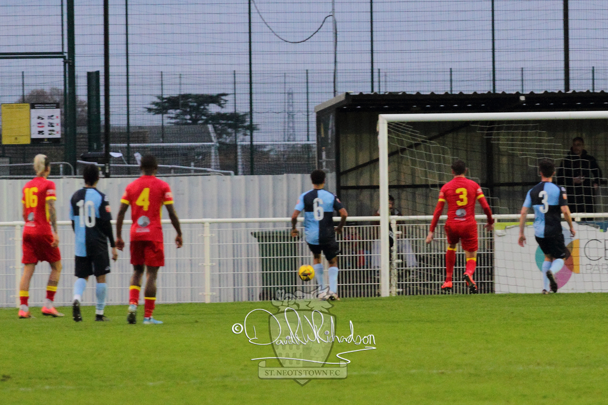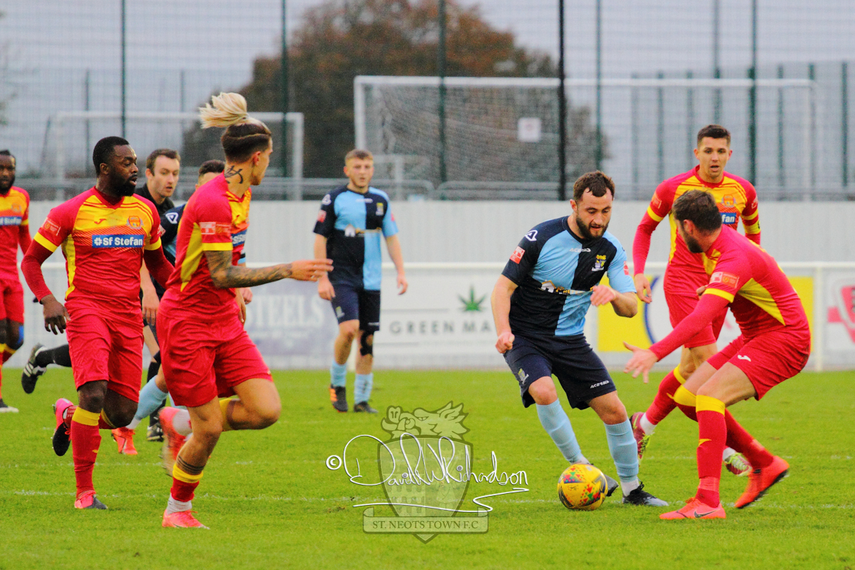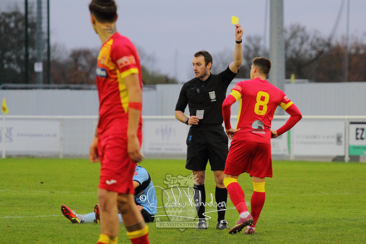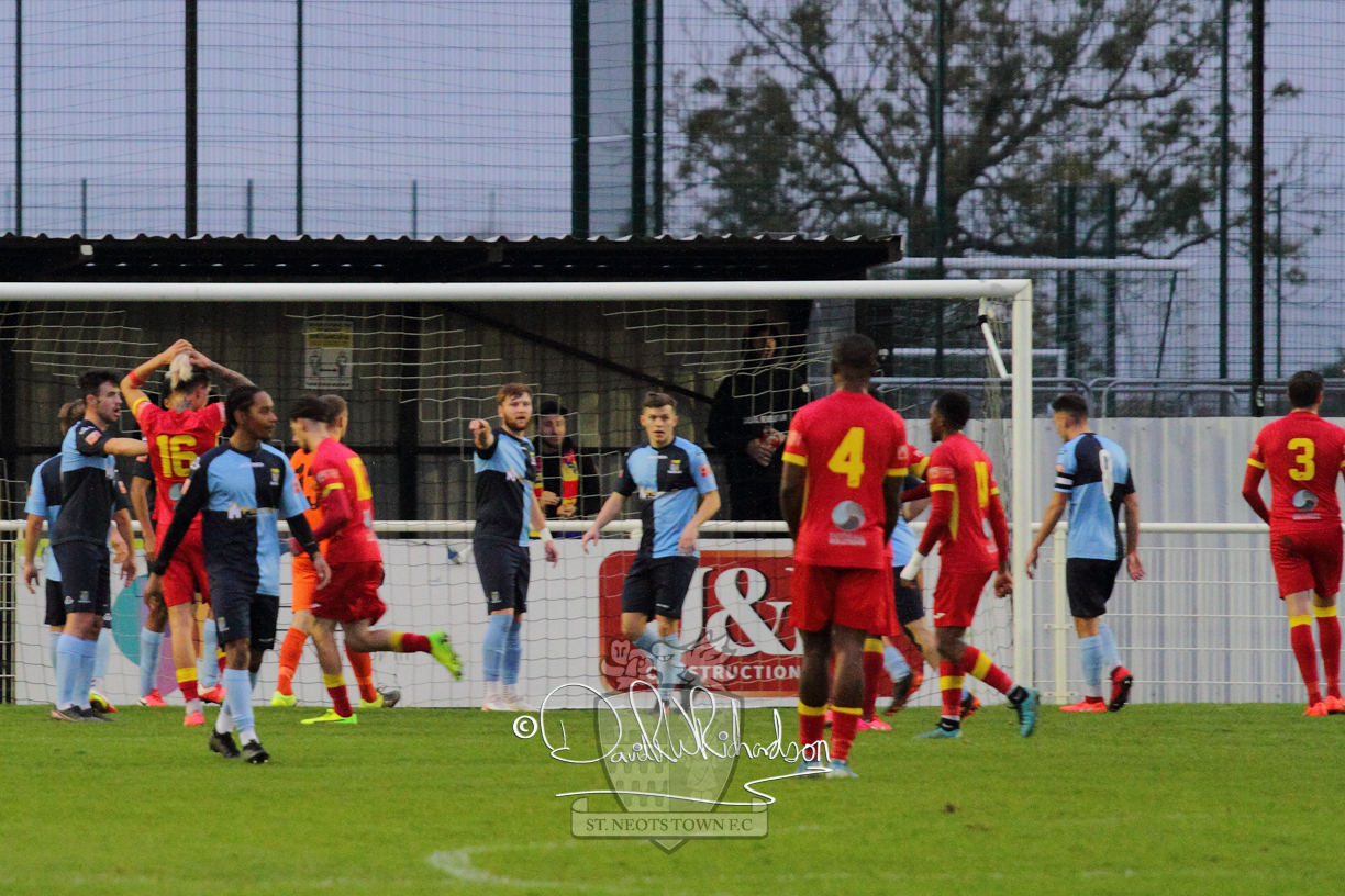 After 65 minutes St Neots were in danger of suffering a mugging at Cheshunt. Their rather physical opponents had picked up six yellow cards in stopping St Neots best attacking moves, but in the second half they then broke away through a visiting defence caught short, to score the first goal of the match.