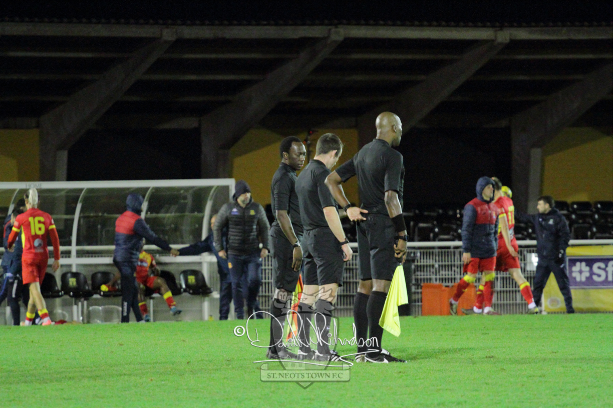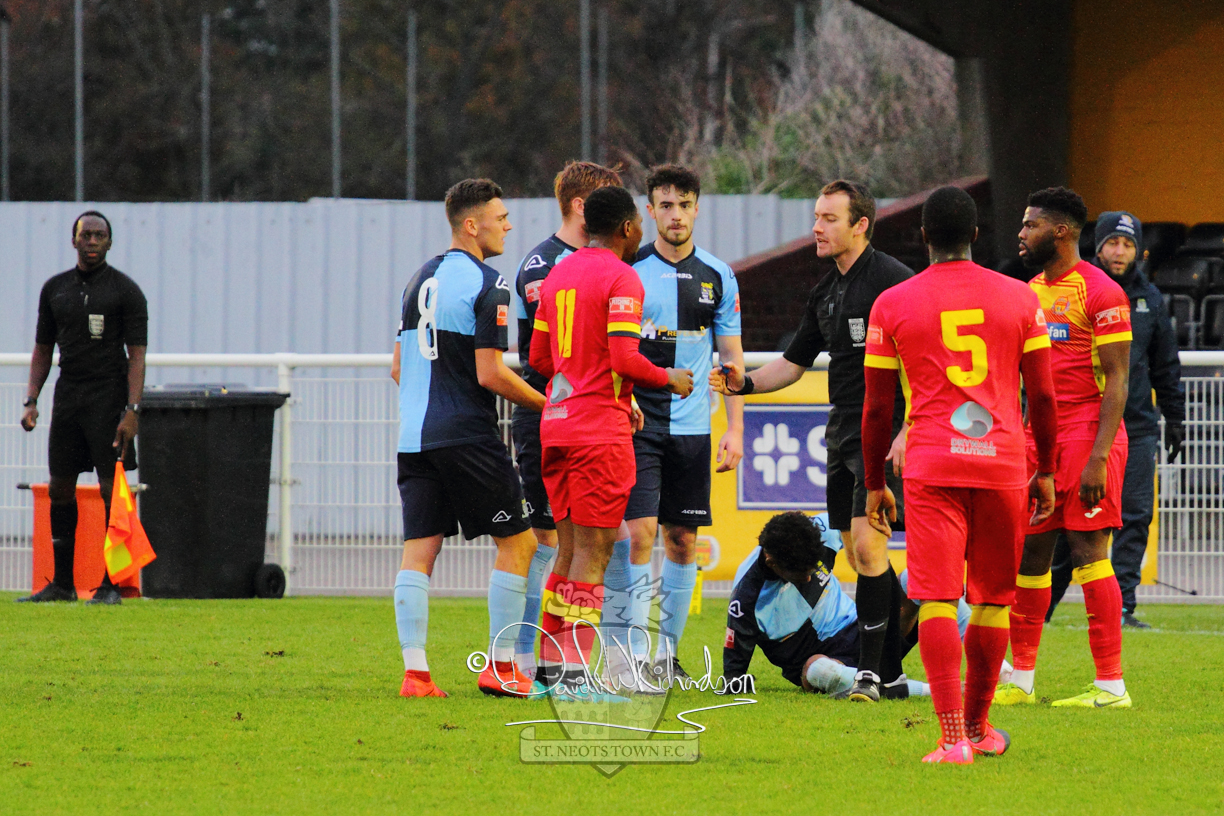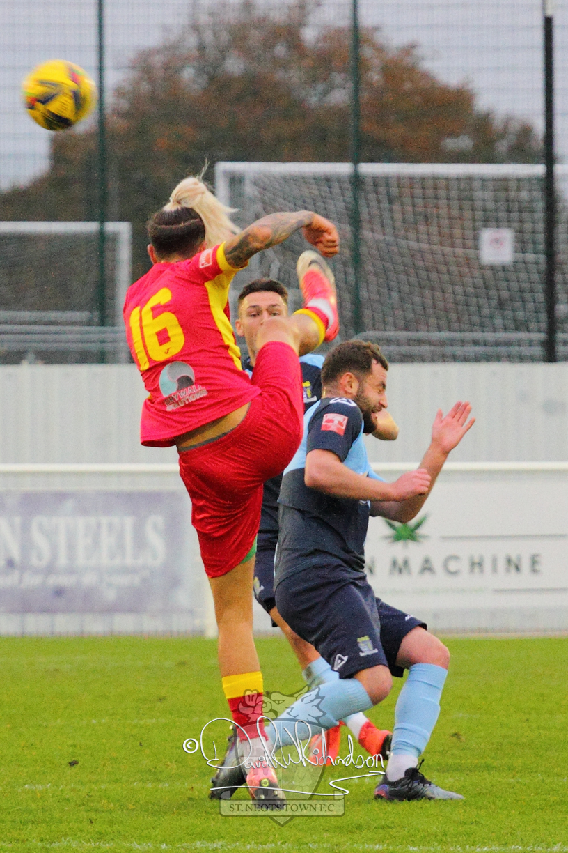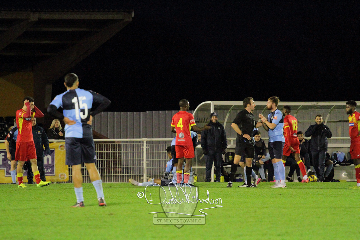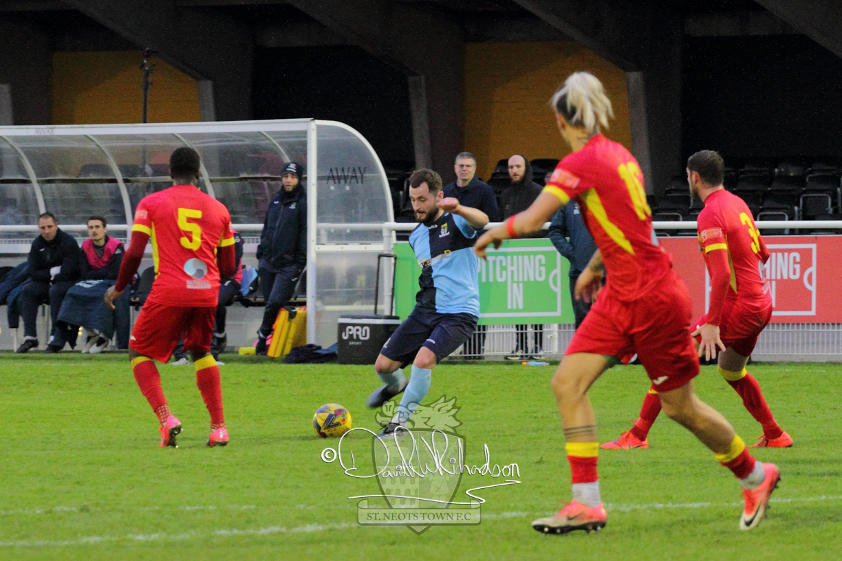 After 65 minutes St Neots were in danger of suffering a mugging at Cheshunt. Their rather physical opponents had picked up six yellow cards in stopping St Neots best attacking moves, but in the second half they then broke away through a visiting defence caught short, to score the first goal of the match.