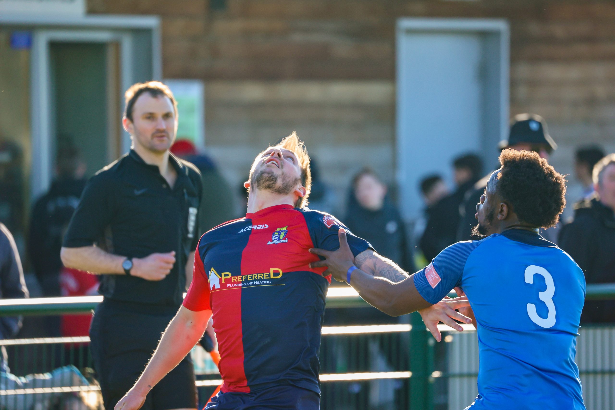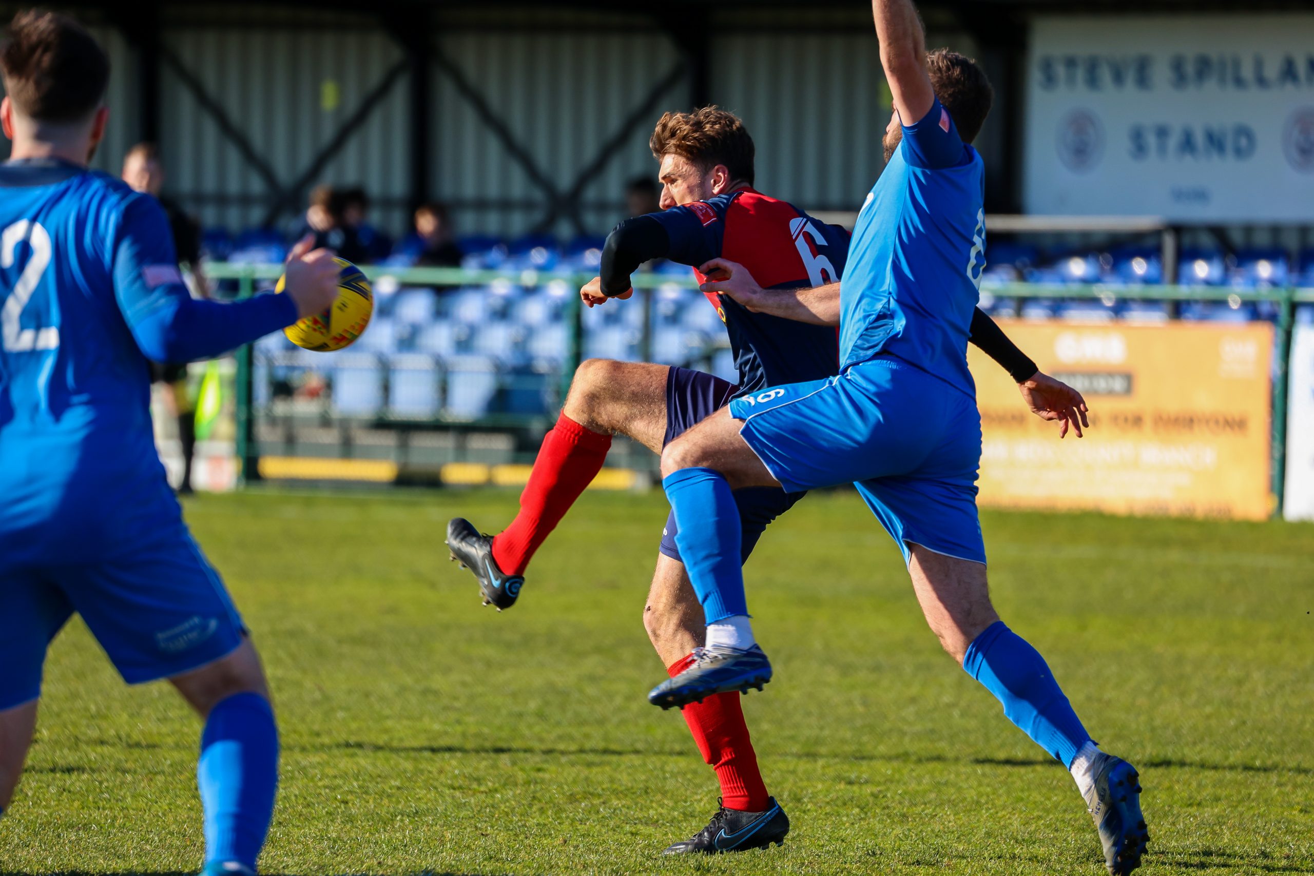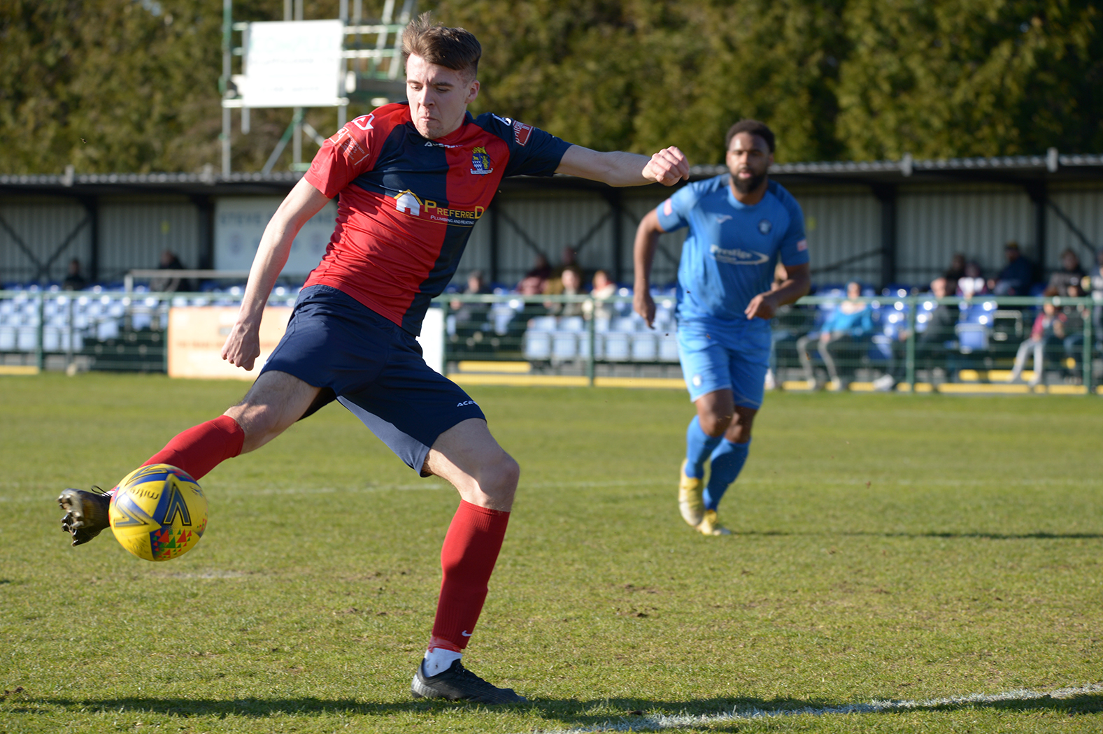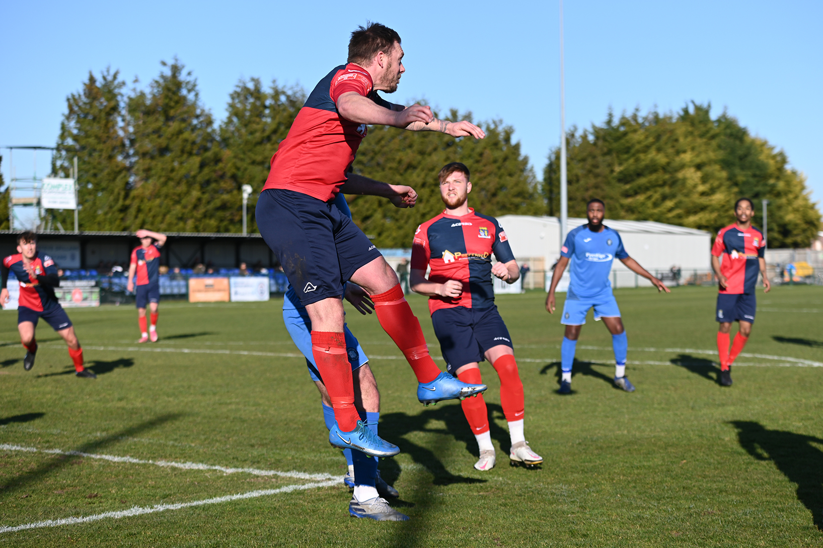 With the wind after half time, St Neots suffered the same fate as their hosts with the ball constantly overhit. Former St Neots defender Ryan Frater was close for the home side with a header from a corner and skipper Lee Watkins picked up his fifth booking since Christmas as both defences began to dominate in a second half that produced little in goal chances. However, the match did come to life in the final five minutes plus eight minutes time added with both sides having the chance to snatch a late winning goal with substitutes on to boost their attacking options. Ben Heal cut through the home defence to shoot over the bar and then Christian Tavernier produced a searing free kick that Chadwick did well emerging through a crowd of players to punch clear. Deep into added time St Neots mounted a quick attack with Myles Cowling and Marsh-Brown involved before substitute Glenn McConnell cut in from the left past two defenders to bury his fiercely hit shot in the side netting.