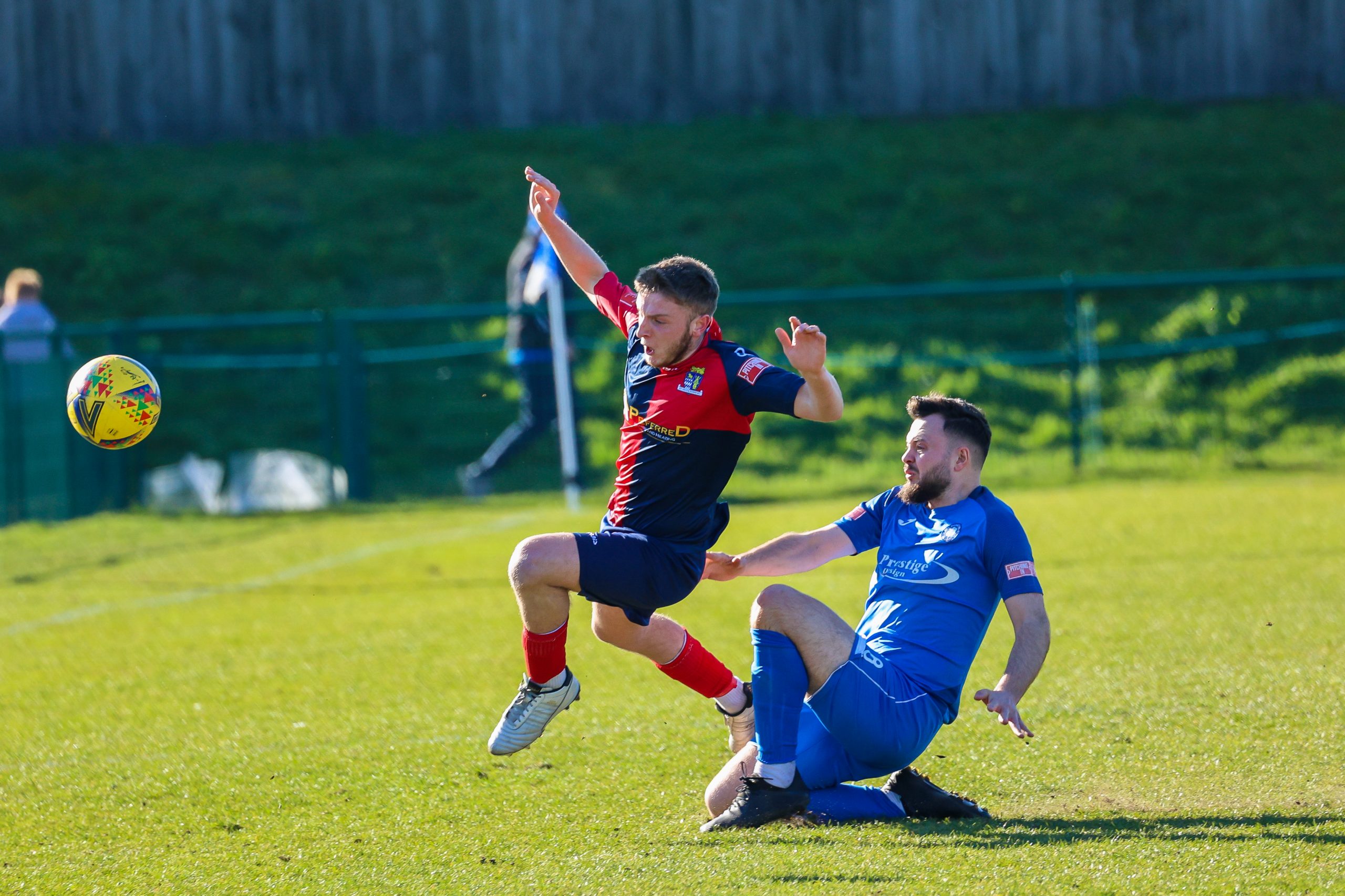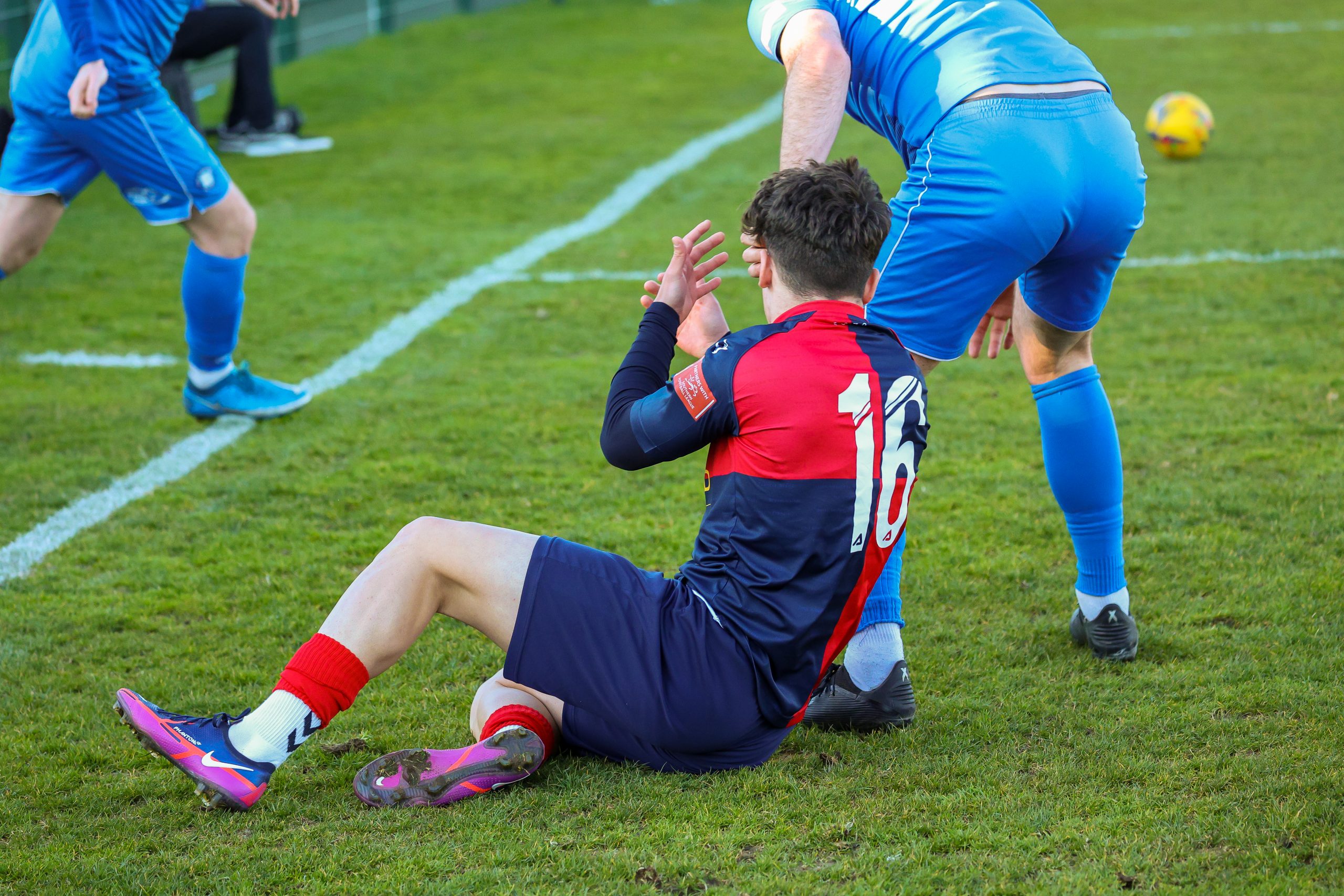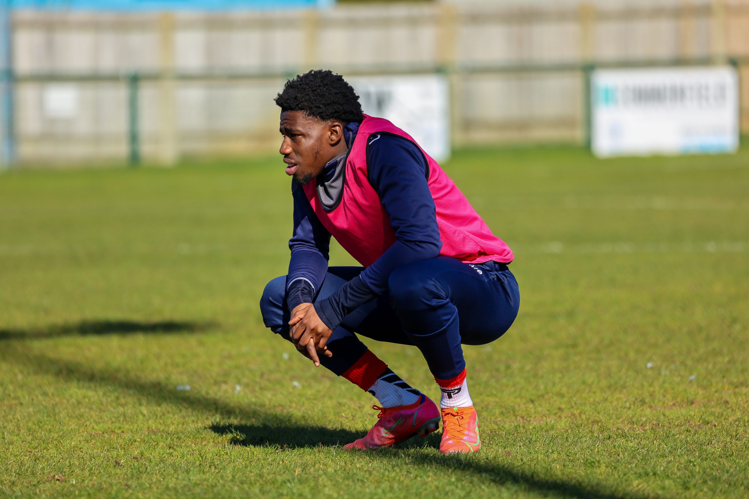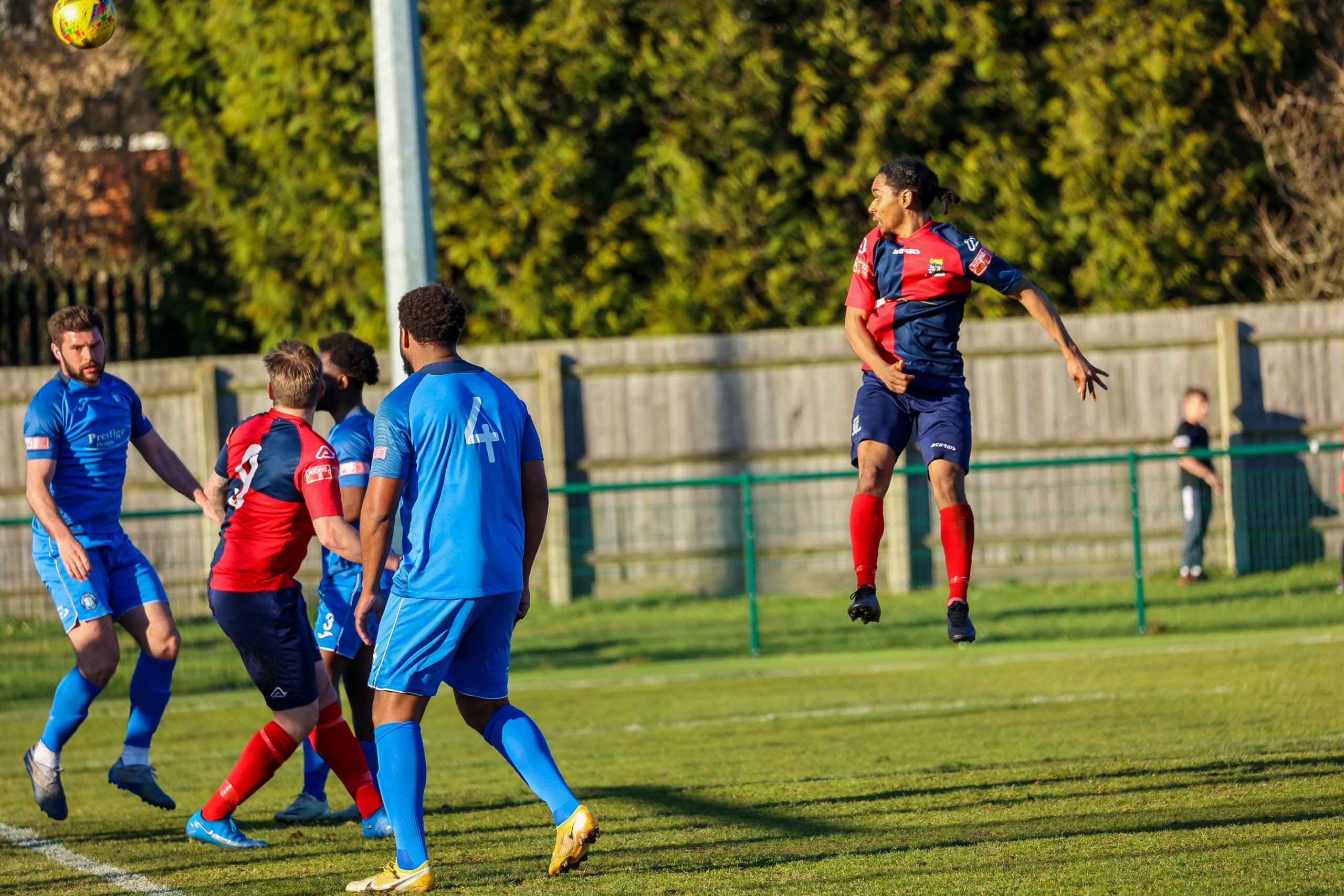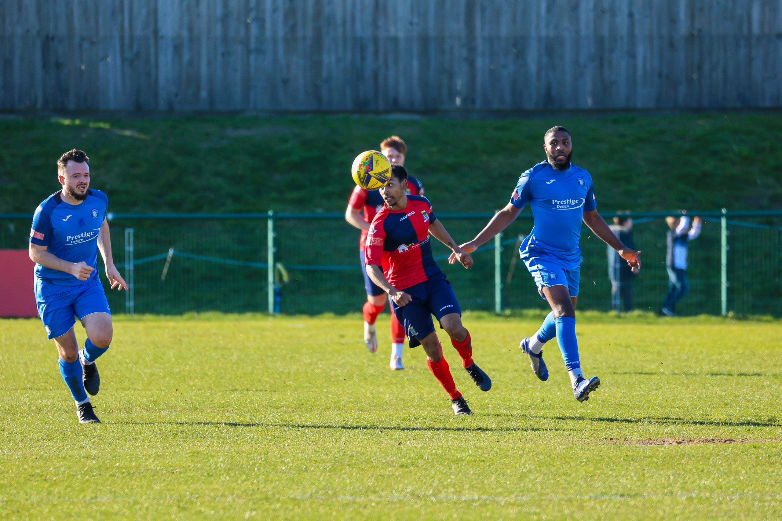 Neither side settled in the difficult conditions and it was a quarter of an hour before there was a serious effort on goal – this from Rob Mason but his effort was well saved by home keeper Jamie Head. The lively Kwai Marsh-Brown stole the ball from a dithering defender but saw his effort deflected for a corner but from a Brett Longden cross unmarked home striker Bernard Christie should have done better than strike the ball wide of goal. Louis Chadwick saved well from Kieran Hamilton and making towards goal Charley Barker was upended, earning Newman Carney a yellow card. Then, after 36 minutes a cross from the left struck a defender’s arm at close range and a harsh penalty was awarded, tucked away by Bernard Christie. St Neots protested but then responded positively as a Lee Watkins shot rebounded from a post for Joe Rider to claim the equalising goal five minutes before the break. A brave save by Chadwick at the feet of Christie ensured parity as the half time whistle blew.