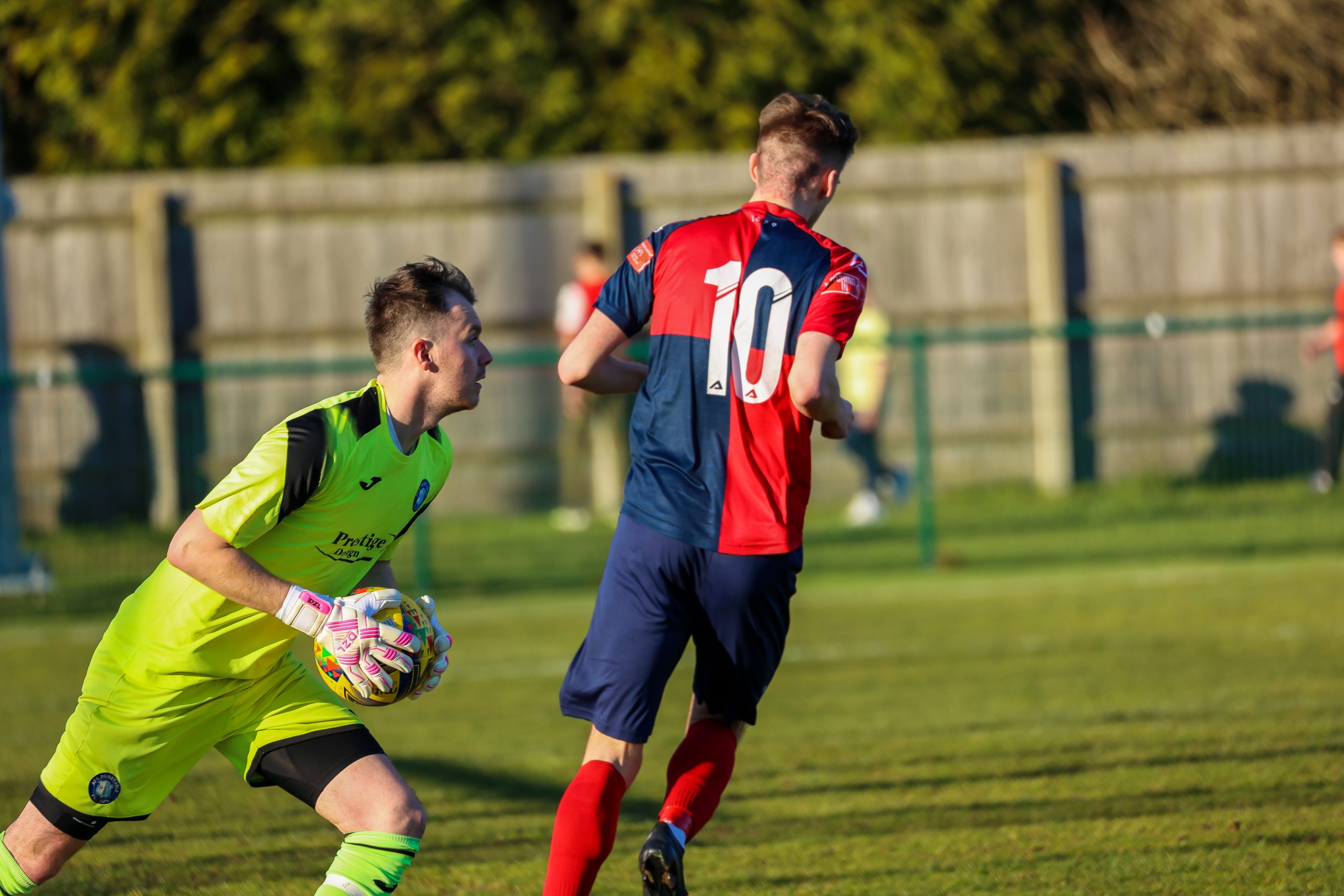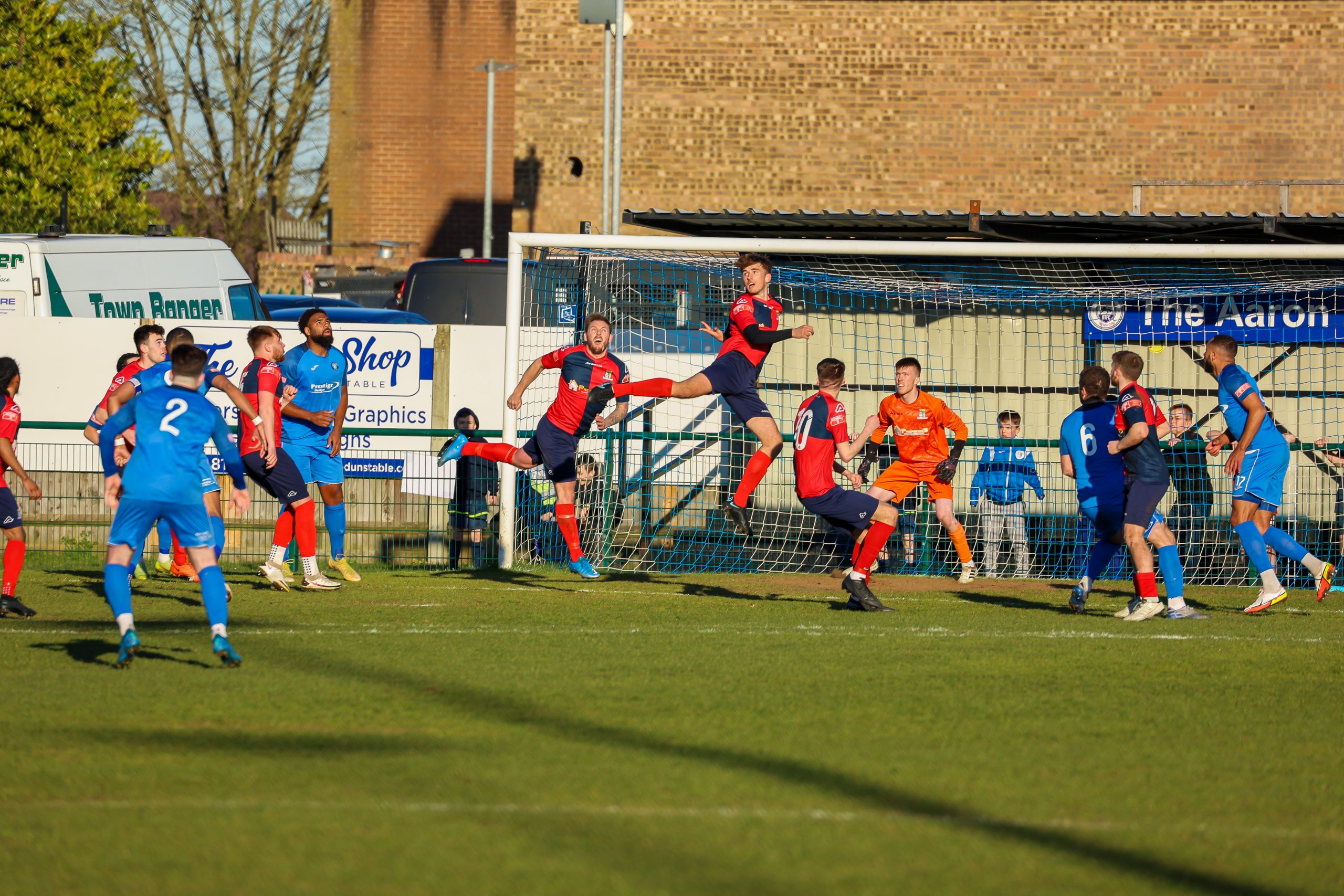 St Neots blunted Dunstable’s play off hopes with a well-earned draw at Creasey Park. With three wins from their last four outings St Neots are now guaranteed Step Four status next season. Three draws and a defeat in their last four matches leaves Dunstable nervous about their play-off hopes with four teams now contesting the three remaining places and a tough run-in to negotiate. The match was contested under a cloudless sky but it was spoiled by a nagging breeze that neither side could better nor use to their advantage.