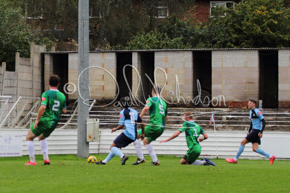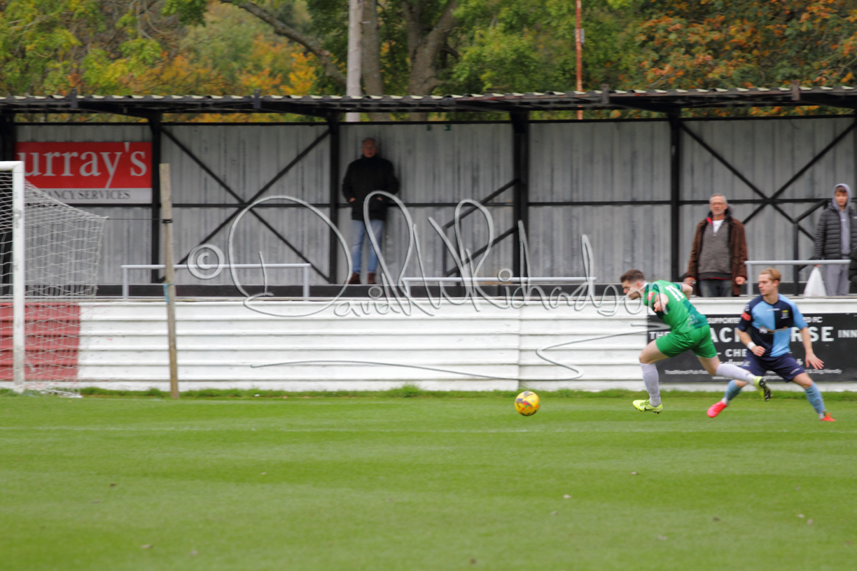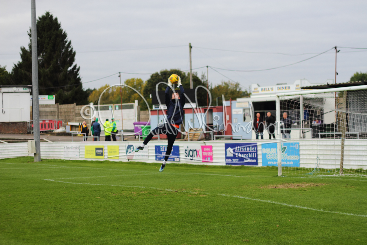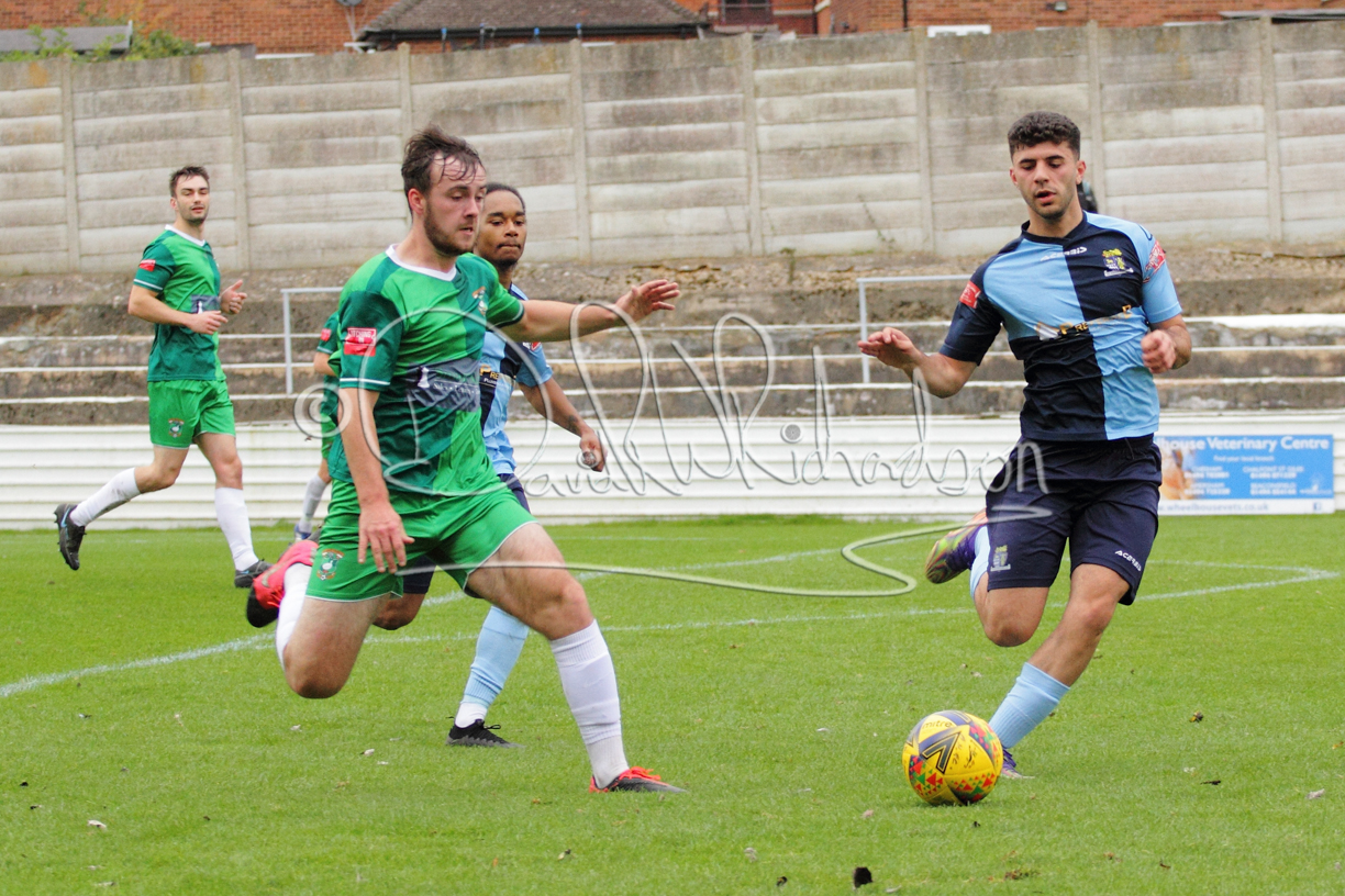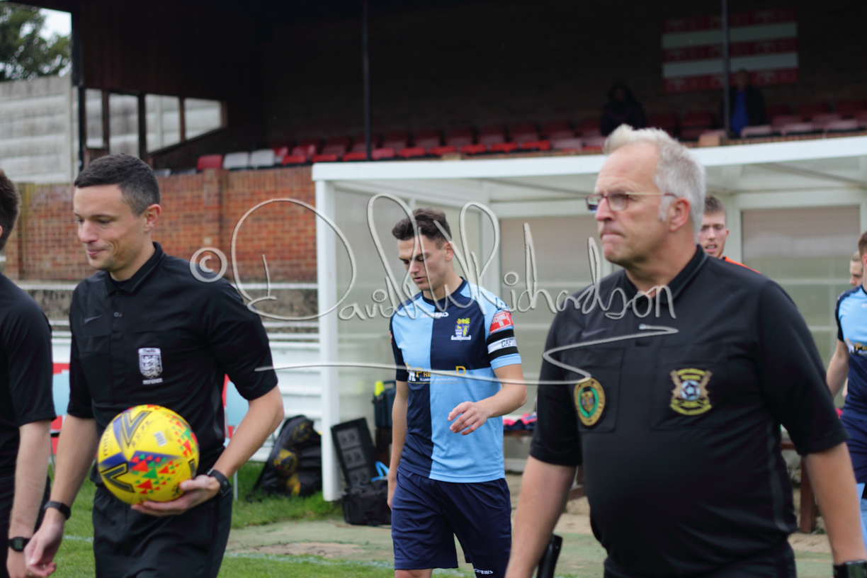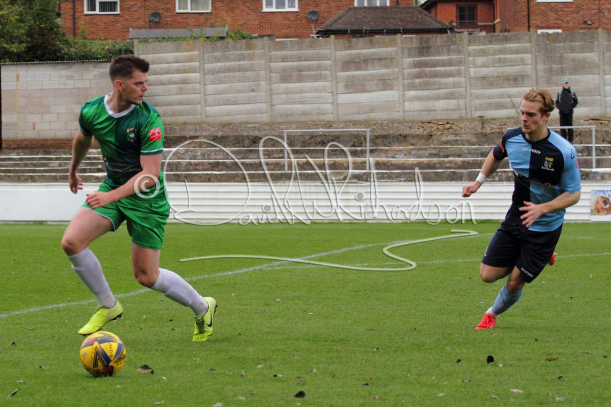 St Neots could not have had to recover from a worse start to a league match for after kicking off they lost the ball to their opponents and just 18 seconds after the first whistle they conceded the opening goal of the contest. Max Hercules received the ball on the left and drifted past his marker to cross for striker Ty Deacon who twisted his way past Mamadou Jobe to beat the keeper with a fine finish. St Neots look stunned and after Jordan Jenkins had gone close to second goal for the home side – a header from a Jake Bewley corner – the visitors lost midfielder Charley Barker after twelve minutes to injury with fit again Ben Heal replacing him. Chadwick then produced an excellent save from Ben Seaton following a corner and he was then relieved to see a cross-shot from Hercules rebound from the far post to be cleared. St Neots were not at their best in attack despite sharing possession with their finishing hopeful rather than accurate and Neo Richard-Noel set up by Heal had their best chance to level the scores, but home keeper Archie Davis saved well. Just past the half hour a bad mistake by Wynford Marfo let in Deacon but Chadwick saved well and then with the keeper off his line Seaton tried his luck with a 45 yards lob that was inches too high. The lively Kwai Marsh-Brown then shot over the bar but on the stroke of half time St Neots levelled as skipper Lee Watkins fired in a low shot from the edge of the penalty area for his second goal of the campaign. There was still time in added time for the home keeper to make an important near post save to keep out a clever Rider flick.