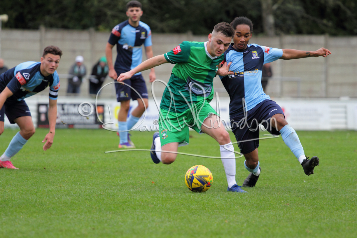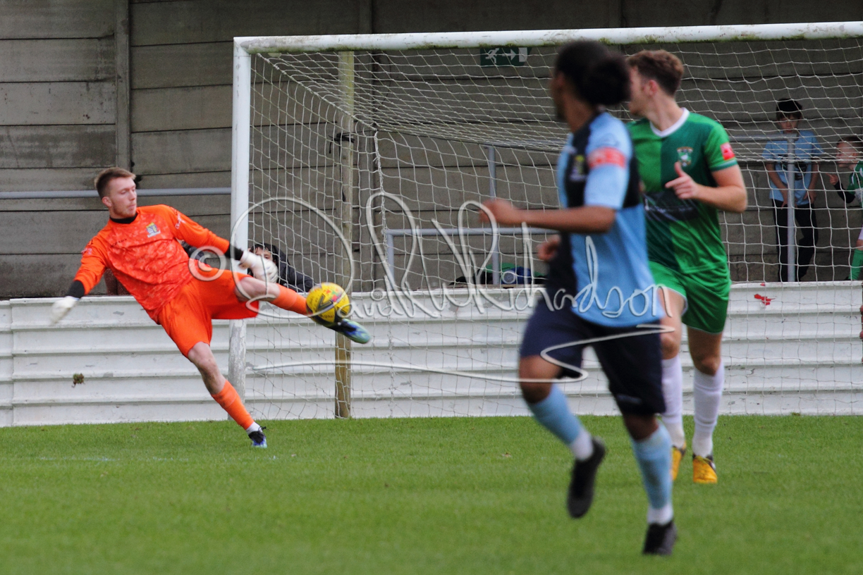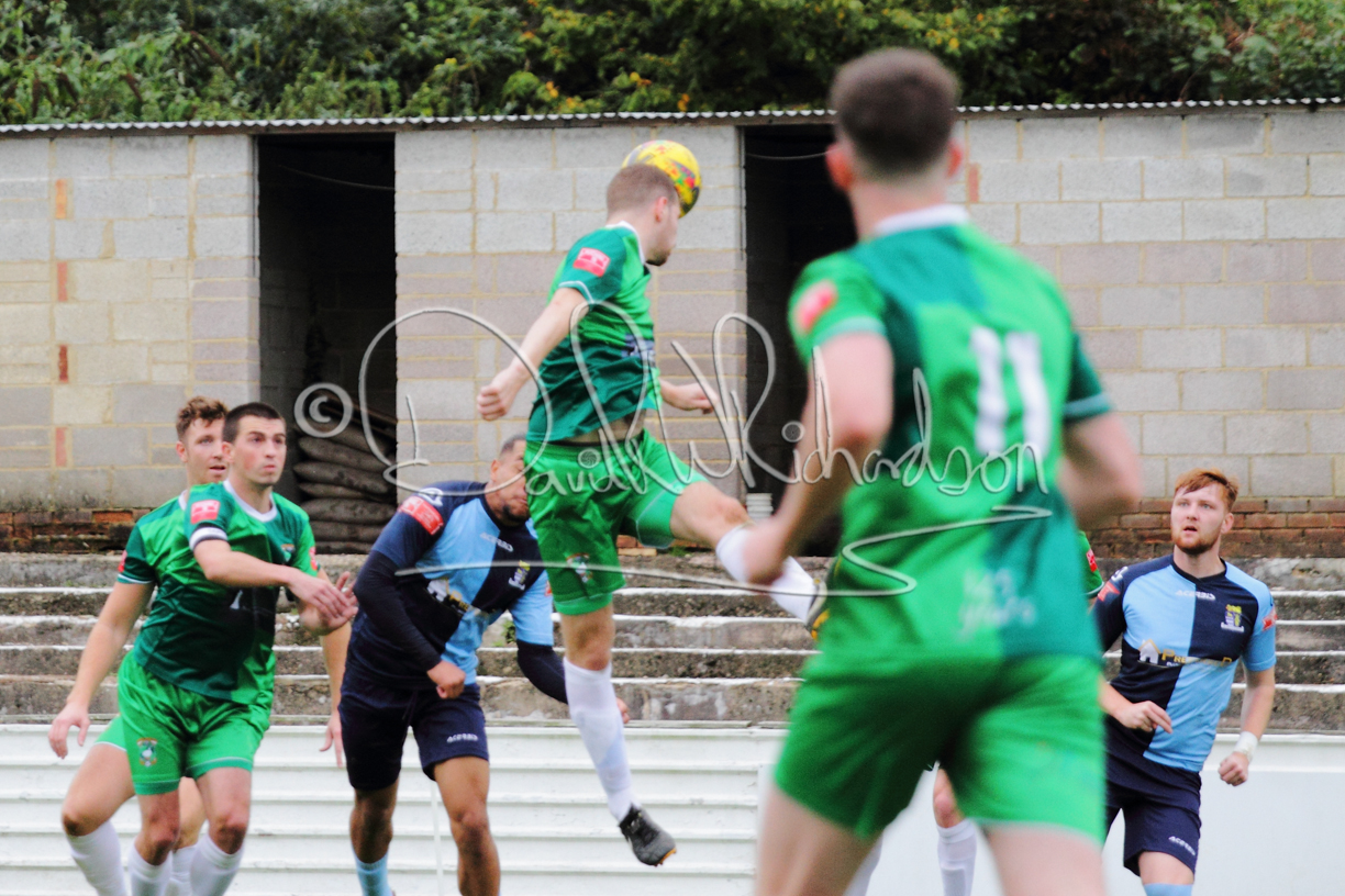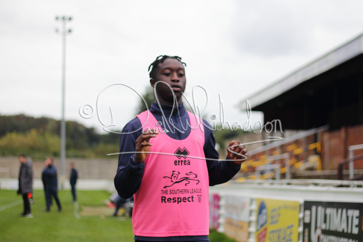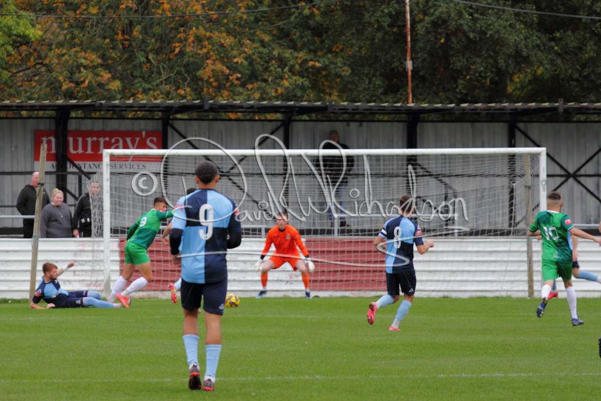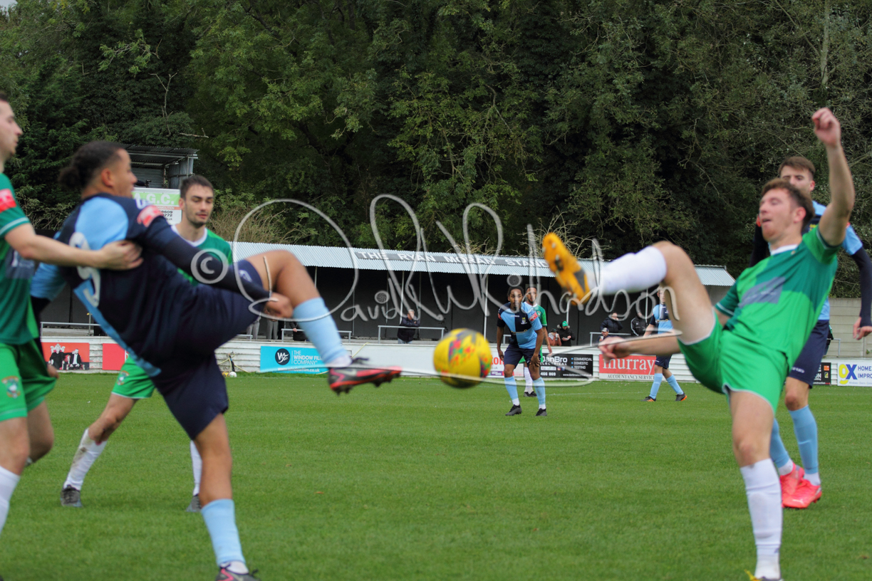 St Neots could not have had to recover from a worse start to a league match for after kicking off they lost the ball to their opponents and just 18 seconds after the first whistle they conceded the opening goal of the contest. Max Hercules received the ball on the left and drifted past his marker to cross for striker Ty Deacon who twisted his way past Mamadou Jobe to beat the keeper with a fine finish. St Neots look stunned and after Jordan Jenkins had gone close to second goal for the home side – a header from a Jake Bewley corner – the visitors lost midfielder Charley Barker after twelve minutes to injury with fit again Ben Heal replacing him. Chadwick then produced an excellent save from Ben Seaton following a corner and he was then relieved to see a cross-shot from Hercules rebound from the far post to be cleared. St Neots were not at their best in attack despite sharing possession with their finishing hopeful rather than accurate and Neo Richard-Noel set up by Heal had their best chance to level the scores, but home keeper Archie Davis saved well. Just past the half hour a bad mistake by Wynford Marfo let in Deacon but Chadwick saved well and then with the keeper off his line Seaton tried his luck with a 45 yards lob that was inches too high. The lively Kwai Marsh-Brown then shot over the bar but on the stroke of half time St Neots levelled as skipper Lee Watkins fired in a low shot from the edge of the penalty area for his second goal of the campaign. There was still time in added time for the home keeper to make an important near post save to keep out a clever Rider flick.