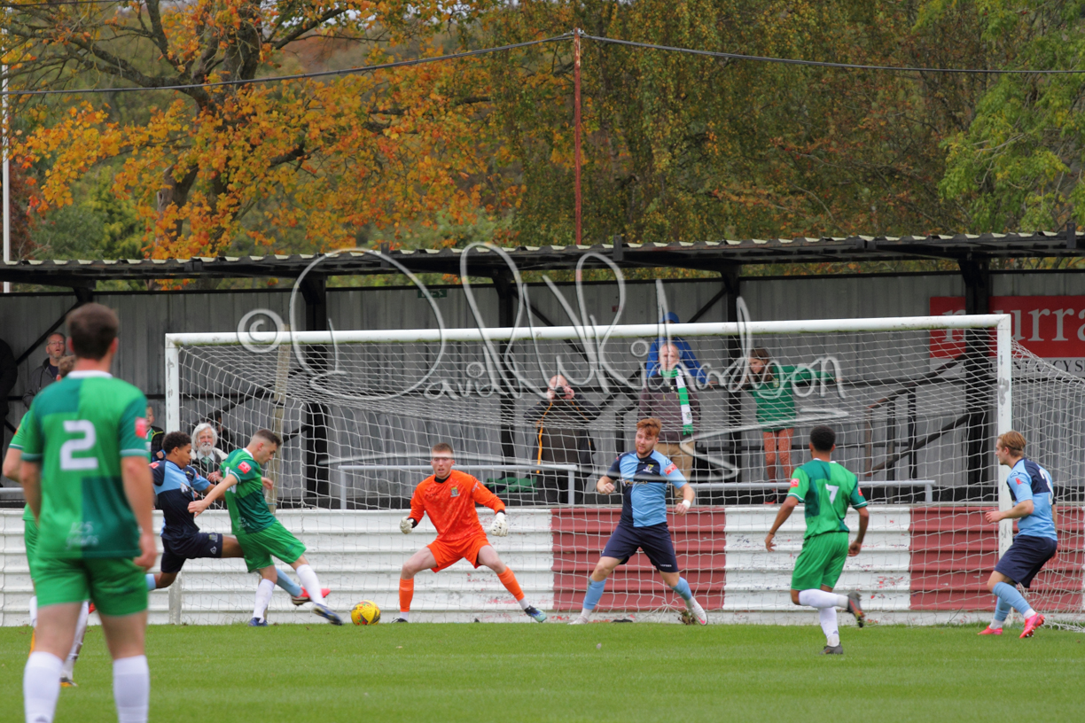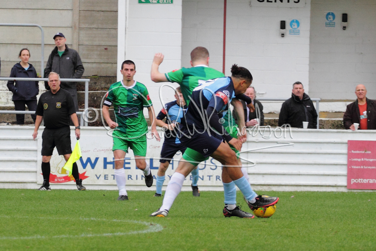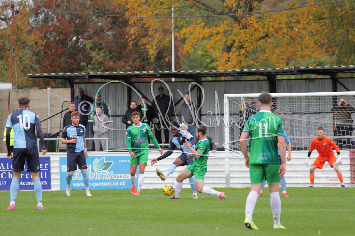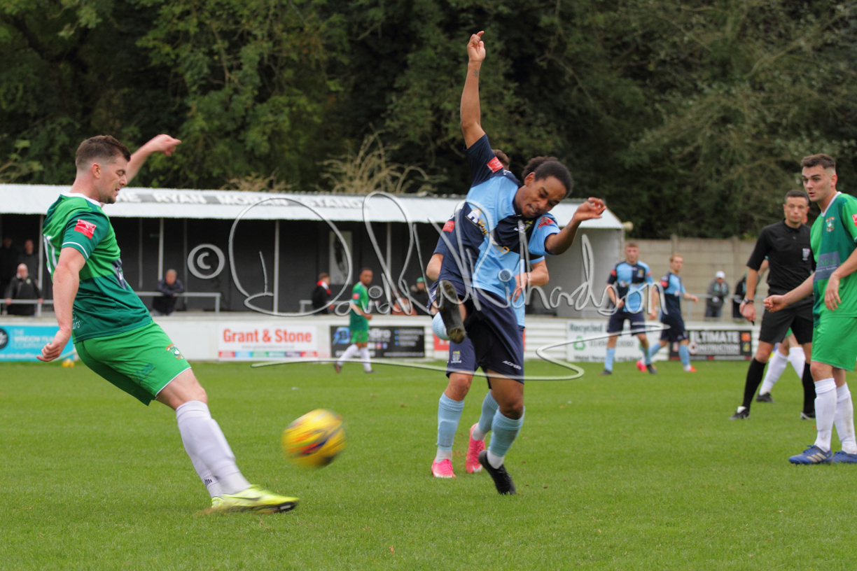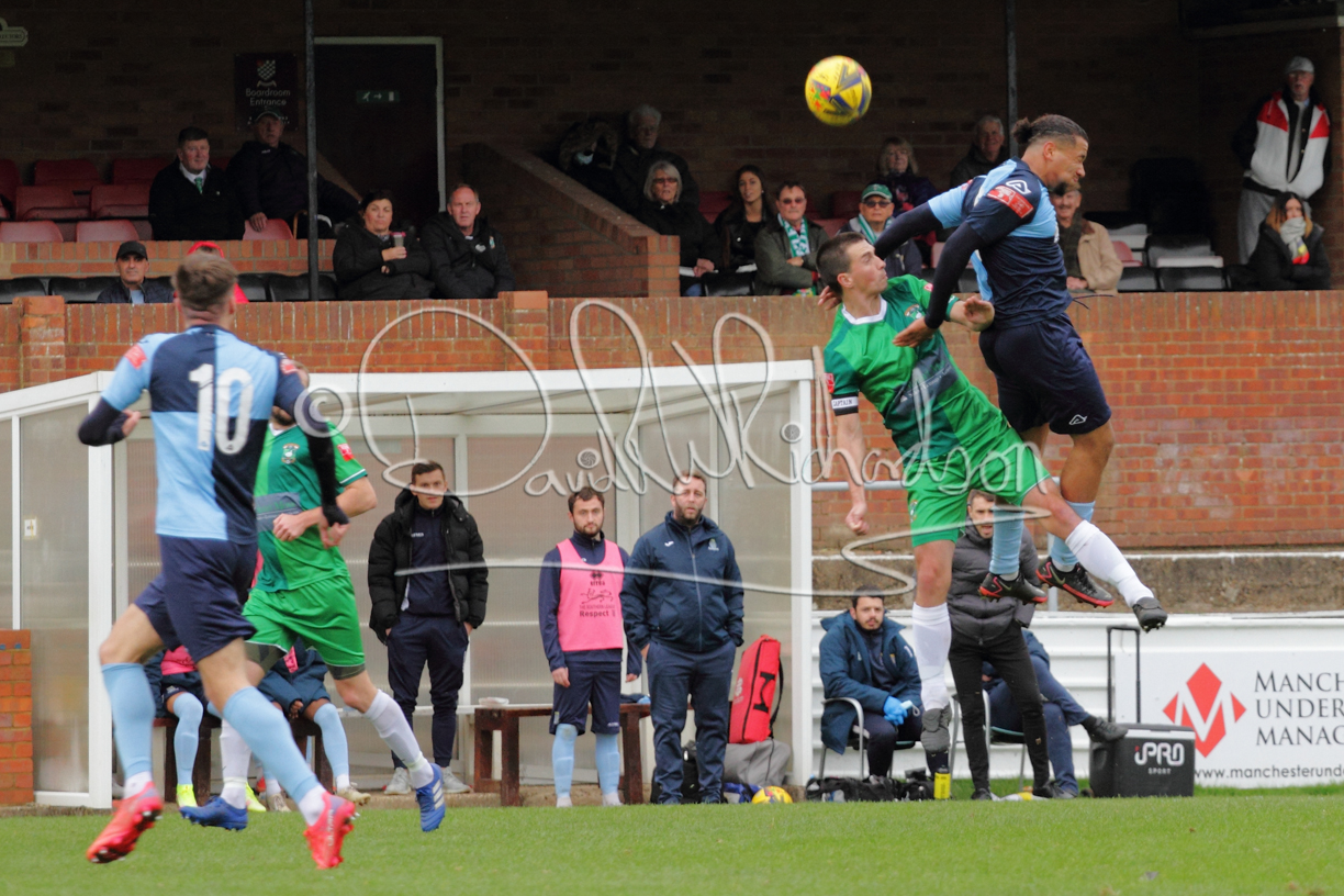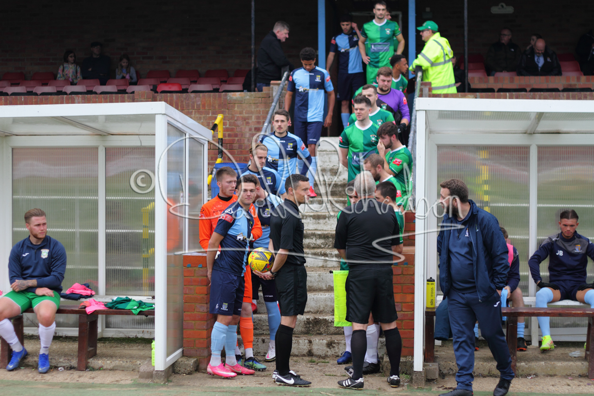 St Neots could not have had to recover from a worse start to a league match for after kicking off they lost the ball to their opponents and just 18 seconds after the first whistle they conceded the opening goal of the contest. Max Hercules received the ball on the left and drifted past his marker to cross for striker Ty Deacon who twisted his way past Mamadou Jobe to beat the keeper with a fine finish. St Neots look stunned and after Jordan Jenkins had gone close to second goal for the home side – a header from a Jake Bewley corner – the visitors lost midfielder Charley Barker after twelve minutes to injury with fit again Ben Heal replacing him. Chadwick then produced an excellent save from Ben Seaton following a corner and he was then relieved to see a cross-shot from Hercules rebound from the far post to be cleared. St Neots were not at their best in attack despite sharing possession with their finishing hopeful rather than accurate and Neo Richard-Noel set up by Heal had their best chance to level the scores, but home keeper Archie Davis saved well. Just past the half hour a bad mistake by Wynford Marfo let in Deacon but Chadwick saved well and then with the keeper off his line Seaton tried his luck with a 45 yards lob that was inches too high. The lively Kwai Marsh-Brown then shot over the bar but on the stroke of half time St Neots levelled as skipper Lee Watkins fired in a low shot from the edge of the penalty area for his second goal of the campaign. There was still time in added time for the home keeper to make an important near post save to keep out a clever Rider flick.