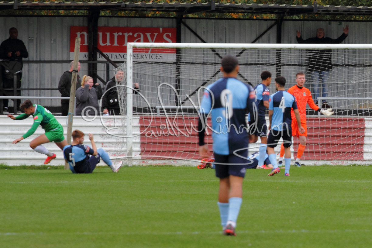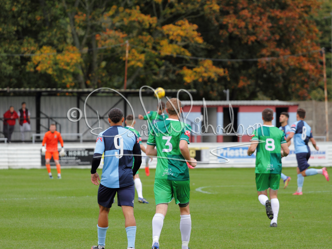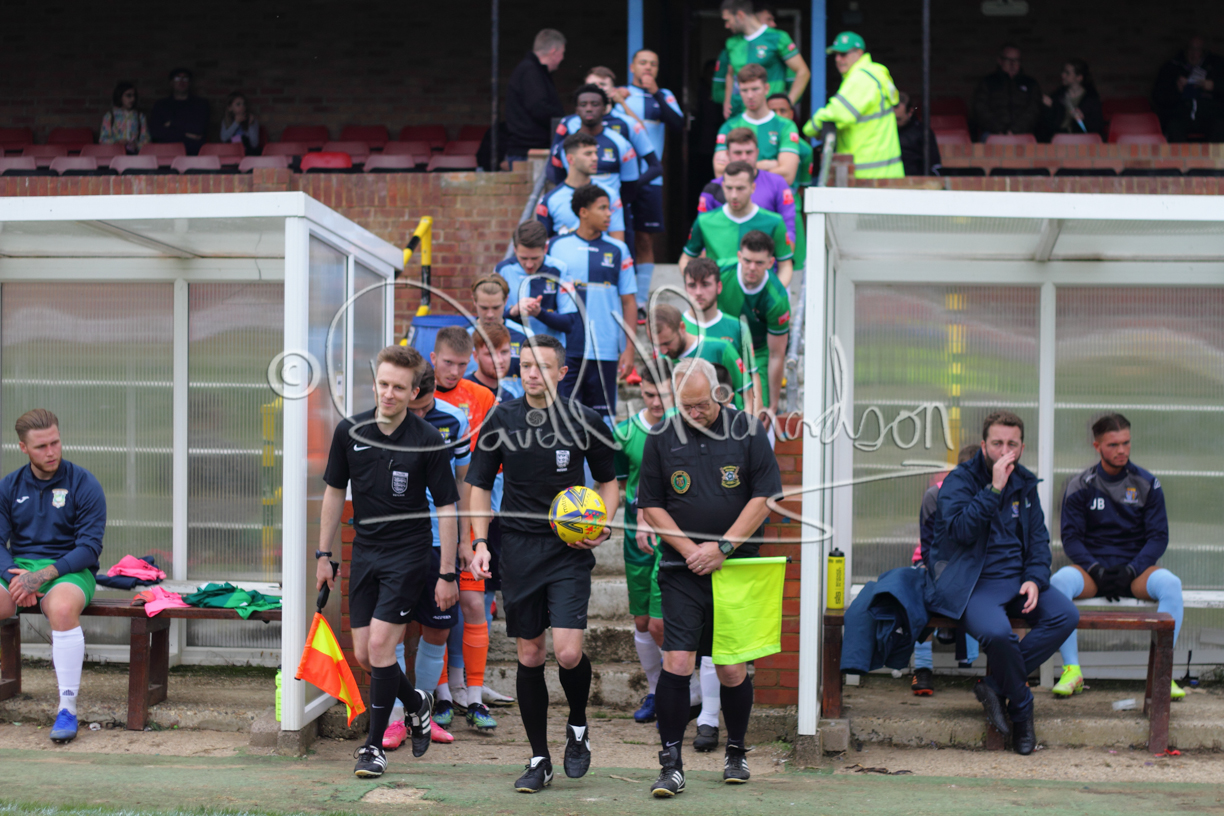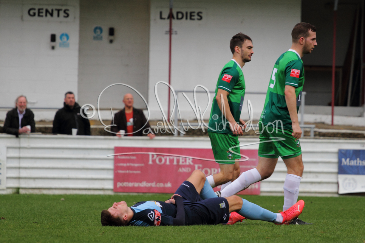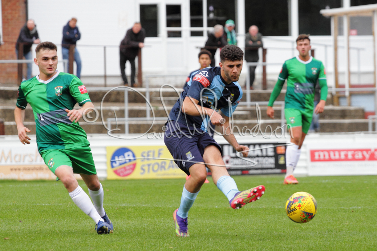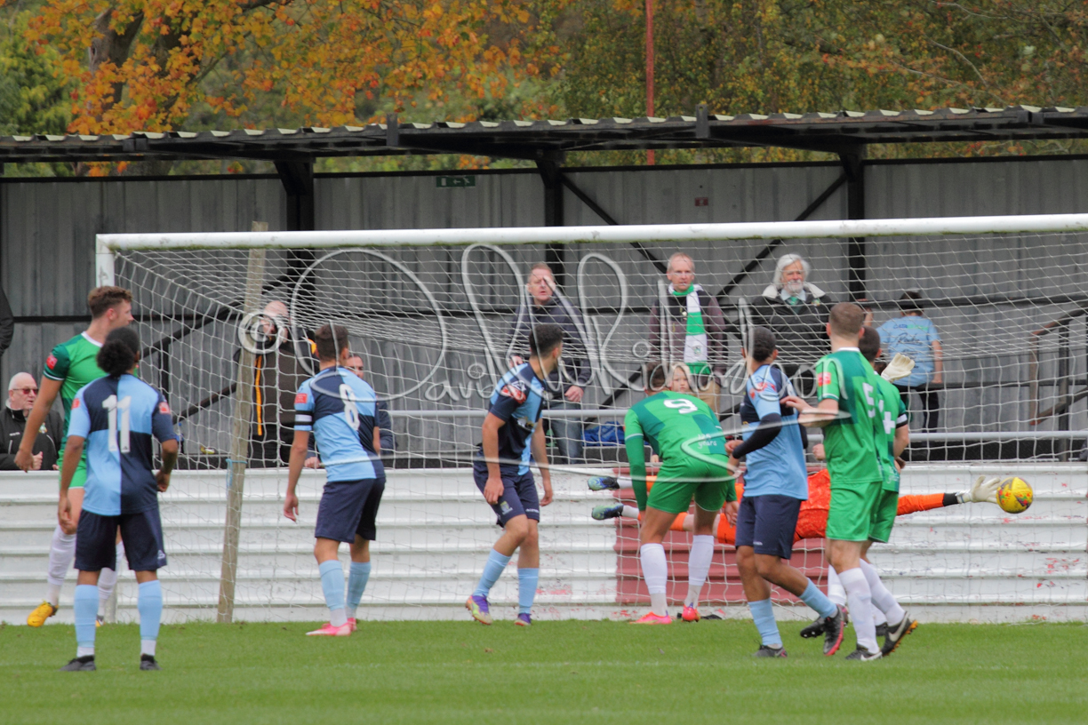 St Neots could not have had to recover from a worse start to a league match for after kicking off they lost the ball to their opponents and just 18 seconds after the first whistle they conceded the opening goal of the contest. Max Hercules received the ball on the left and drifted past his marker to cross for striker Ty Deacon who twisted his way past Mamadou Jobe to beat the keeper with a fine finish. St Neots look stunned and after Jordan Jenkins had gone close to second goal for the home side – a header from a Jake Bewley corner – the visitors lost midfielder Charley Barker after twelve minutes to injury with fit again Ben Heal replacing him. Chadwick then produced an excellent save from Ben Seaton following a corner and he was then relieved to see a cross-shot from Hercules rebound from the far post to be cleared. St Neots were not at their best in attack despite sharing possession with their finishing hopeful rather than accurate and Neo Richard-Noel set up by Heal had their best chance to level the scores, but home keeper Archie Davis saved well. Just past the half hour a bad mistake by Wynford Marfo let in Deacon but Chadwick saved well and then with the keeper off his line Seaton tried his luck with a 45 yards lob that was inches too high. The lively Kwai Marsh-Brown then shot over the bar but on the stroke of half time St Neots levelled as skipper Lee Watkins fired in a low shot from the edge of the penalty area for his second goal of the campaign. There was still time in added time for the home keeper to make an important near post save to keep out a clever Rider flick.