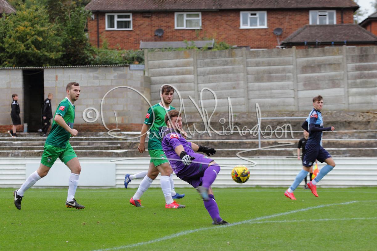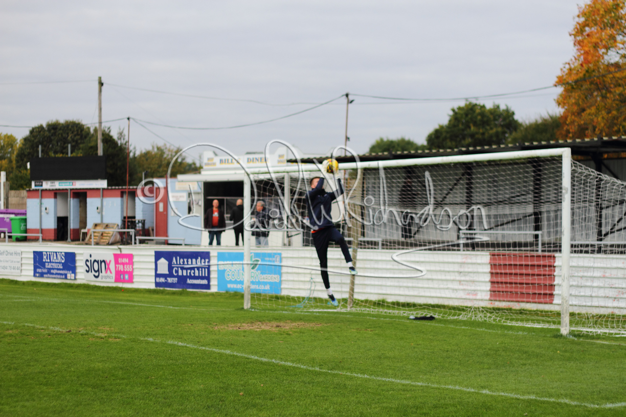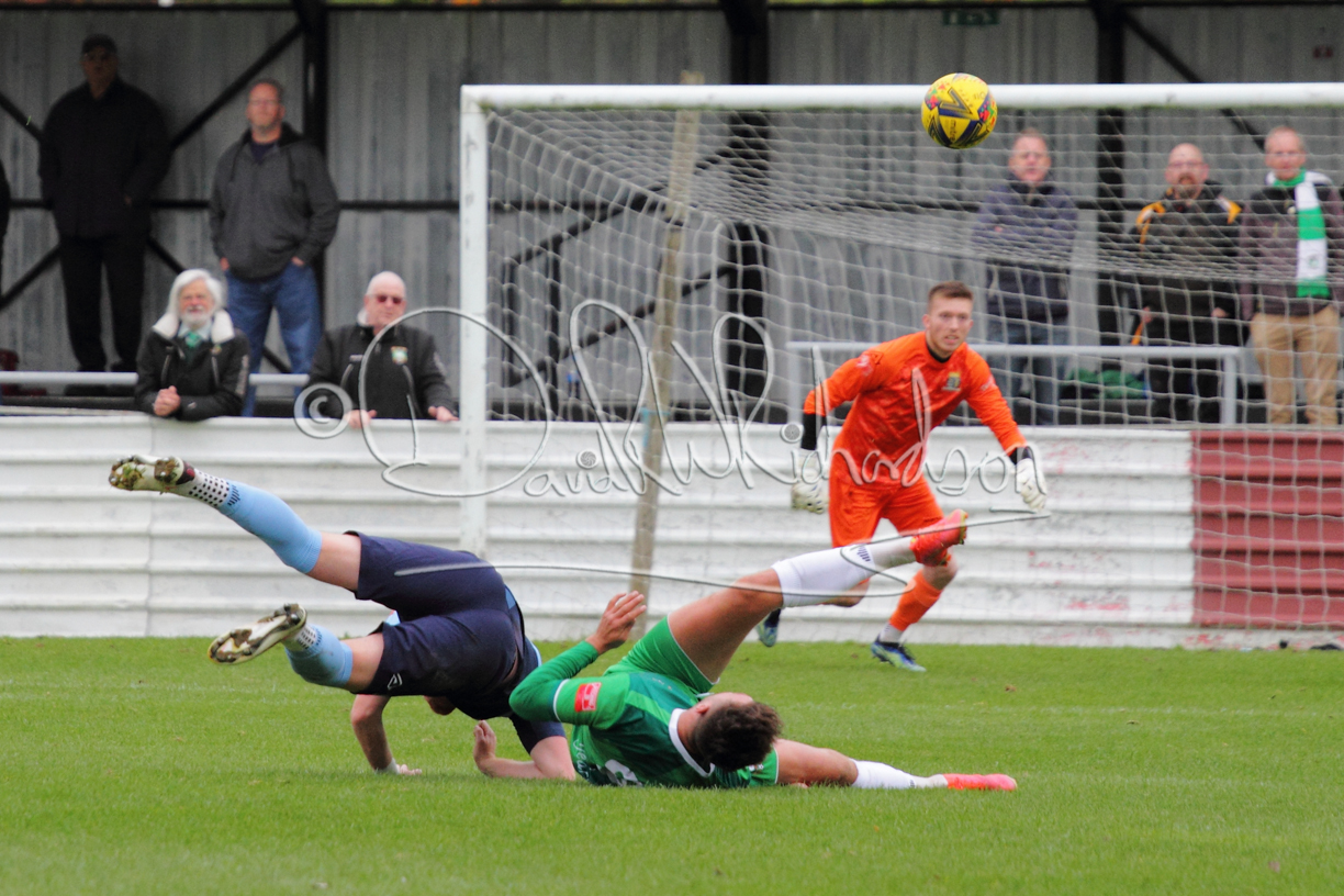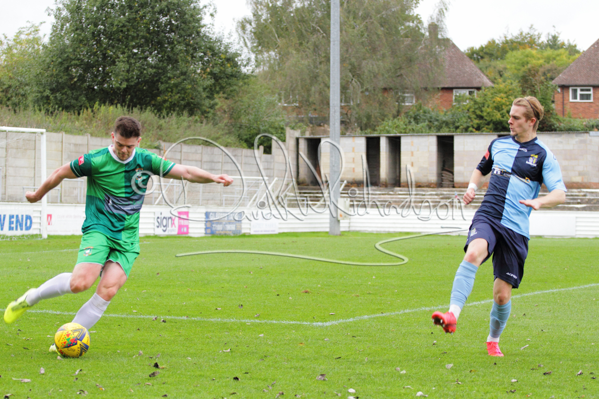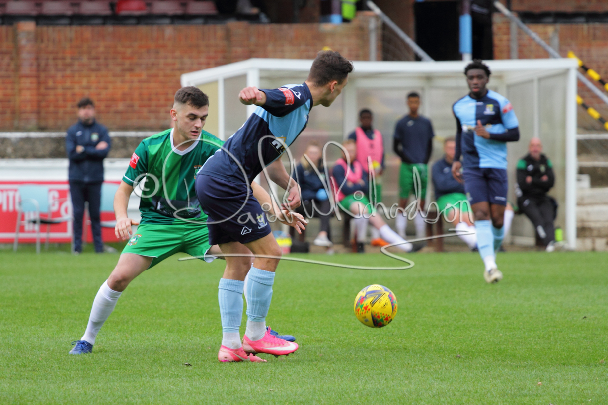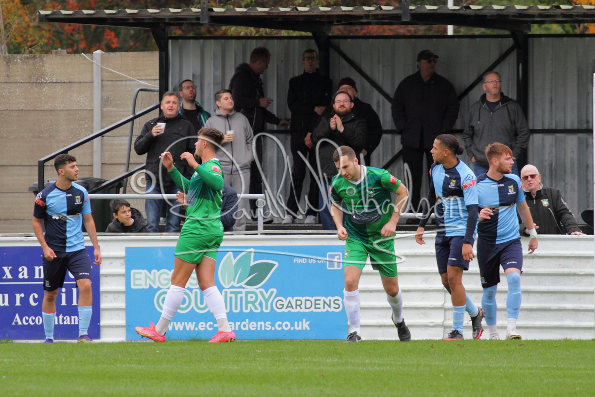St Neots could not have had to recover from a worse start to a league match for after kicking off they lost the ball to their opponents and just 18 seconds after the first whistle they conceded the opening goal of the contest. Max Hercules received the ball on the left and drifted past his marker to cross for striker Ty Deacon who twisted his way past Mamadou Jobe to beat the keeper with a fine finish. St Neots look stunned and after Jordan Jenkins had gone close to second goal for the home side – a header from a Jake Bewley corner – the visitors lost midfielder Charley Barker after twelve minutes to injury with fit again Ben Heal replacing him. Chadwick then produced an excellent save from Ben Seaton following a corner and he was then relieved to see a cross-shot from Hercules rebound from the far post to be cleared. St Neots were not at their best in attack despite sharing possession with their finishing hopeful rather than accurate and Neo Richard-Noel set up by Heal had their best chance to level the scores, but home keeper Archie Davis saved well. Just past the half hour a bad mistake by Wynford Marfo let in Deacon but Chadwick saved well and then with the keeper off his line Seaton tried his luck with a 45 yards lob that was inches too high. The lively Kwai Marsh-Brown then shot over the bar but on the stroke of half time St Neots levelled as skipper Lee Watkins fired in a low shot from the edge of the penalty area for his second goal of the campaign. There was still time in added time for the home keeper to make an important near post save to keep out a clever Rider flick.