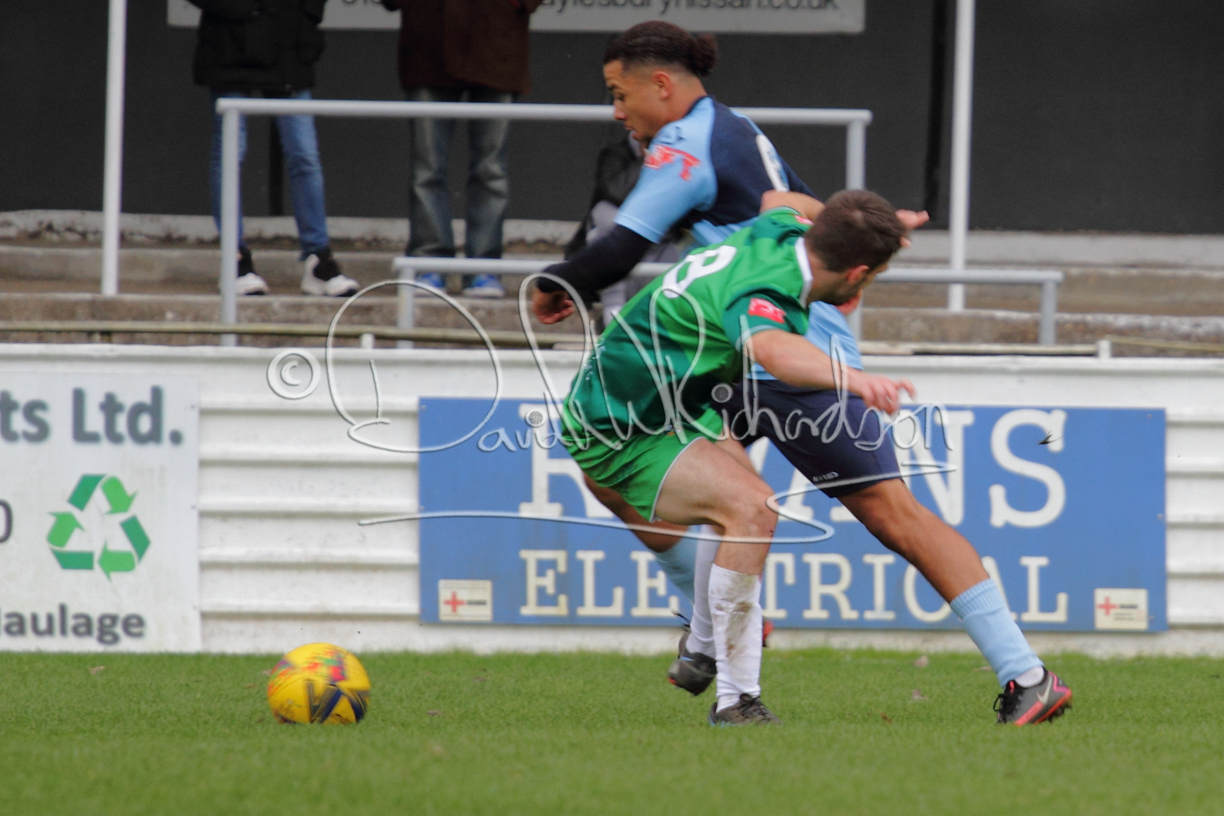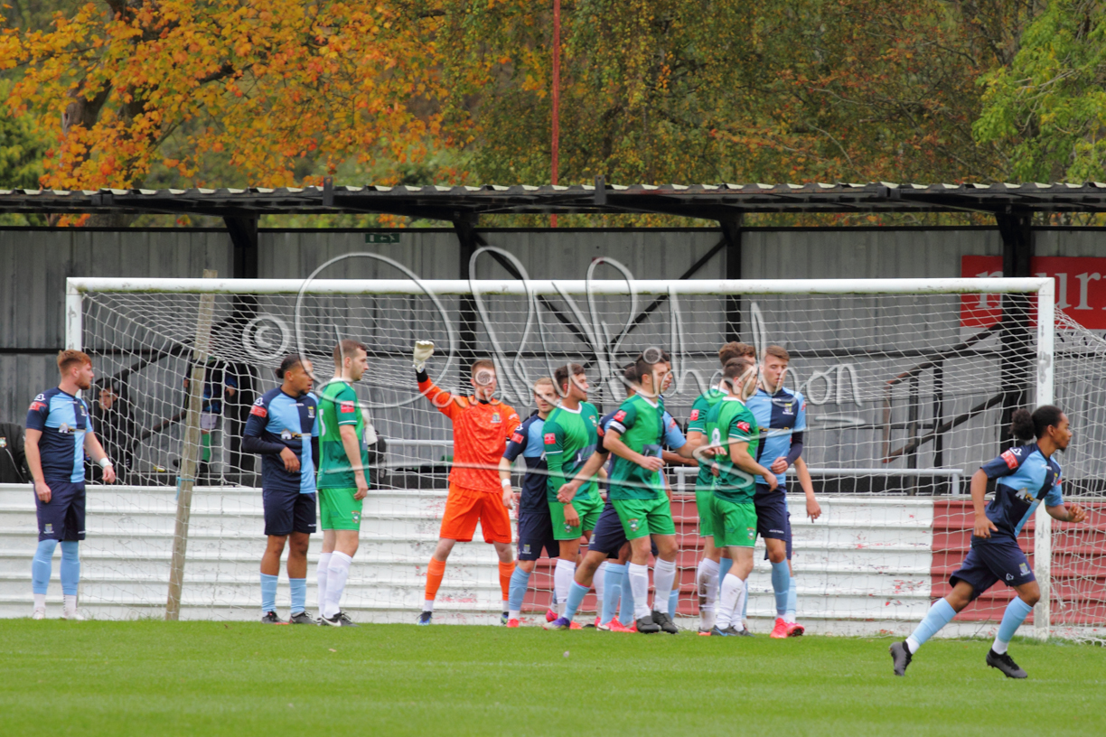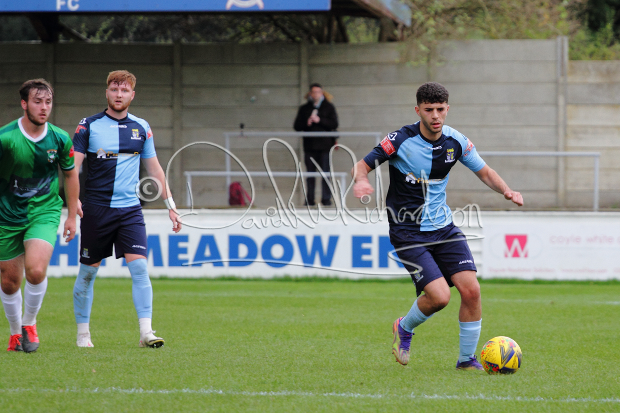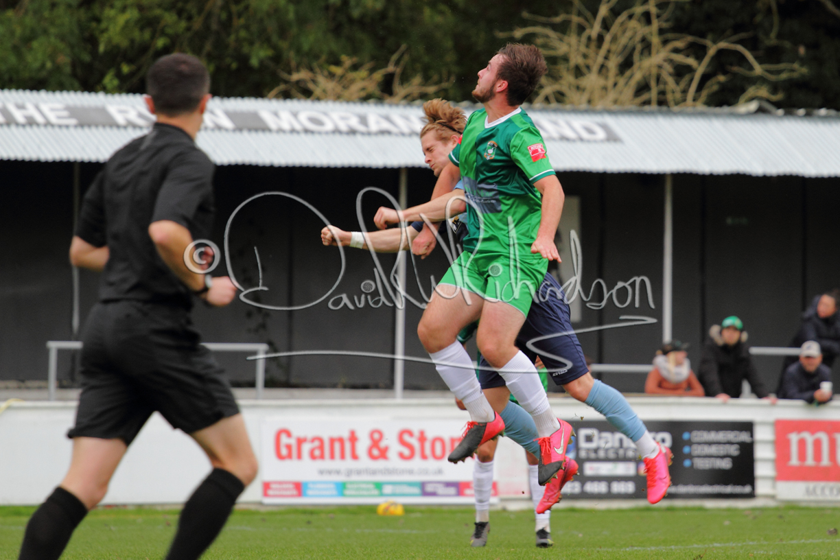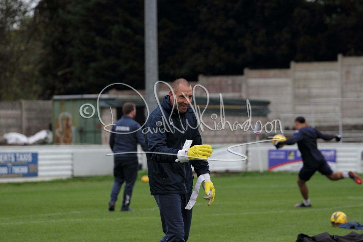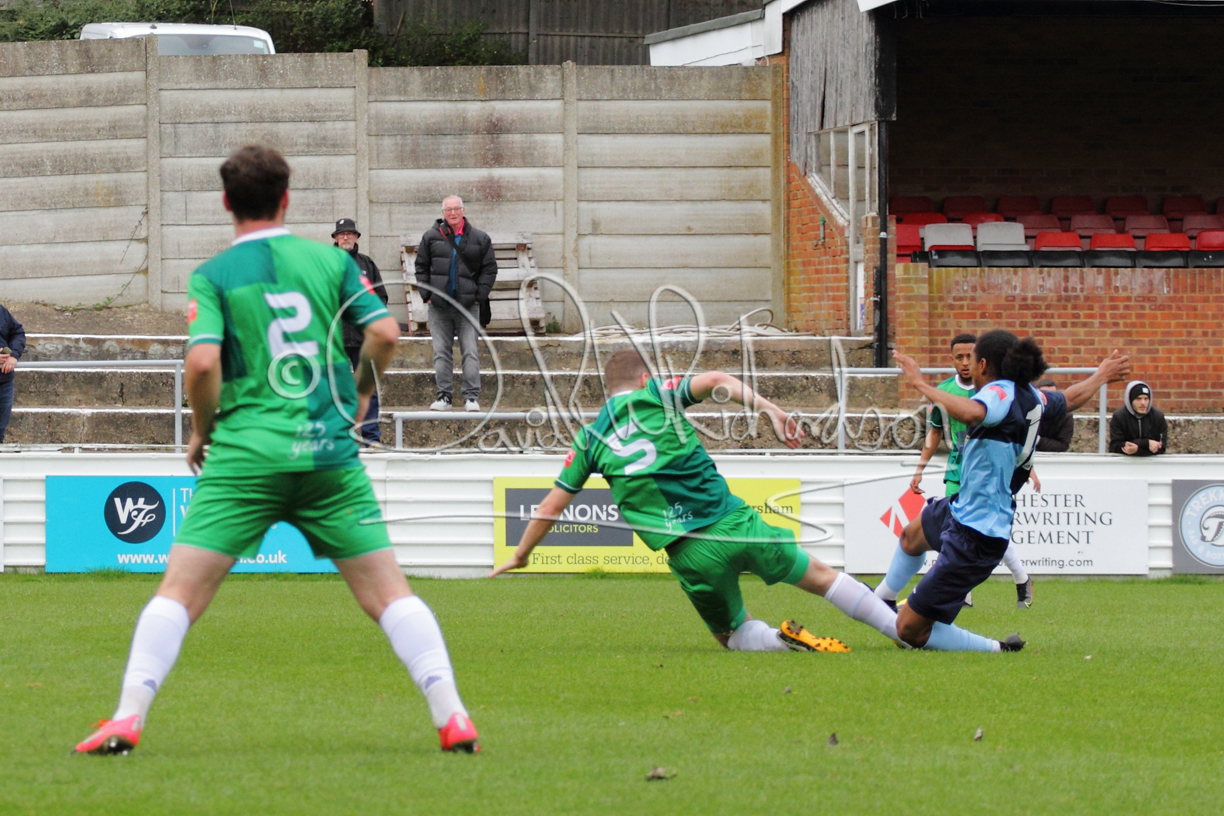 St Neots could not have had to recover from a worse start to a league match for after kicking off they lost the ball to their opponents and just 18 seconds after the first whistle they conceded the opening goal of the contest. Max Hercules received the ball on the left and drifted past his marker to cross for striker Ty Deacon who twisted his way past Mamadou Jobe to beat the keeper with a fine finish. St Neots look stunned and after Jordan Jenkins had gone close to second goal for the home side – a header from a Jake Bewley corner – the visitors lost midfielder Charley Barker after twelve minutes to injury with fit again Ben Heal replacing him. Chadwick then produced an excellent save from Ben Seaton following a corner and he was then relieved to see a cross-shot from Hercules rebound from the far post to be cleared. St Neots were not at their best in attack despite sharing possession with their finishing hopeful rather than accurate and Neo Richard-Noel set up by Heal had their best chance to level the scores, but home keeper Archie Davis saved well. Just past the half hour a bad mistake by Wynford Marfo let in Deacon but Chadwick saved well and then with the keeper off his line Seaton tried his luck with a 45 yards lob that was inches too high. The lively Kwai Marsh-Brown then shot over the bar but on the stroke of half time St Neots levelled as skipper Lee Watkins fired in a low shot from the edge of the penalty area for his second goal of the campaign. There was still time in added time for the home keeper to make an important near post save to keep out a clever Rider flick.