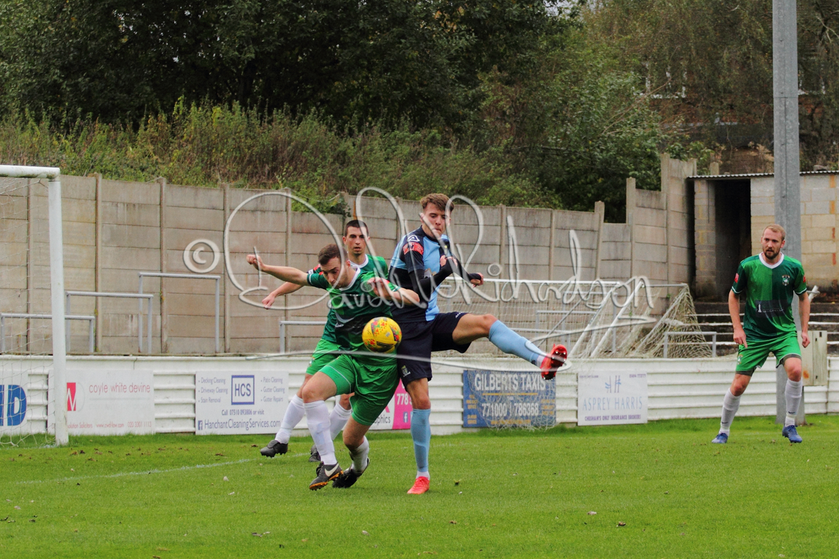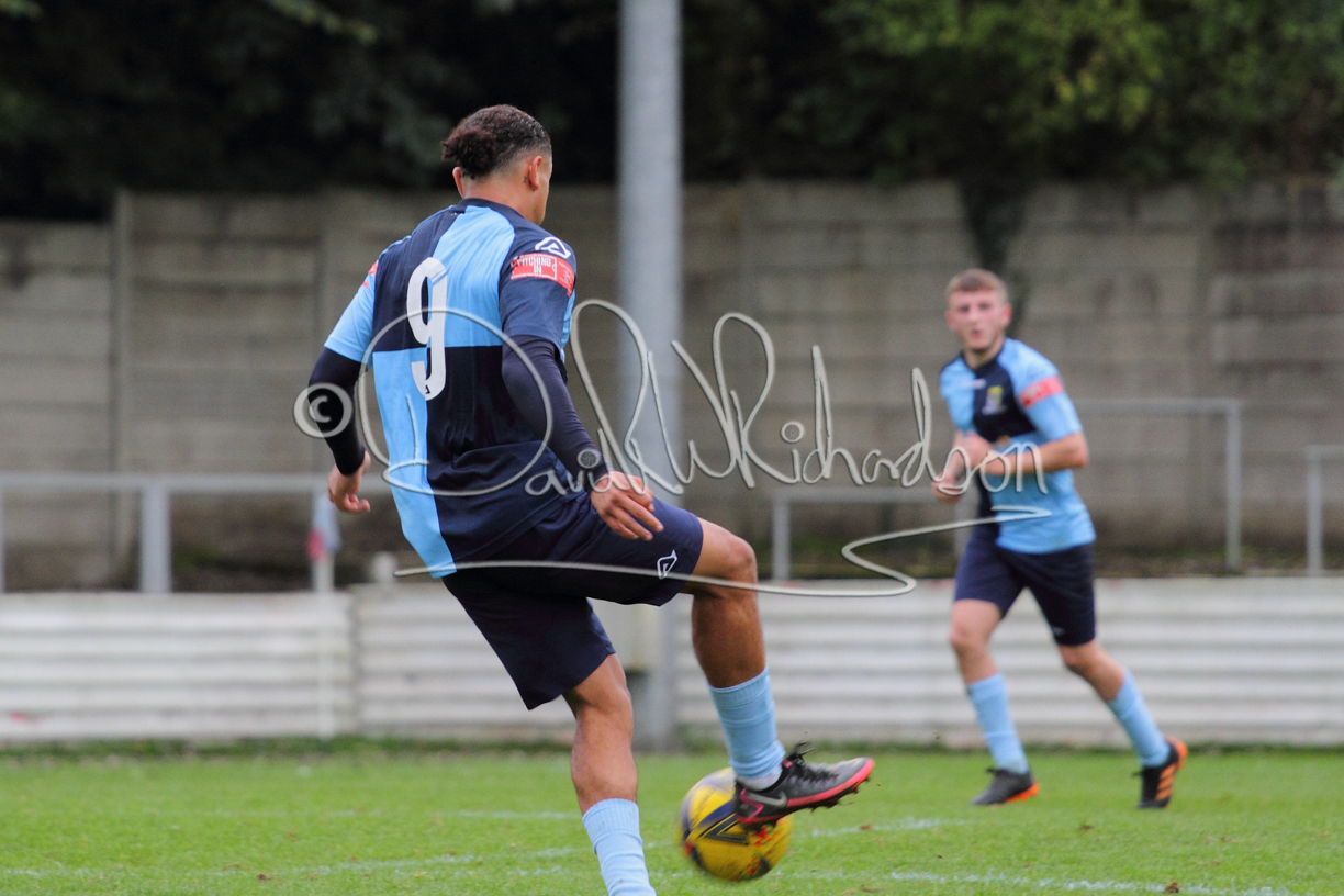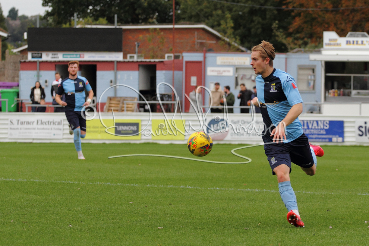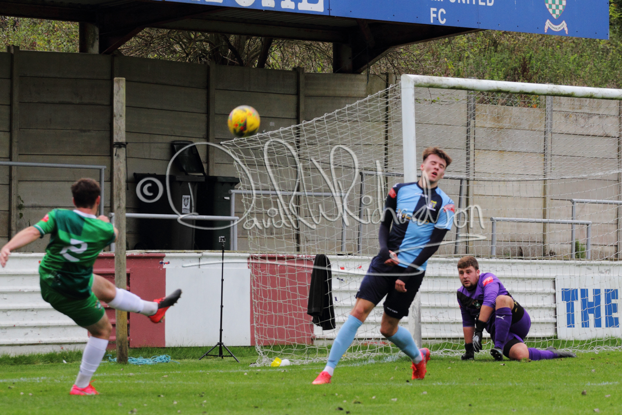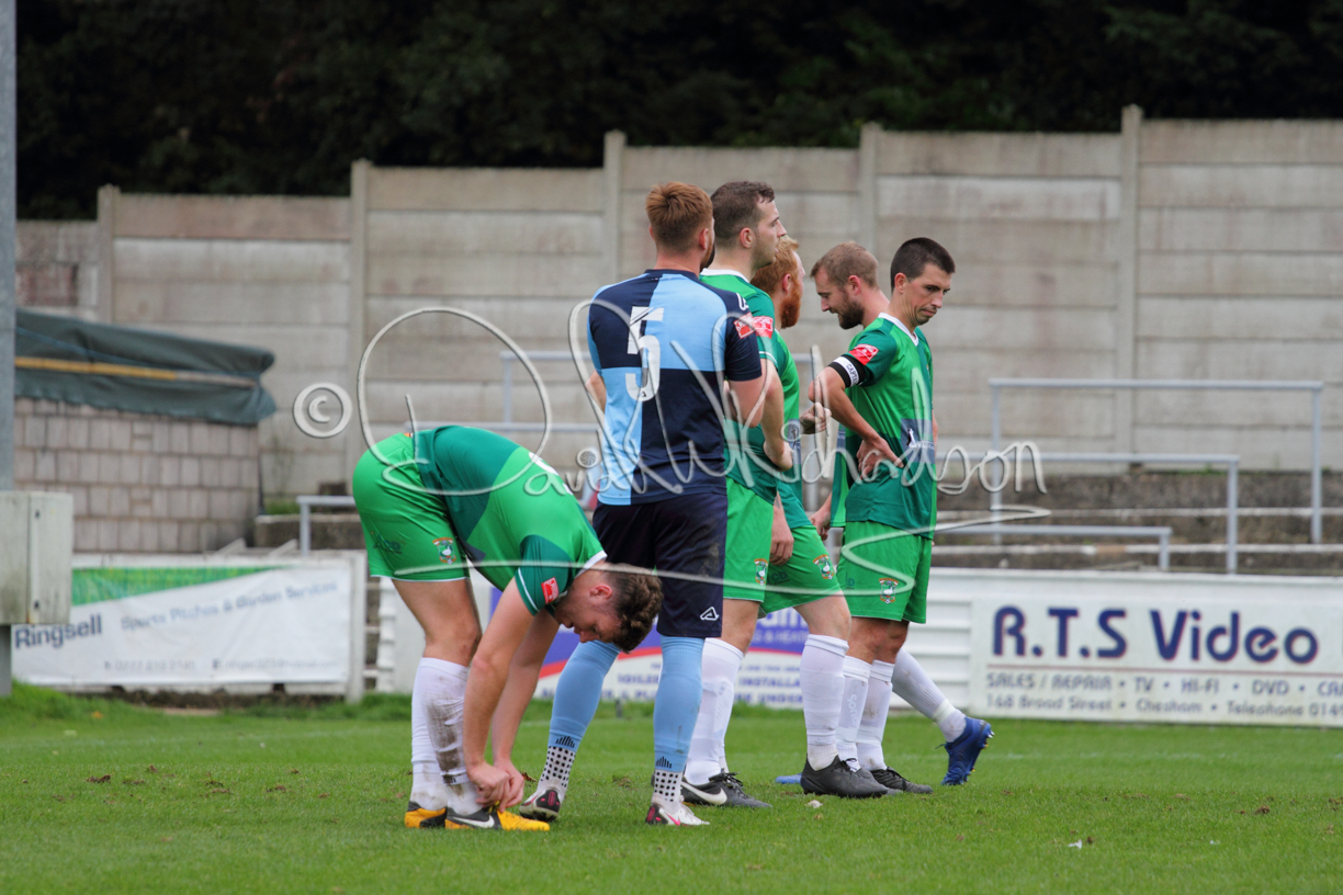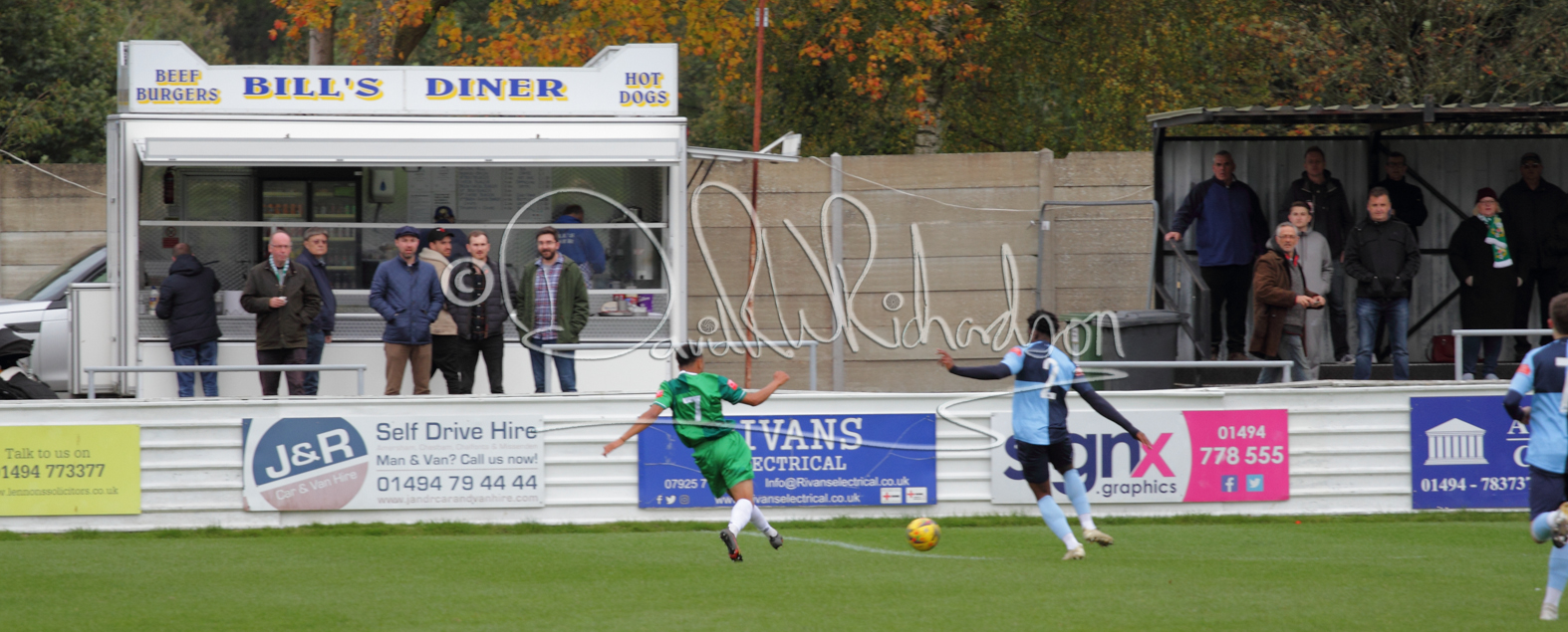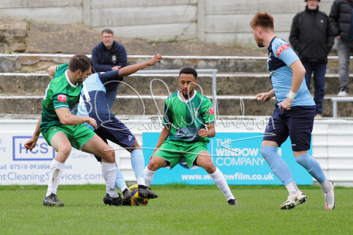 St Neots could not have had to recover from a worse start to a league match for after kicking off they lost the ball to their opponents and just 18 seconds after the first whistle they conceded the opening goal of the contest. Max Hercules received the ball on the left and drifted past his marker to cross for striker Ty Deacon who twisted his way past Mamadou Jobe to beat the keeper with a fine finish. St Neots look stunned and after Jordan Jenkins had gone close to second goal for the home side – a header from a Jake Bewley corner – the visitors lost midfielder Charley Barker after twelve minutes to injury with fit again Ben Heal replacing him. Chadwick then produced an excellent save from Ben Seaton following a corner and he was then relieved to see a cross-shot from Hercules rebound from the far post to be cleared. St Neots were not at their best in attack despite sharing possession with their finishing hopeful rather than accurate and Neo Richard-Noel set up by Heal had their best chance to level the scores, but home keeper Archie Davis saved well. Just past the half hour a bad mistake by Wynford Marfo let in Deacon but Chadwick saved well and then with the keeper off his line Seaton tried his luck with a 45 yards lob that was inches too high. The lively Kwai Marsh-Brown then shot over the bar but on the stroke of half time St Neots levelled as skipper Lee Watkins fired in a low shot from the edge of the penalty area for his second goal of the campaign. There was still time in added time for the home keeper to make an important near post save to keep out a clever Rider flick.