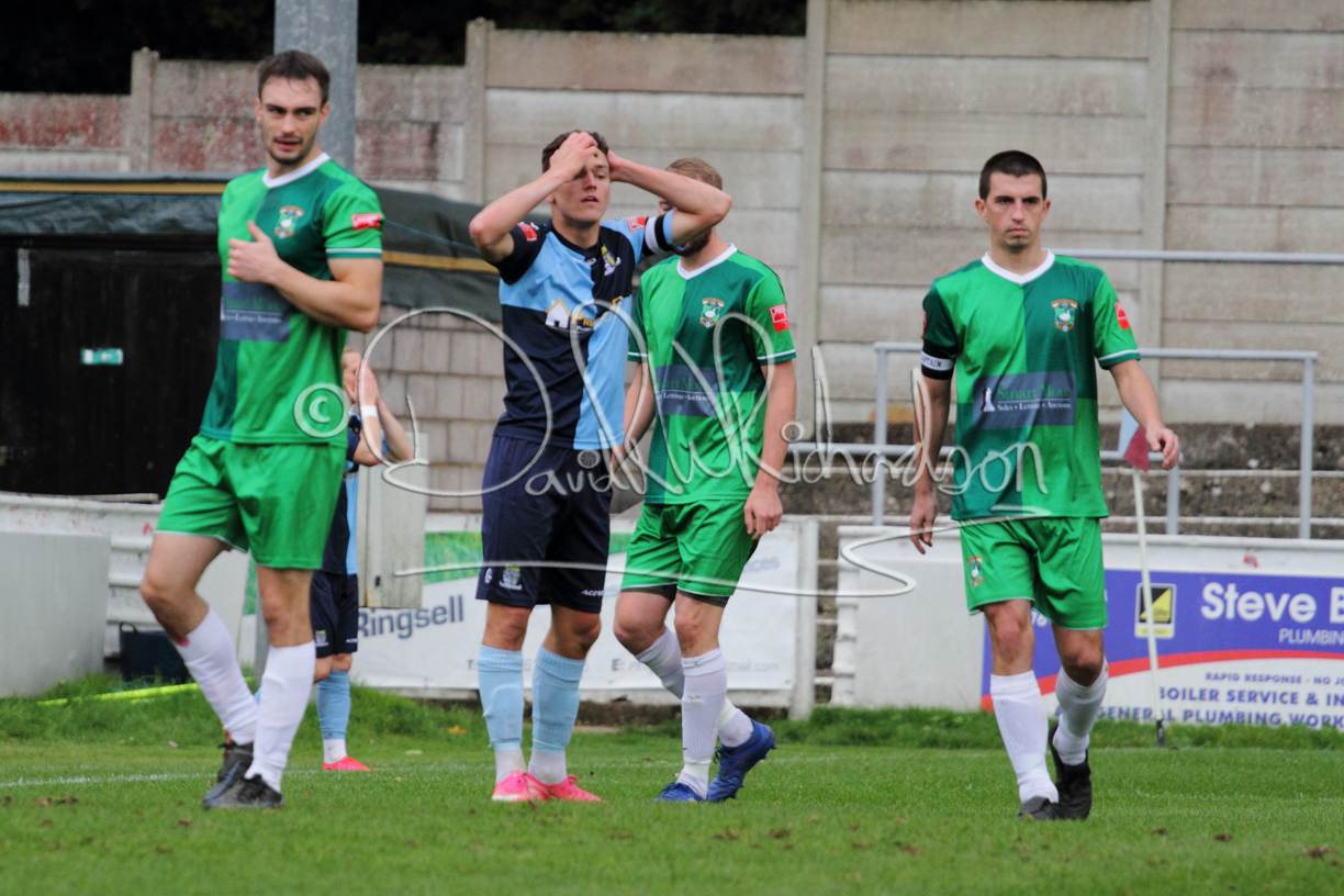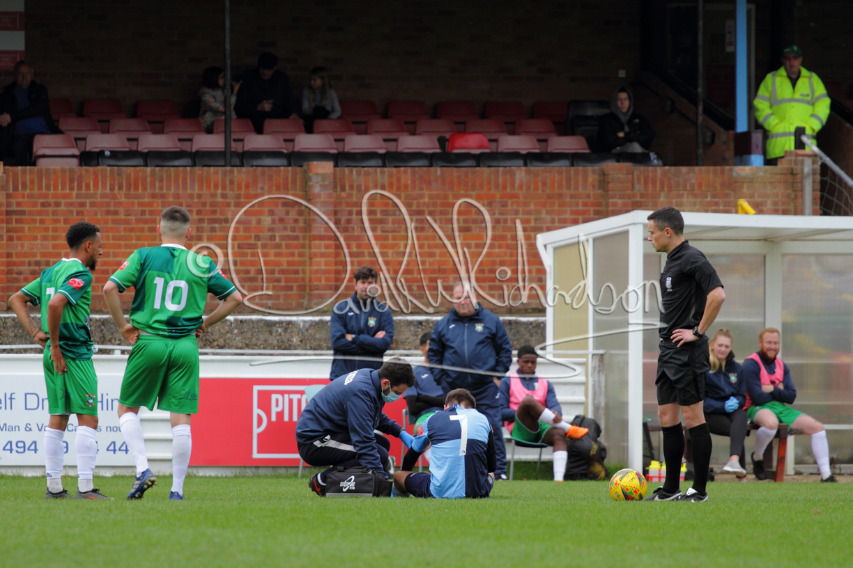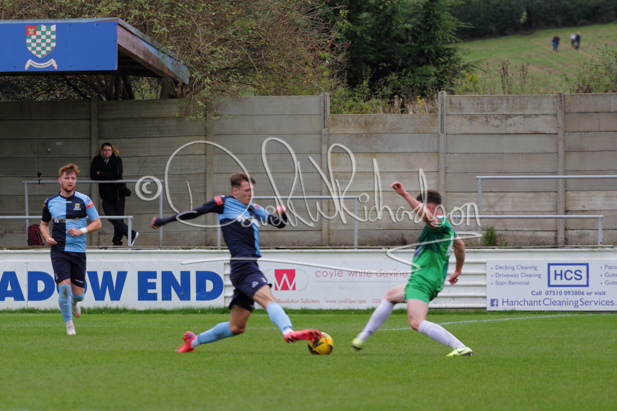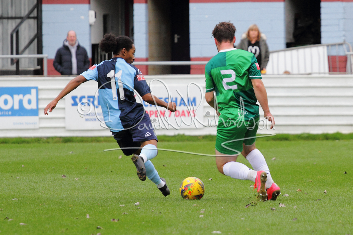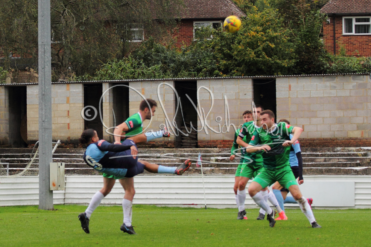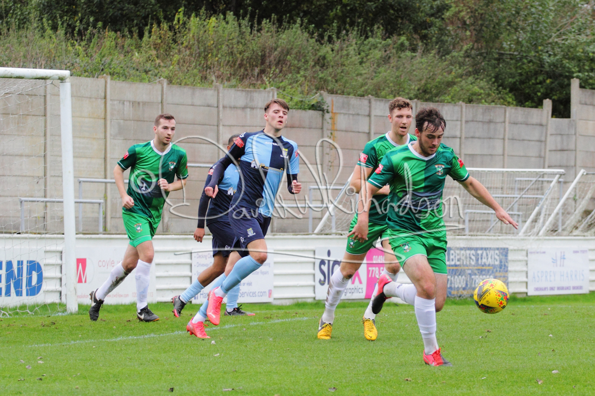 St Neots could not have had to recover from a worse start to a league match for after kicking off they lost the ball to their opponents and just 18 seconds after the first whistle they conceded the opening goal of the contest. Max Hercules received the ball on the left and drifted past his marker to cross for striker Ty Deacon who twisted his way past Mamadou Jobe to beat the keeper with a fine finish. St Neots look stunned and after Jordan Jenkins had gone close to second goal for the home side – a header from a Jake Bewley corner – the visitors lost midfielder Charley Barker after twelve minutes to injury with fit again Ben Heal replacing him. Chadwick then produced an excellent save from Ben Seaton following a corner and he was then relieved to see a cross-shot from Hercules rebound from the far post to be cleared. St Neots were not at their best in attack despite sharing possession with their finishing hopeful rather than accurate and Neo Richard-Noel set up by Heal had their best chance to level the scores, but home keeper Archie Davis saved well. Just past the half hour a bad mistake by Wynford Marfo let in Deacon but Chadwick saved well and then with the keeper off his line Seaton tried his luck with a 45 yards lob that was inches too high. The lively Kwai Marsh-Brown then shot over the bar but on the stroke of half time St Neots levelled as skipper Lee Watkins fired in a low shot from the edge of the penalty area for his second goal of the campaign. There was still time in added time for the home keeper to make an important near post save to keep out a clever Rider flick.
