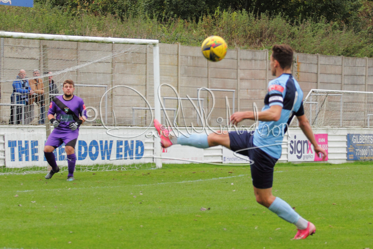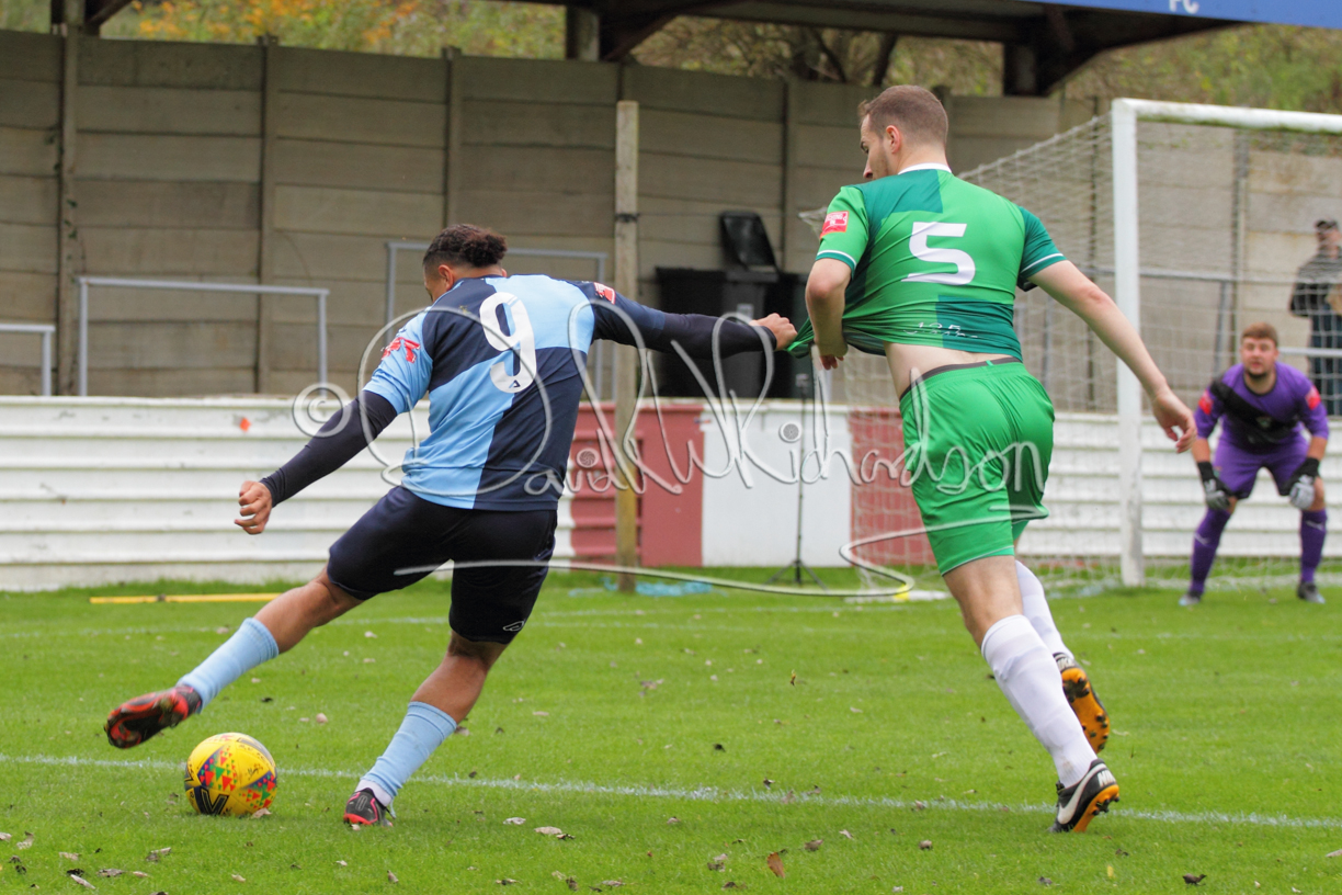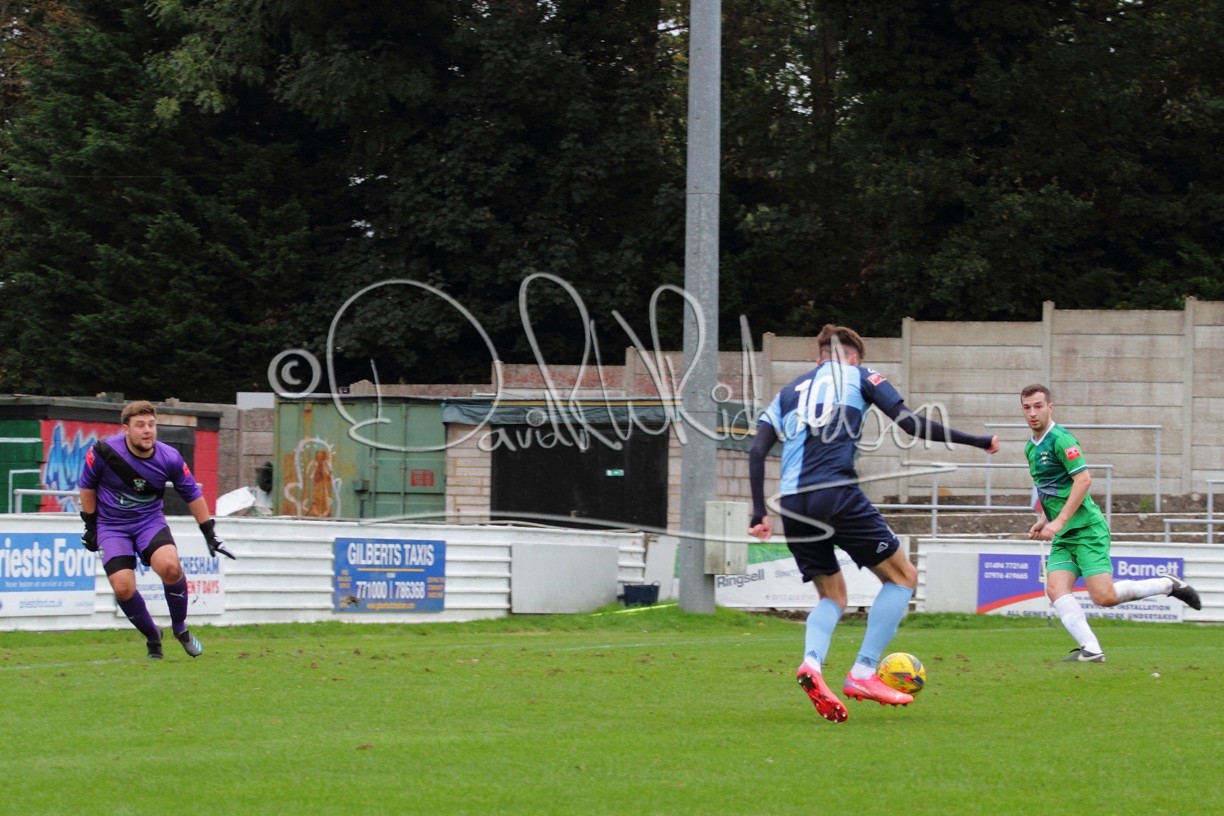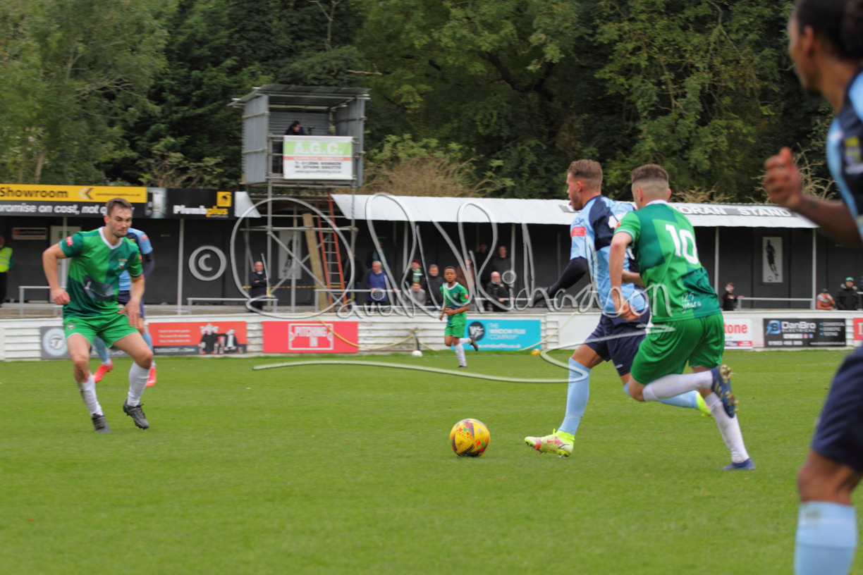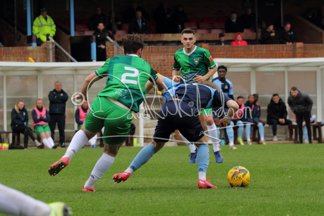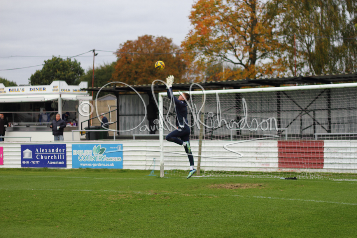 St Neots could not have had to recover from a worse start to a league match for after kicking off they lost the ball to their opponents and just 18 seconds after the first whistle they conceded the opening goal of the contest. Max Hercules received the ball on the left and drifted past his marker to cross for striker Ty Deacon who twisted his way past Mamadou Jobe to beat the keeper with a fine finish. St Neots look stunned and after Jordan Jenkins had gone close to second goal for the home side – a header from a Jake Bewley corner – the visitors lost midfielder Charley Barker after twelve minutes to injury with fit again Ben Heal replacing him. Chadwick then produced an excellent save from Ben Seaton following a corner and he was then relieved to see a cross-shot from Hercules rebound from the far post to be cleared. St Neots were not at their best in attack despite sharing possession with their finishing hopeful rather than accurate and Neo Richard-Noel set up by Heal had their best chance to level the scores, but home keeper Archie Davis saved well. Just past the half hour a bad mistake by Wynford Marfo let in Deacon but Chadwick saved well and then with the keeper off his line Seaton tried his luck with a 45 yards lob that was inches too high. The lively Kwai Marsh-Brown then shot over the bar but on the stroke of half time St Neots levelled as skipper Lee Watkins fired in a low shot from the edge of the penalty area for his second goal of the campaign. There was still time in added time for the home keeper to make an important near post save to keep out a clever Rider flick.