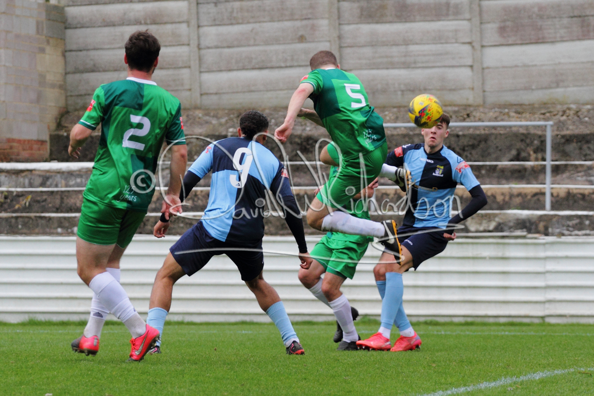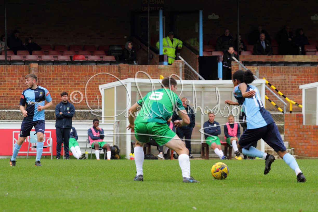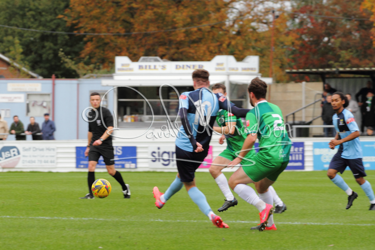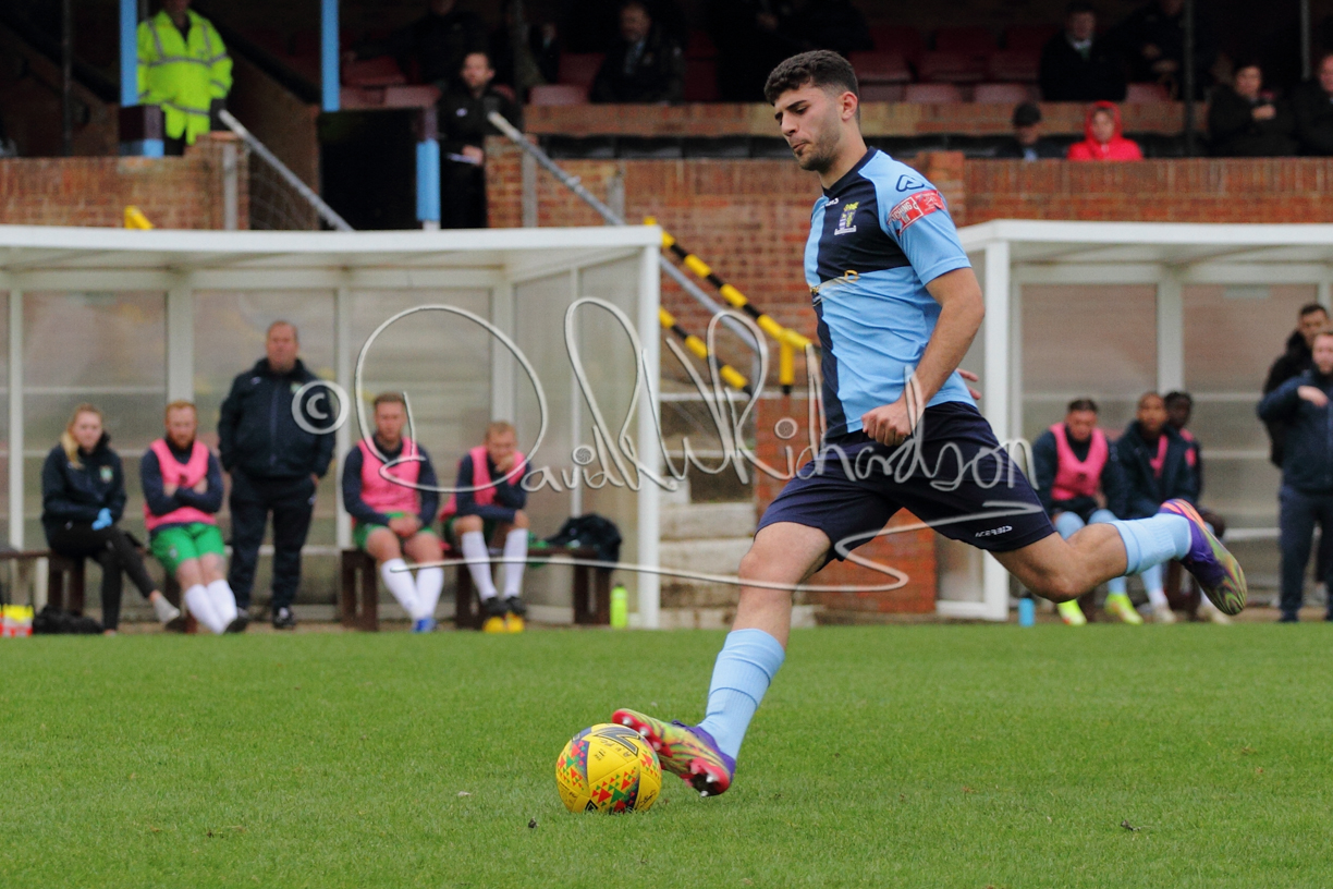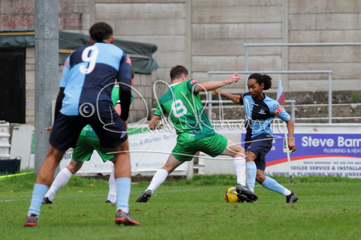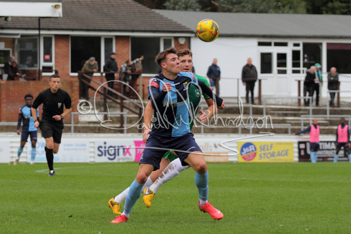 St Neots could not have had to recover from a worse start to a league match for after kicking off they lost the ball to their opponents and just 18 seconds after the first whistle they conceded the opening goal of the contest. Max Hercules received the ball on the left and drifted past his marker to cross for striker Ty Deacon who twisted his way past Mamadou Jobe to beat the keeper with a fine finish. St Neots look stunned and after Jordan Jenkins had gone close to second goal for the home side – a header from a Jake Bewley corner – the visitors lost midfielder Charley Barker after twelve minutes to injury with fit again Ben Heal replacing him. Chadwick then produced an excellent save from Ben Seaton following a corner and he was then relieved to see a cross-shot from Hercules rebound from the far post to be cleared. St Neots were not at their best in attack despite sharing possession with their finishing hopeful rather than accurate and Neo Richard-Noel set up by Heal had their best chance to level the scores, but home keeper Archie Davis saved well. Just past the half hour a bad mistake by Wynford Marfo let in Deacon but Chadwick saved well and then with the keeper off his line Seaton tried his luck with a 45 yards lob that was inches too high. The lively Kwai Marsh-Brown then shot over the bar but on the stroke of half time St Neots levelled as skipper Lee Watkins fired in a low shot from the edge of the penalty area for his second goal of the campaign. There was still time in added time for the home keeper to make an important near post save to keep out a clever Rider flick.