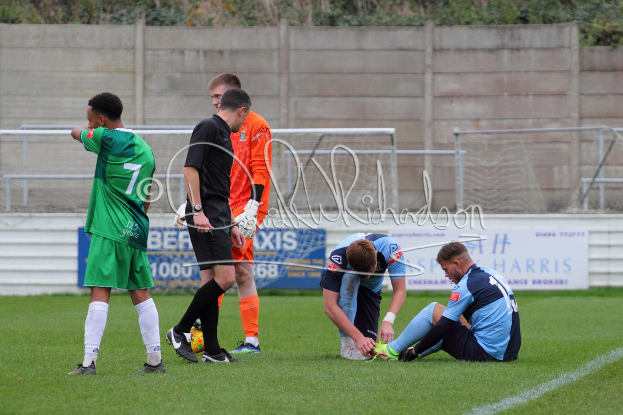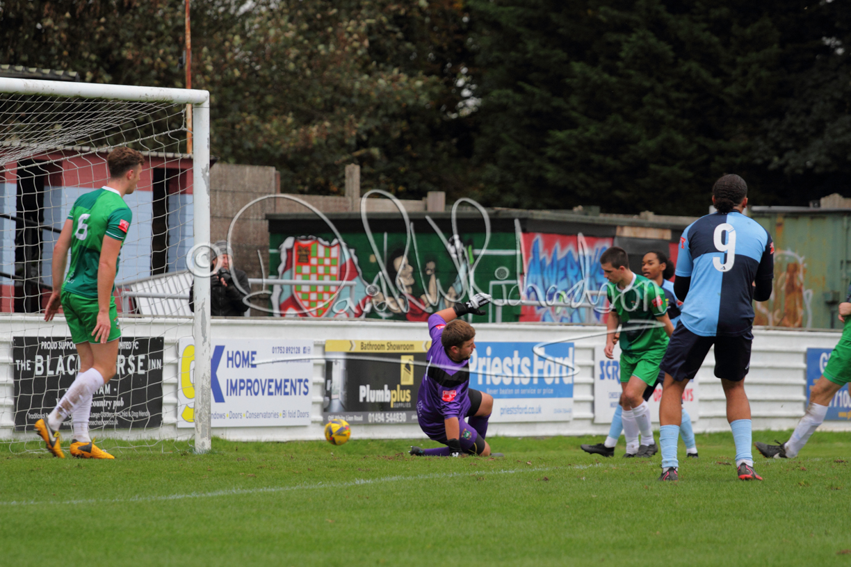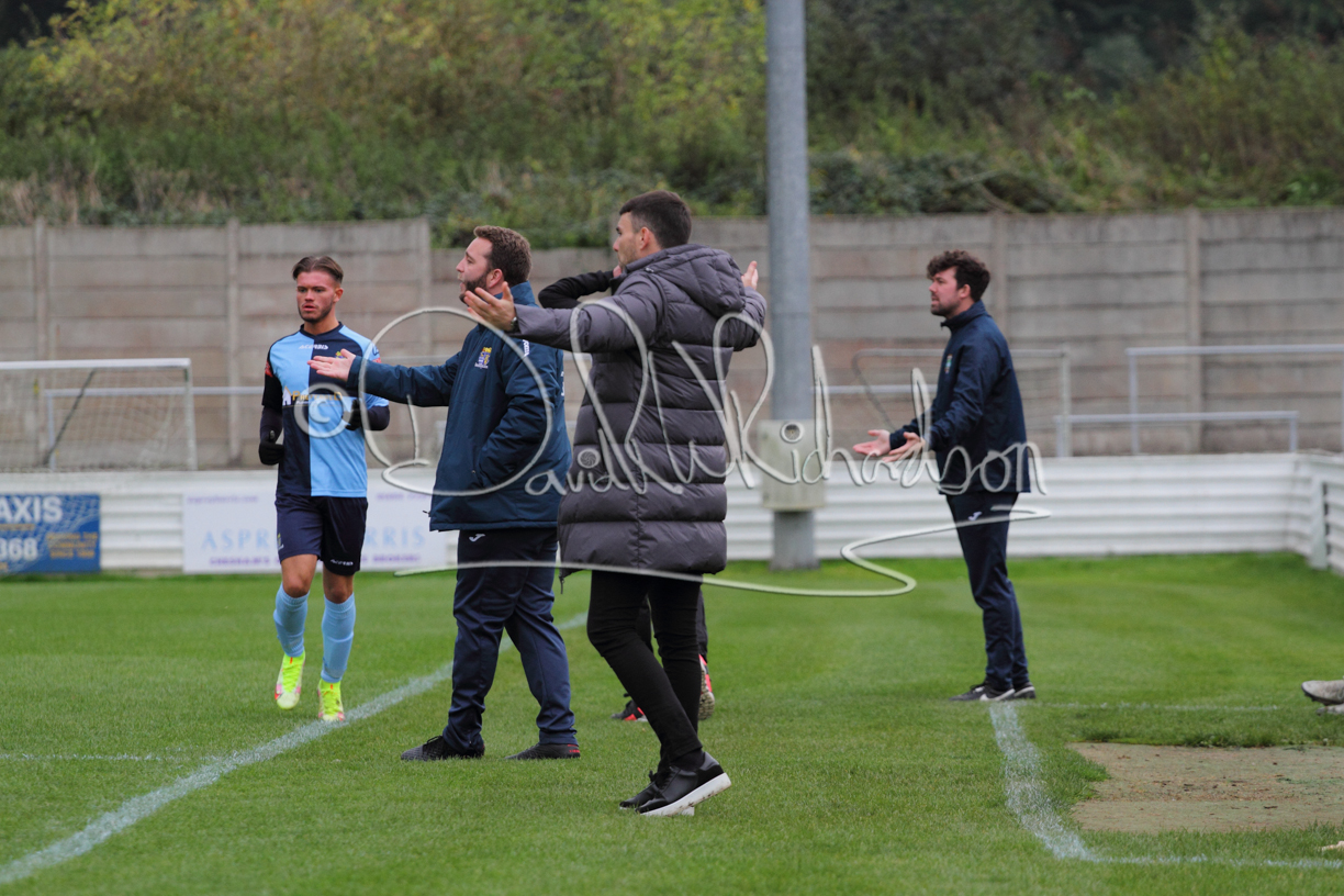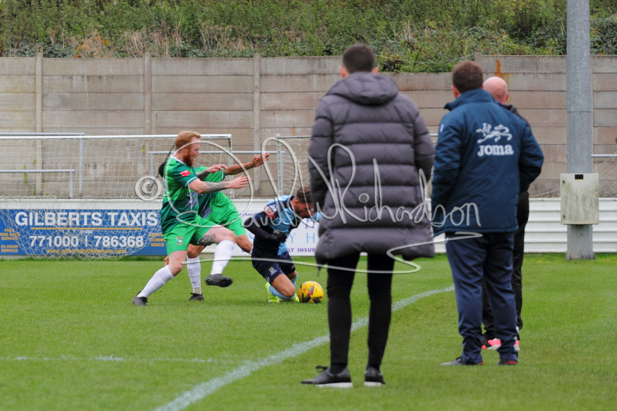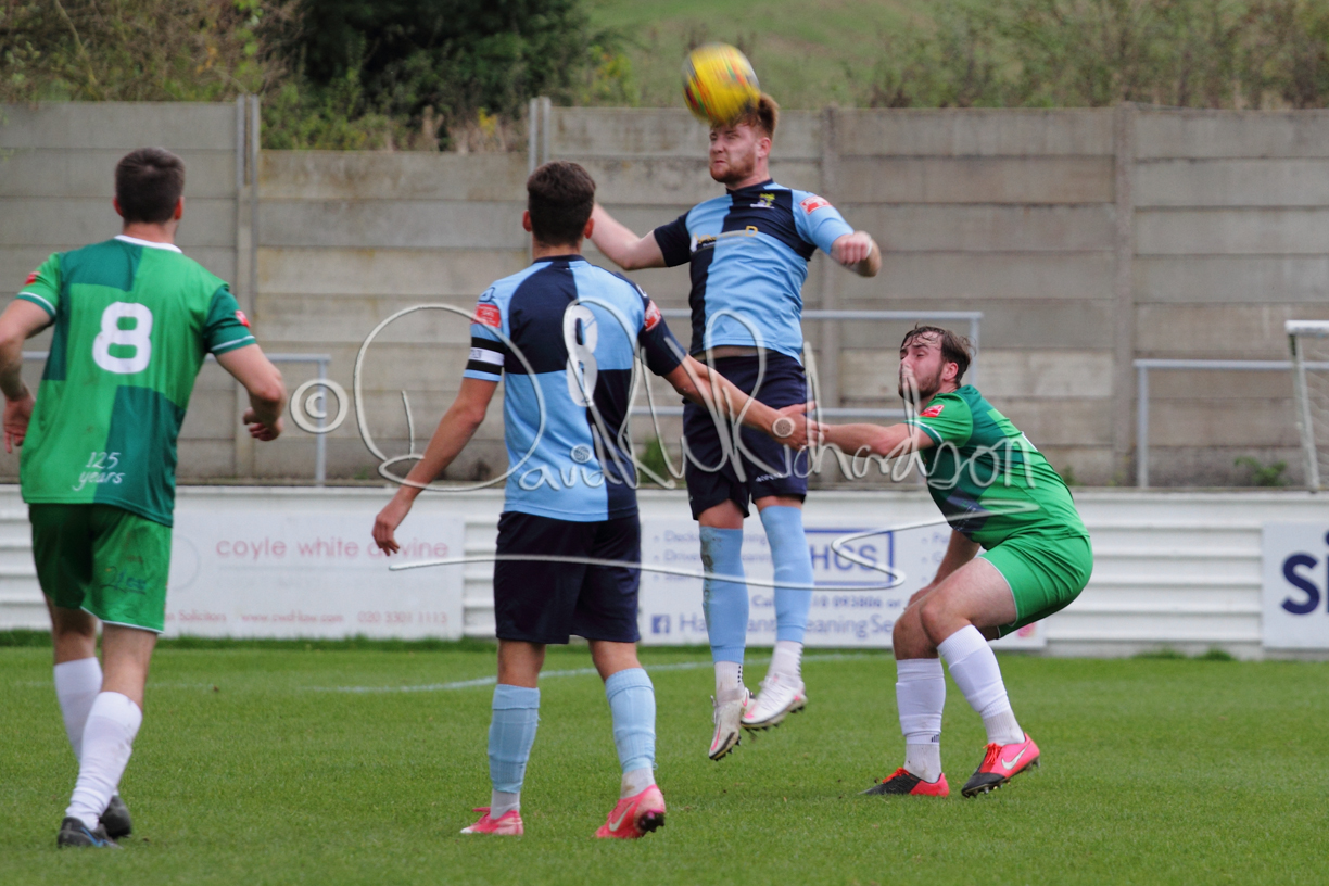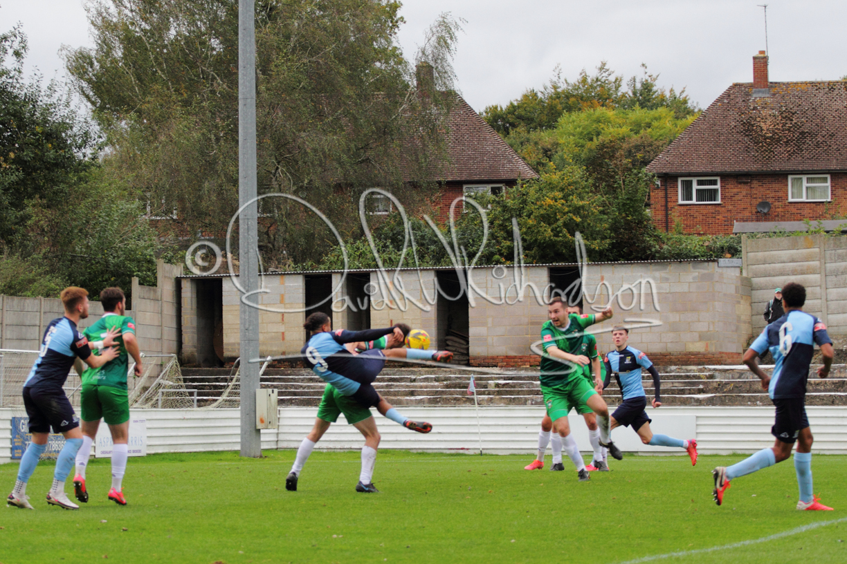 St Neots could not have had to recover from a worse start to a league match for after kicking off they lost the ball to their opponents and just 18 seconds after the first whistle they conceded the opening goal of the contest. Max Hercules received the ball on the left and drifted past his marker to cross for striker Ty Deacon who twisted his way past Mamadou Jobe to beat the keeper with a fine finish. St Neots look stunned and after Jordan Jenkins had gone close to second goal for the home side – a header from a Jake Bewley corner – the visitors lost midfielder Charley Barker after twelve minutes to injury with fit again Ben Heal replacing him. Chadwick then produced an excellent save from Ben Seaton following a corner and he was then relieved to see a cross-shot from Hercules rebound from the far post to be cleared. St Neots were not at their best in attack despite sharing possession with their finishing hopeful rather than accurate and Neo Richard-Noel set up by Heal had their best chance to level the scores, but home keeper Archie Davis saved well. Just past the half hour a bad mistake by Wynford Marfo let in Deacon but Chadwick saved well and then with the keeper off his line Seaton tried his luck with a 45 yards lob that was inches too high. The lively Kwai Marsh-Brown then shot over the bar but on the stroke of half time St Neots levelled as skipper Lee Watkins fired in a low shot from the edge of the penalty area for his second goal of the campaign. There was still time in added time for the home keeper to make an important near post save to keep out a clever Rider flick.