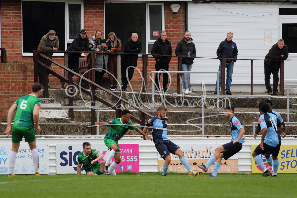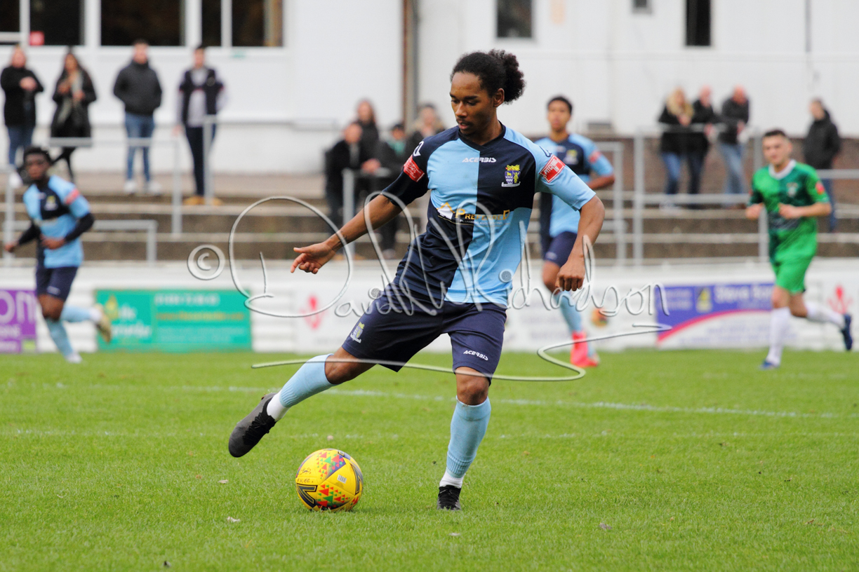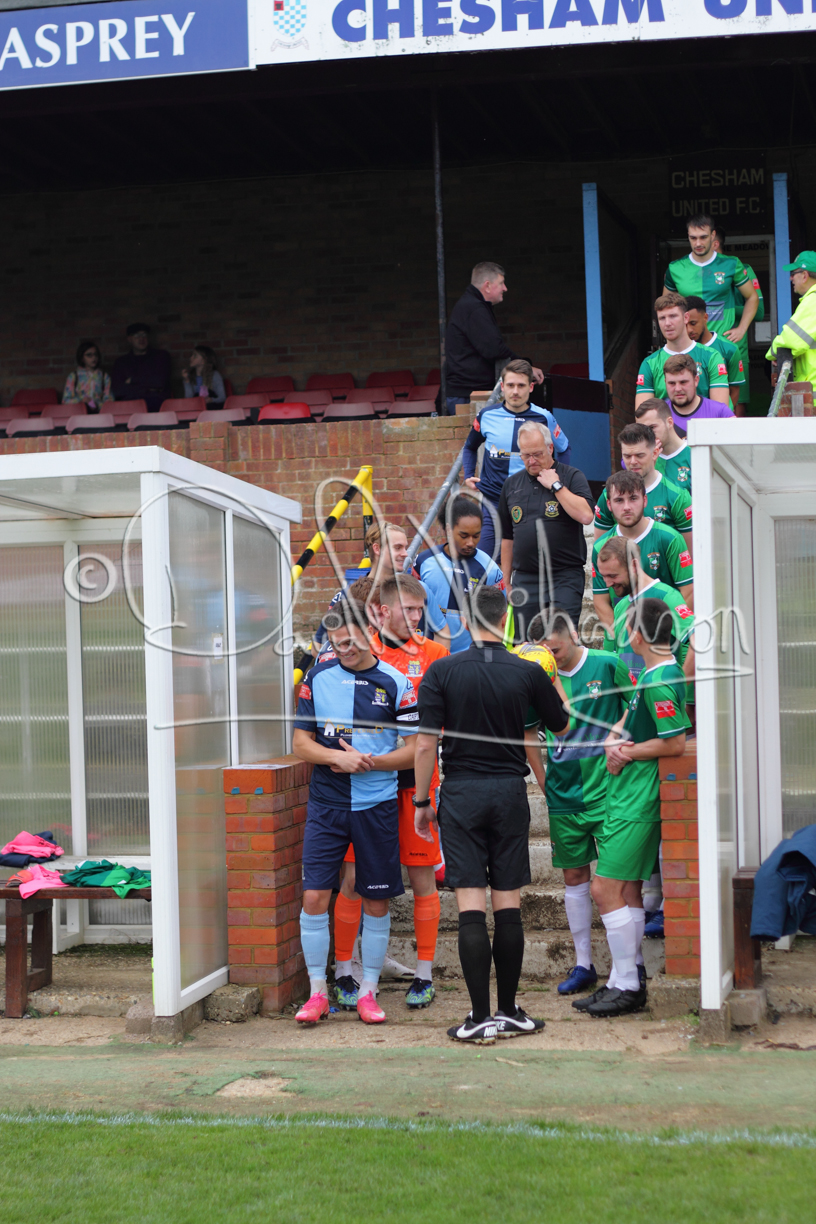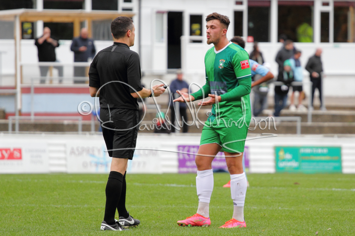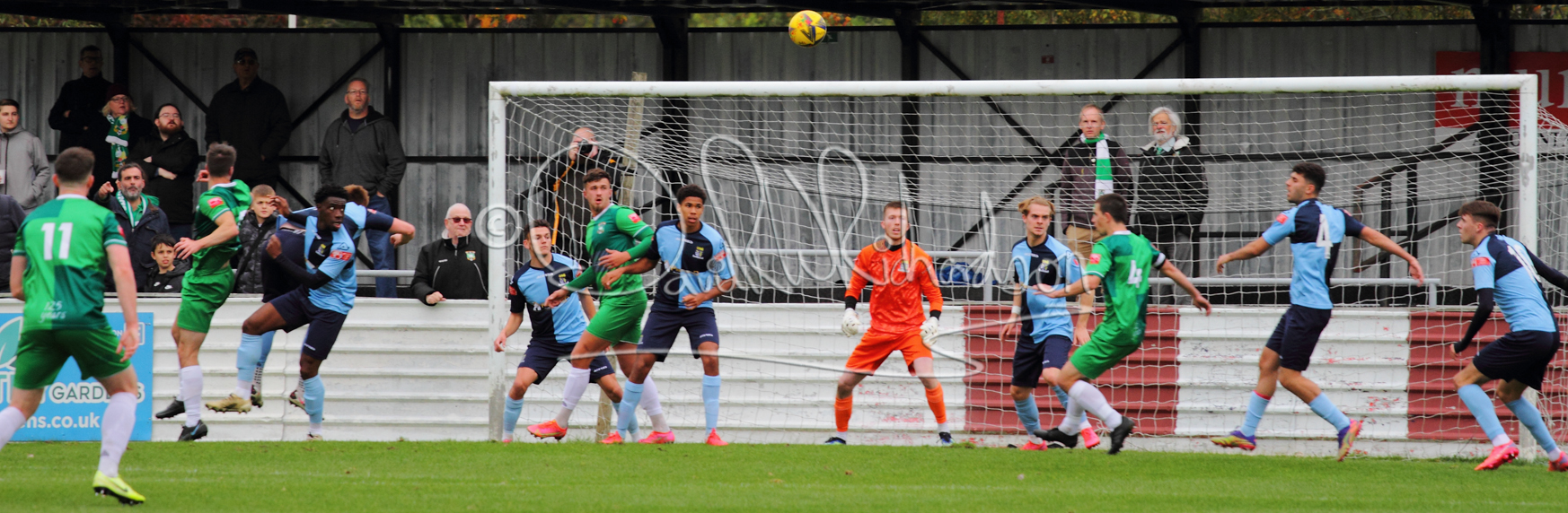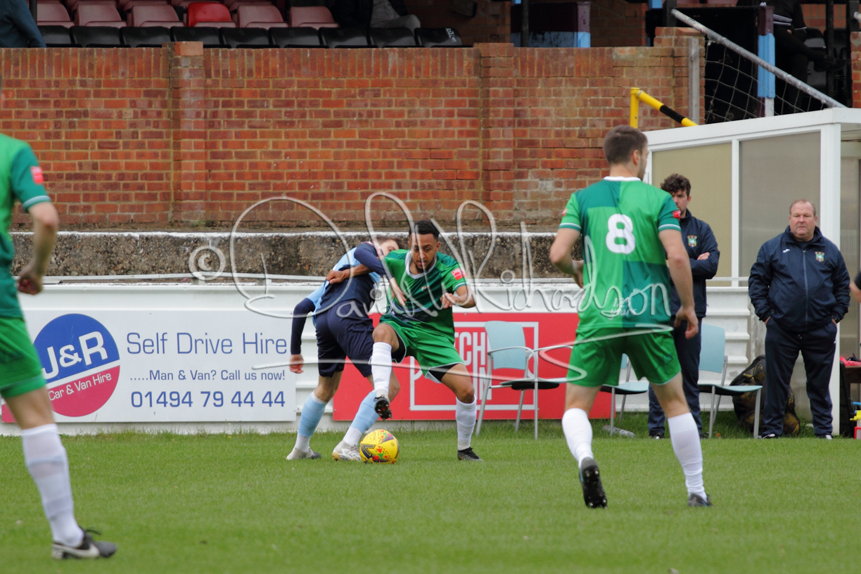 St Neots could not have had to recover from a worse start to a league match for after kicking off they lost the ball to their opponents and just 18 seconds after the first whistle they conceded the opening goal of the contest. Max Hercules received the ball on the left and drifted past his marker to cross for striker Ty Deacon who twisted his way past Mamadou Jobe to beat the keeper with a fine finish. St Neots look stunned and after Jordan Jenkins had gone close to second goal for the home side – a header from a Jake Bewley corner – the visitors lost midfielder Charley Barker after twelve minutes to injury with fit again Ben Heal replacing him. Chadwick then produced an excellent save from Ben Seaton following a corner and he was then relieved to see a cross-shot from Hercules rebound from the far post to be cleared. St Neots were not at their best in attack despite sharing possession with their finishing hopeful rather than accurate and Neo Richard-Noel set up by Heal had their best chance to level the scores, but home keeper Archie Davis saved well. Just past the half hour a bad mistake by Wynford Marfo let in Deacon but Chadwick saved well and then with the keeper off his line Seaton tried his luck with a 45 yards lob that was inches too high. The lively Kwai Marsh-Brown then shot over the bar but on the stroke of half time St Neots levelled as skipper Lee Watkins fired in a low shot from the edge of the penalty area for his second goal of the campaign. There was still time in added time for the home keeper to make an important near post save to keep out a clever Rider flick.