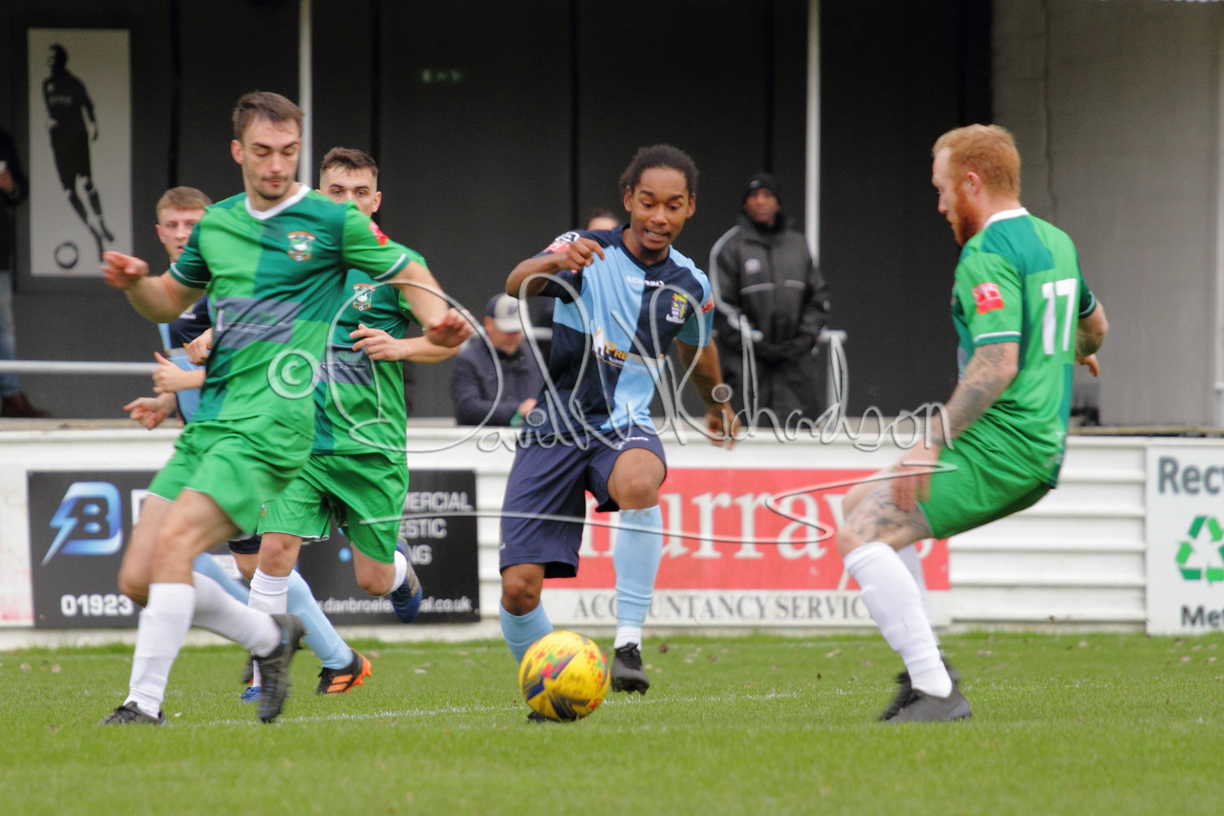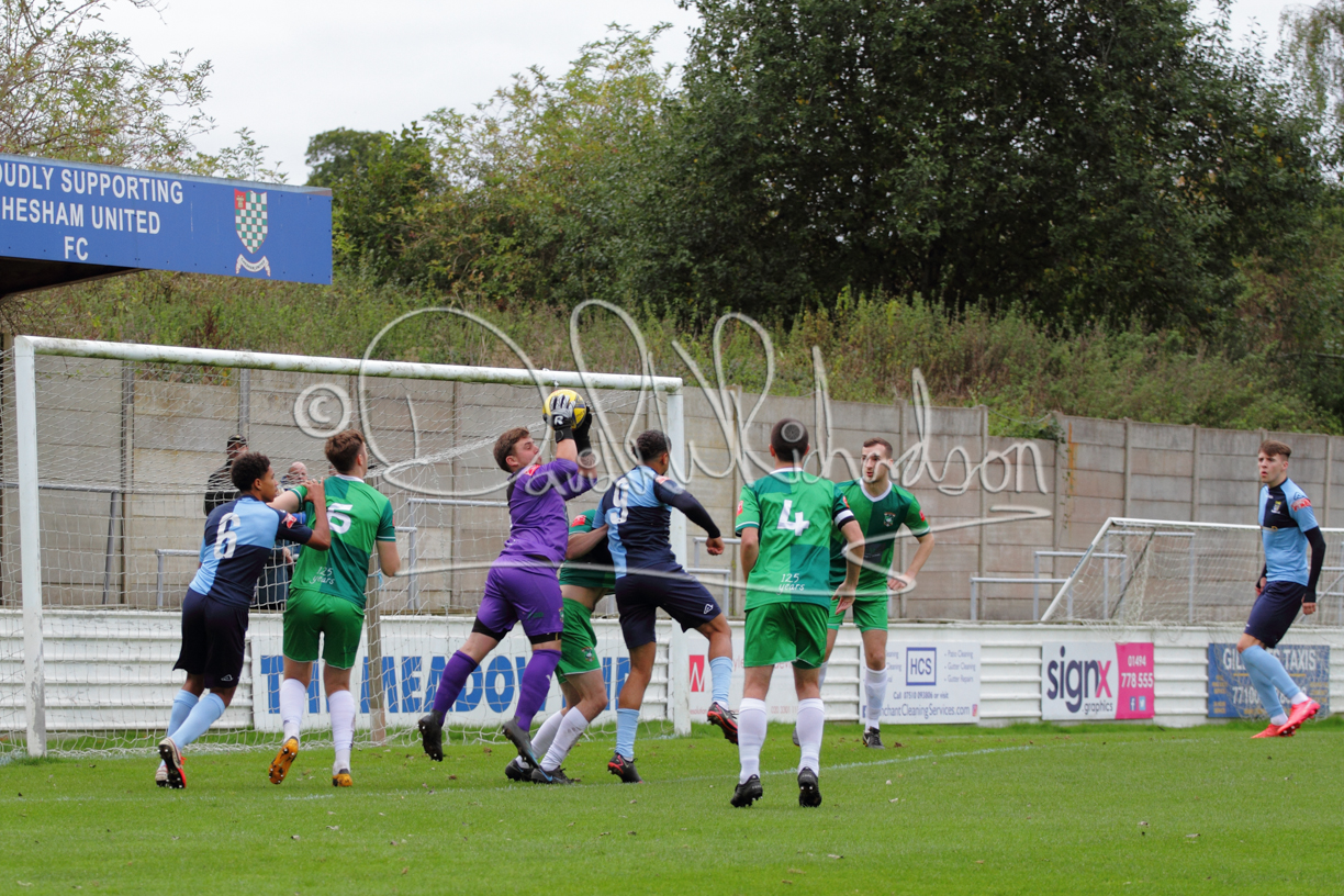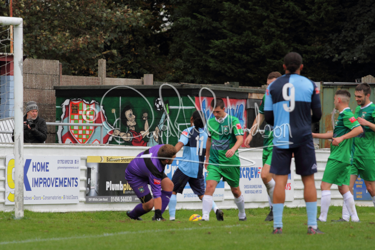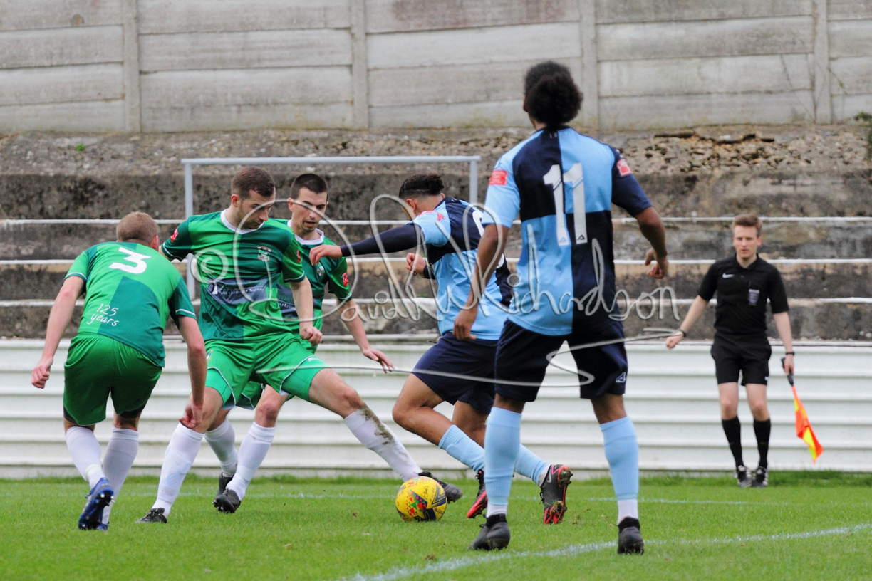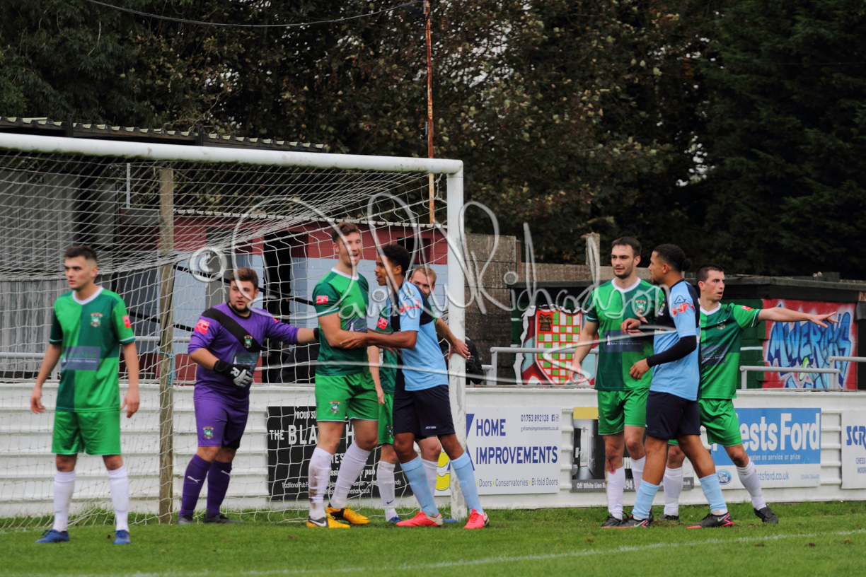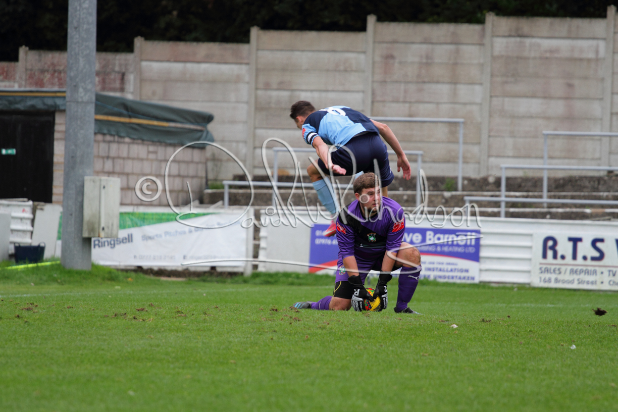 St Neots could not have had to recover from a worse start to a league match for after kicking off they lost the ball to their opponents and just 18 seconds after the first whistle they conceded the opening goal of the contest. Max Hercules received the ball on the left and drifted past his marker to cross for striker Ty Deacon who twisted his way past Mamadou Jobe to beat the keeper with a fine finish. St Neots look stunned and after Jordan Jenkins had gone close to second goal for the home side – a header from a Jake Bewley corner – the visitors lost midfielder Charley Barker after twelve minutes to injury with fit again Ben Heal replacing him. Chadwick then produced an excellent save from Ben Seaton following a corner and he was then relieved to see a cross-shot from Hercules rebound from the far post to be cleared. St Neots were not at their best in attack despite sharing possession with their finishing hopeful rather than accurate and Neo Richard-Noel set up by Heal had their best chance to level the scores, but home keeper Archie Davis saved well. Just past the half hour a bad mistake by Wynford Marfo let in Deacon but Chadwick saved well and then with the keeper off his line Seaton tried his luck with a 45 yards lob that was inches too high. The lively Kwai Marsh-Brown then shot over the bar but on the stroke of half time St Neots levelled as skipper Lee Watkins fired in a low shot from the edge of the penalty area for his second goal of the campaign. There was still time in added time for the home keeper to make an important near post save to keep out a clever Rider flick.