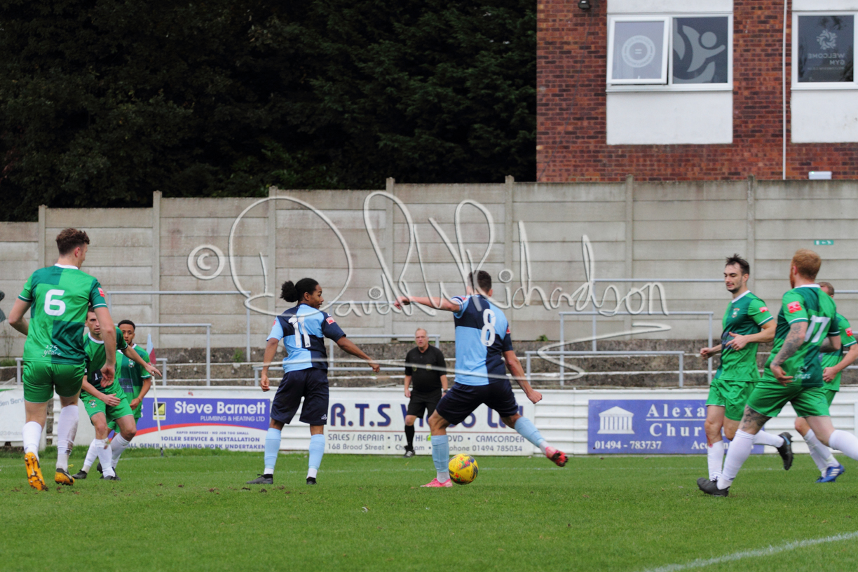 Jake Battersby replaced Marfo after the break and St Neots looked more positive with Watkins seeing an effort deflected over the bar. However in their first real attack of the second half after 55 minutes home substitute Ollie Hogg set up Harry Jones who brought an outstanding save from the visiting keeper. St Neots had by now regained some of their poise and confidence and Richard- Noel shot just over and clever footwork by Rider afforded him a chance but his effort was cleared off the line by David O’Connor with his keeper beaten. There was one anxious moment for the visitors when Jobe was dispossessed to leave Hogg clear, but his finish was poor and then after 76 minutes St Neots crafted the winning goal as Heal weaved past three defenders to set up Joe Rider, whose finish was lethal. The home keeper then saved further efforts from Richard-Noel and Rider and Aylesbury’s final attack saw a Jack Wood header comfortably saved by Chadwick – the result lifting St Neots back up to fourth in the league