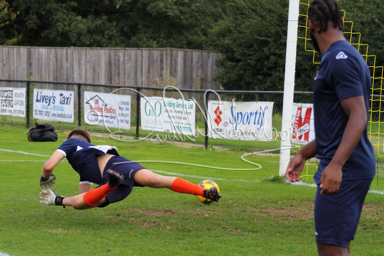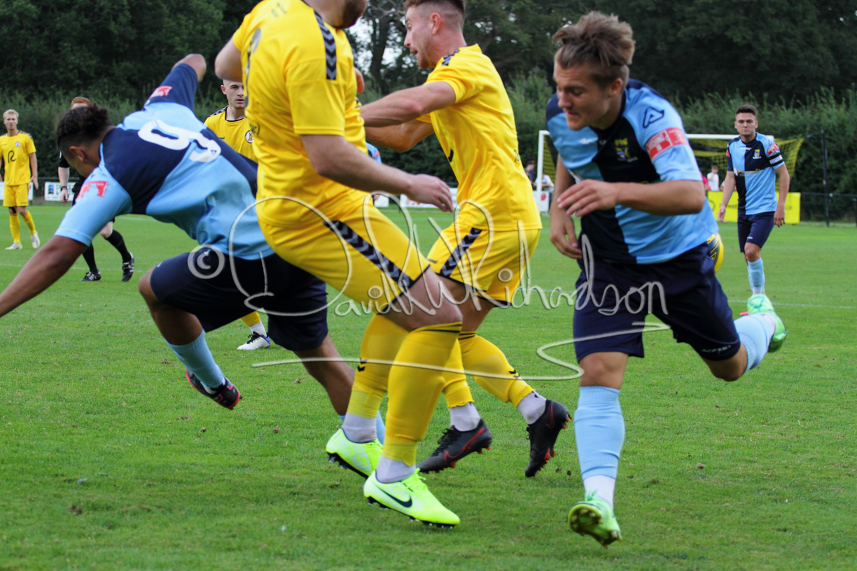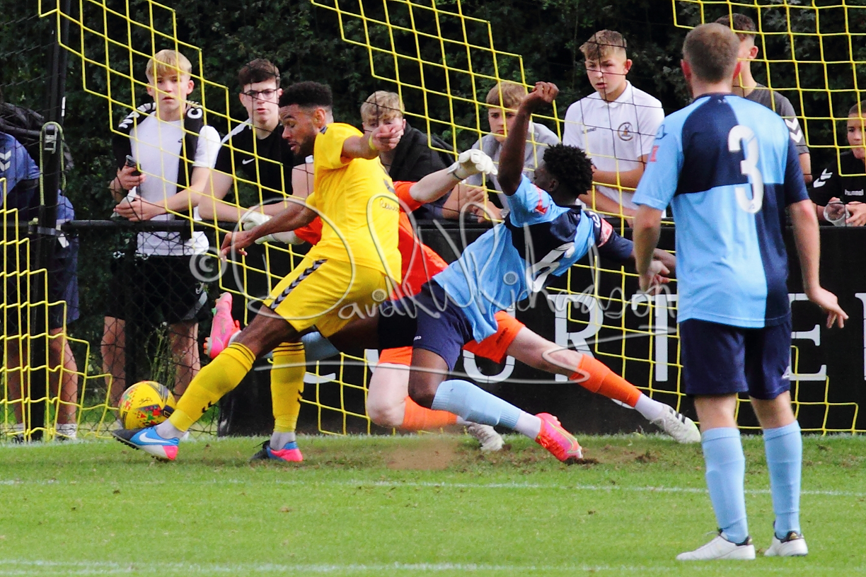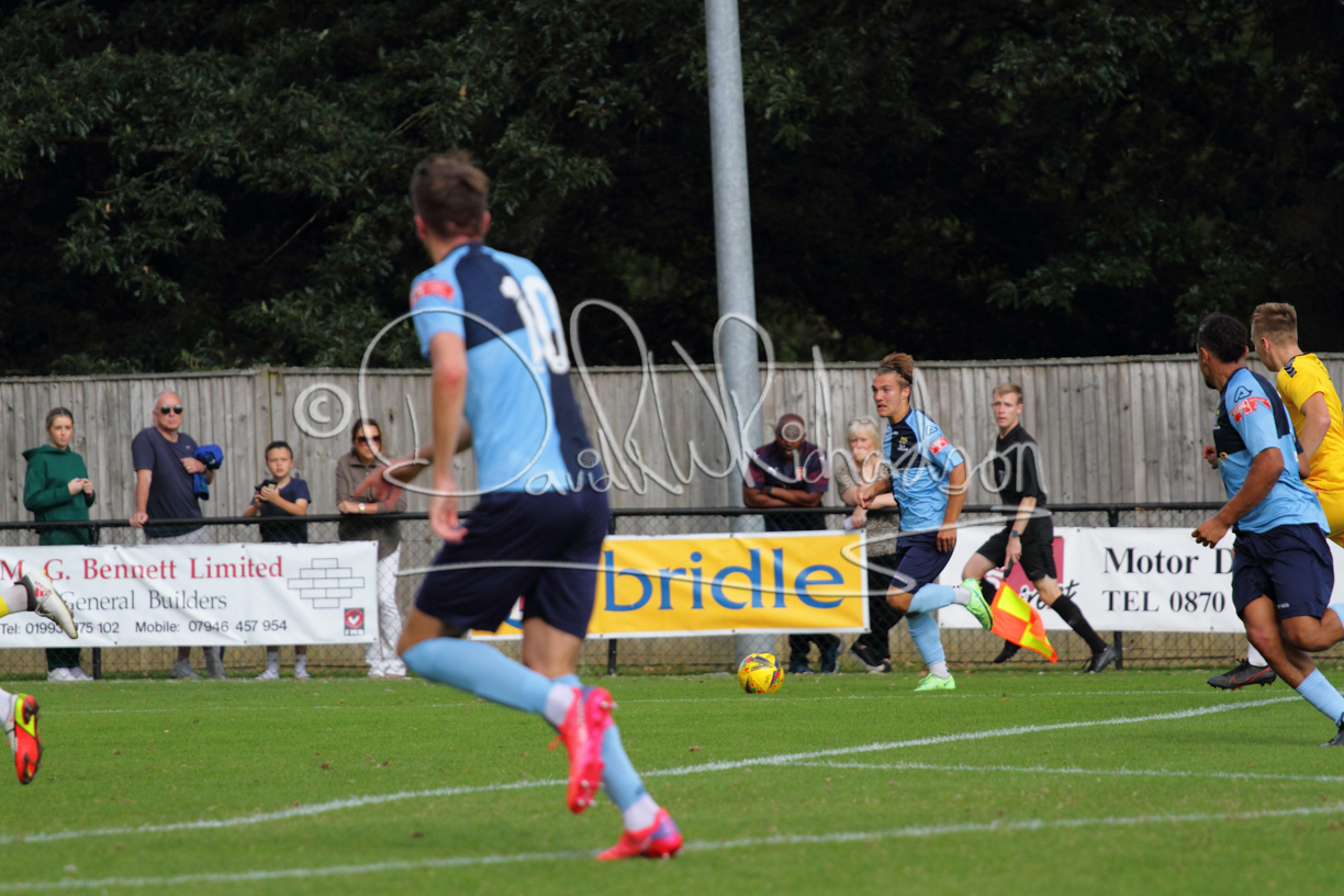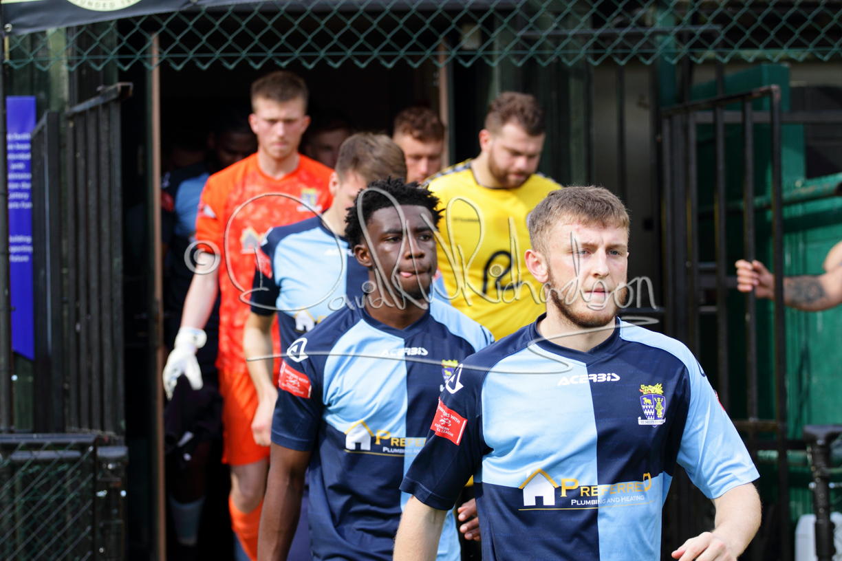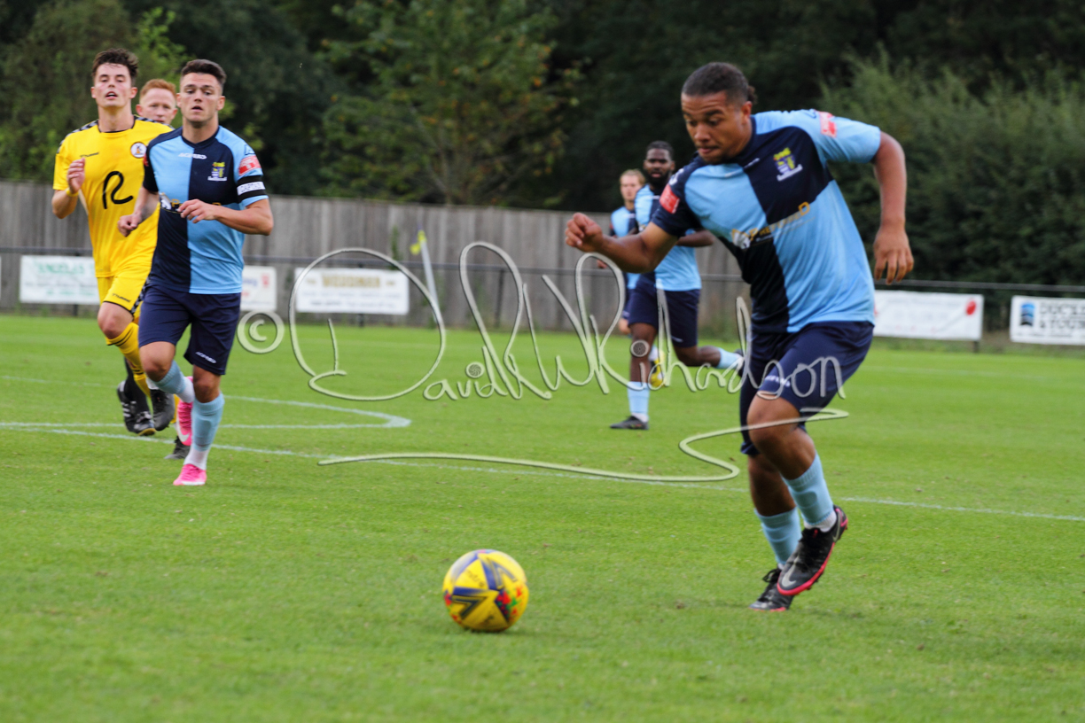 Although the action was stop/start with the over fussy official booking four players in the first 26 minutes – two from each side – with only one of those cautions looking warranted, when Ben Heal was brough down by Roger James. The action that was worthy of mention was Neo Richard-Noel weaving his way past two defenders, but Adam North saved well, and a second effort by the same visiting player also saved. As early as the 19th minute Erin Amu suffered an injury which saw Joe Sutton back in action and the home side only twice seriously threatened the St Neots goal late in the half when following a free kick, a close range shot from Lance Williams was bravely blocked by Chadwick and a second effort – the best chance of the first half – coming from a Roger James cross that found the head of Williams, but to St Neots’ relief he headed wide when scoring looked easier.