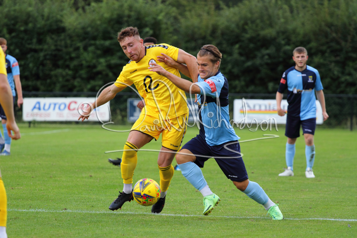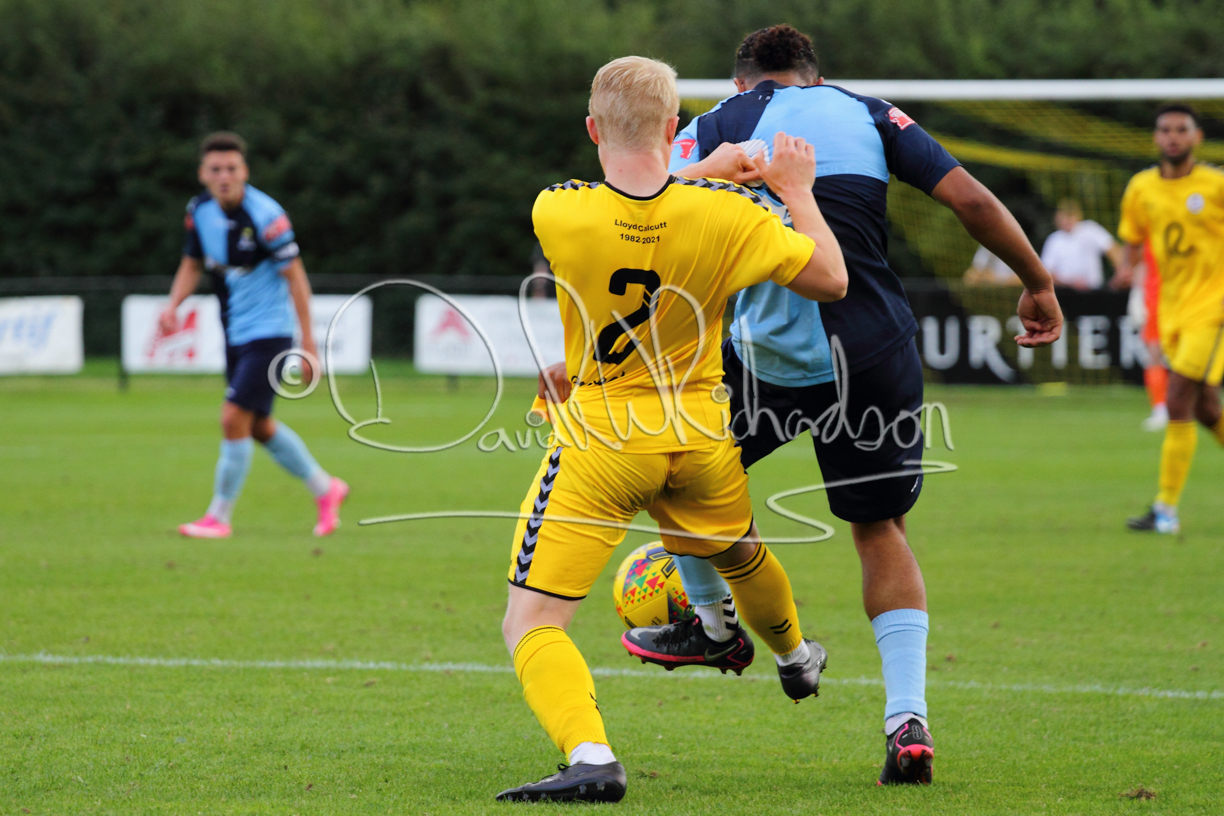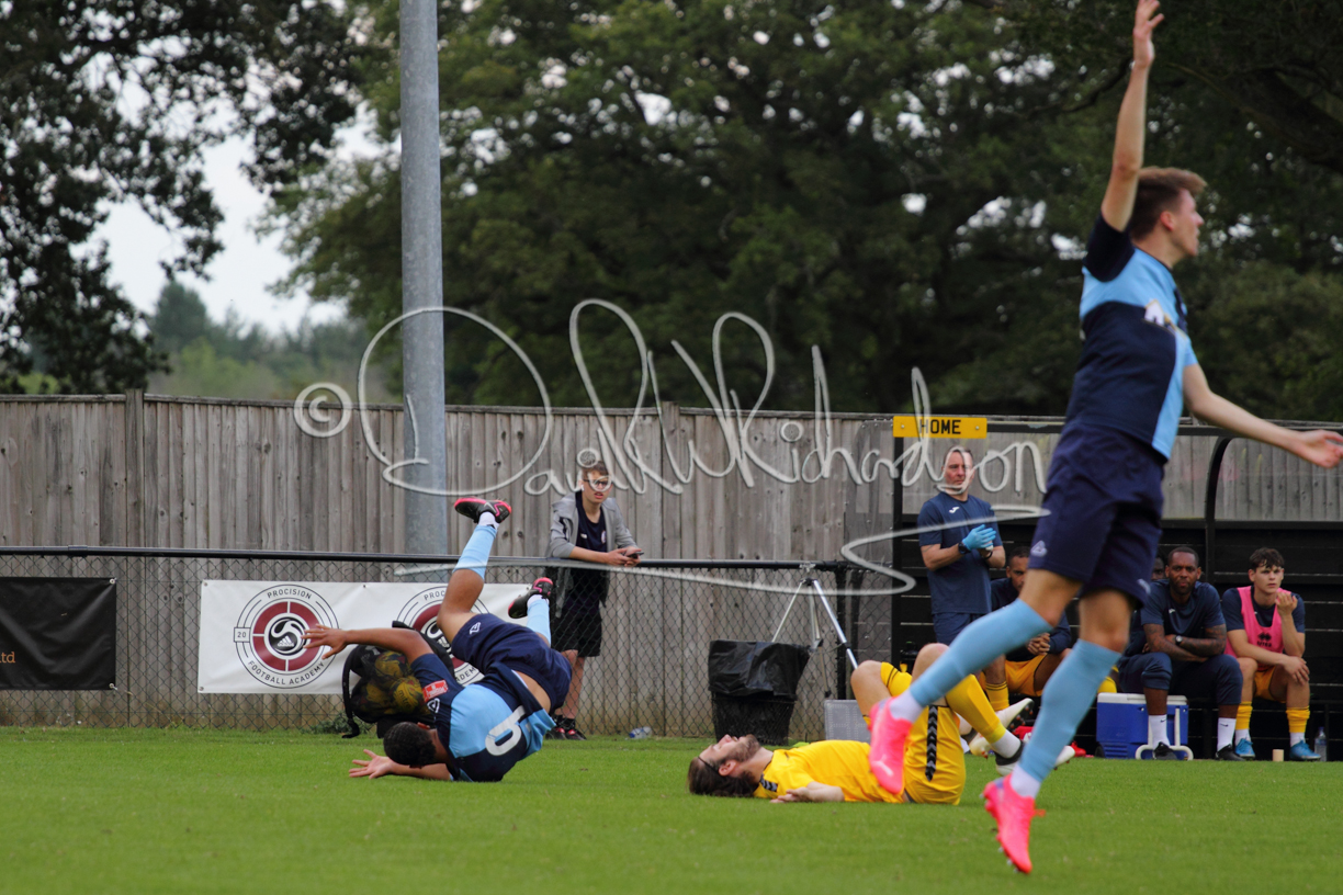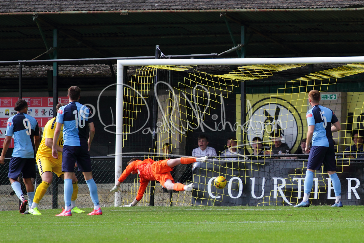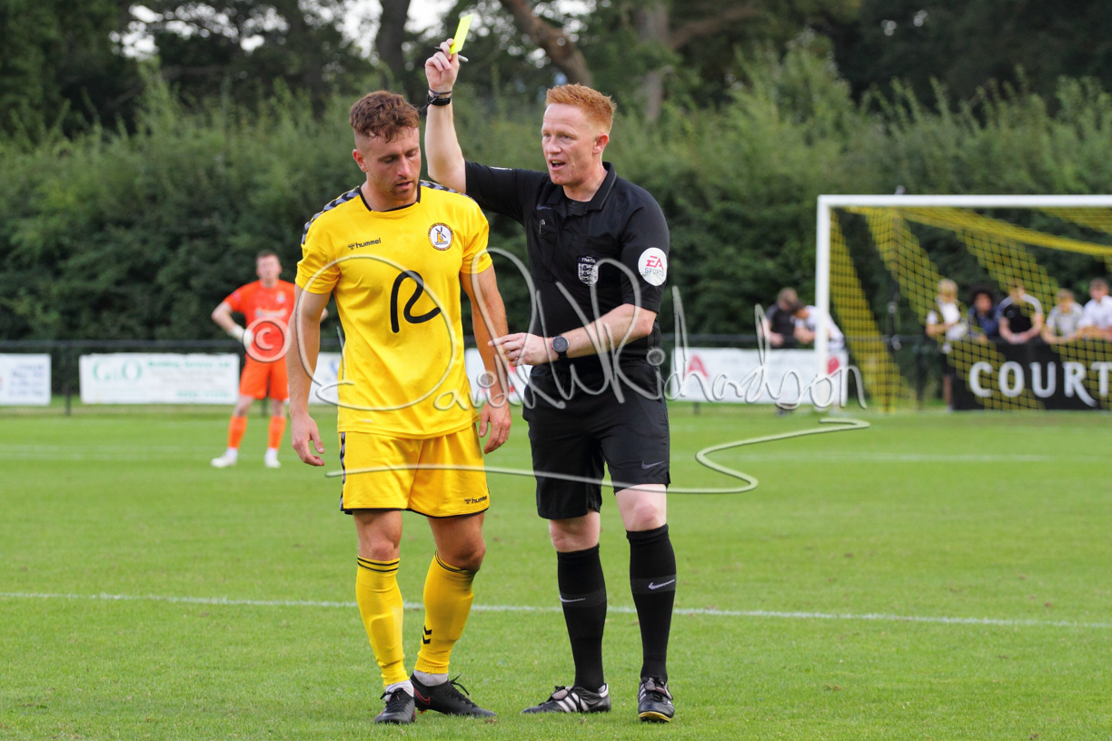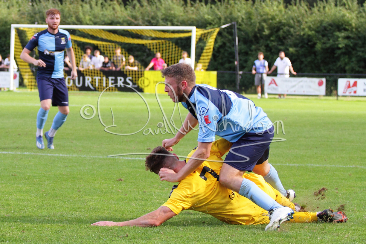 Although the action was stop/start with the over fussy official booking four players in the first 26 minutes – two from each side – with only one of those cautions looking warranted, when Ben Heal was brough down by Roger James. The action that was worthy of mention was Neo Richard-Noel weaving his way past two defenders, but Adam North saved well, and a second effort by the same visiting player also saved. As early as the 19th minute Erin Amu suffered an injury which saw Joe Sutton back in action and the home side only twice seriously threatened the St Neots goal late in the half when following a free kick, a close range shot from Lance Williams was bravely blocked by Chadwick and a second effort – the best chance of the first half – coming from a Roger James cross that found the head of Williams, but to St Neots’ relief he headed wide when scoring looked easier.