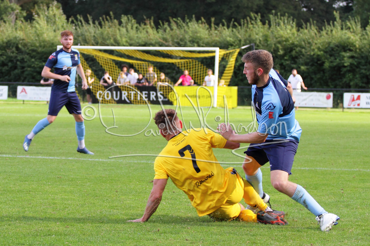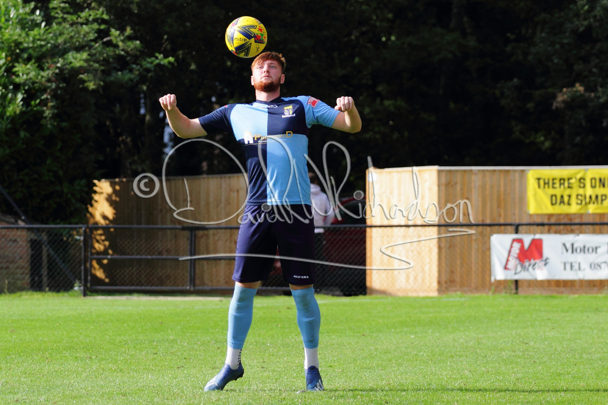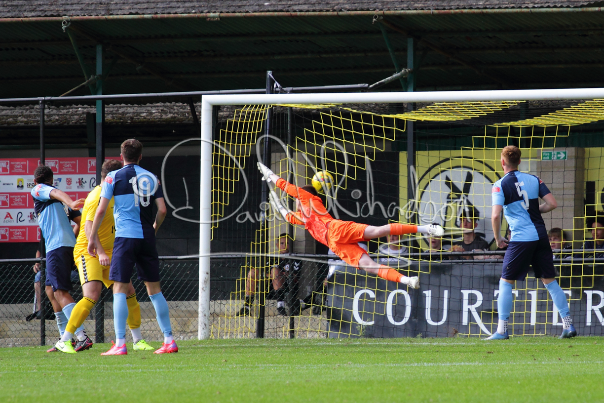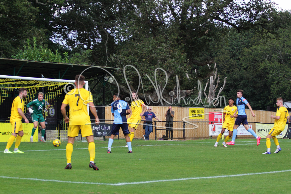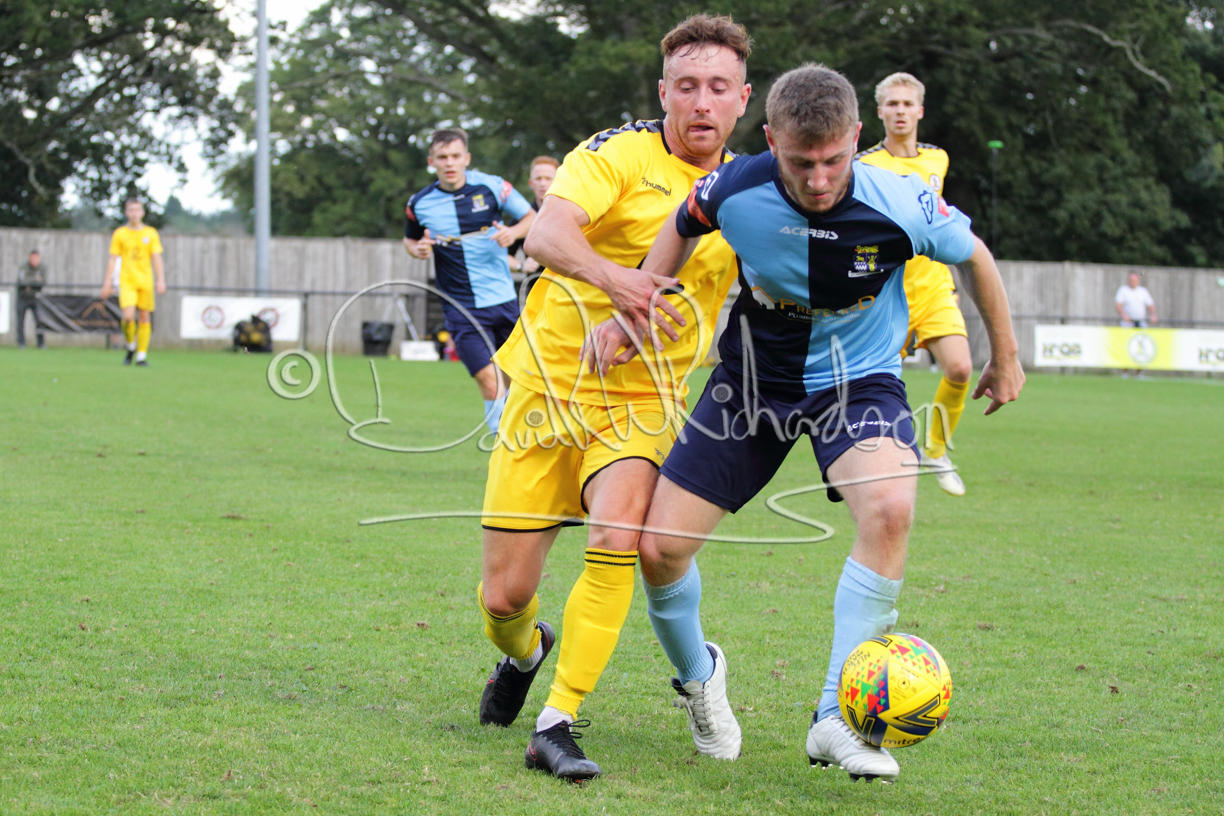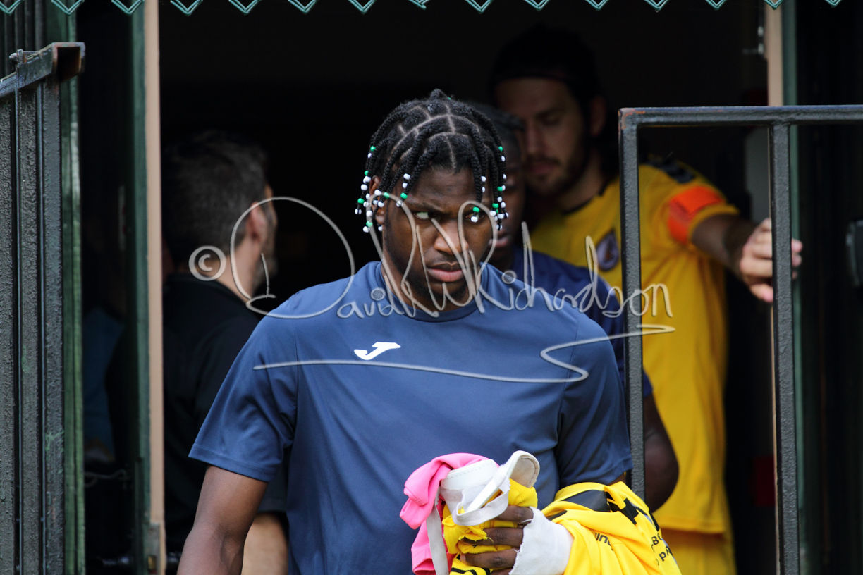 Although the action was stop/start with the over fussy official booking four players in the first 26 minutes – two from each side – with only one of those cautions looking warranted, when Ben Heal was brough down by Roger James. The action that was worthy of mention was Neo Richard-Noel weaving his way past two defenders, but Adam North saved well, and a second effort by the same visiting player also saved. As early as the 19th minute Erin Amu suffered an injury which saw Joe Sutton back in action and the home side only twice seriously threatened the St Neots goal late in the half when following a free kick, a close range shot from Lance Williams was bravely blocked by Chadwick and a second effort – the best chance of the first half – coming from a Roger James cross that found the head of Williams, but to St Neots’ relief he headed wide when scoring looked easier.