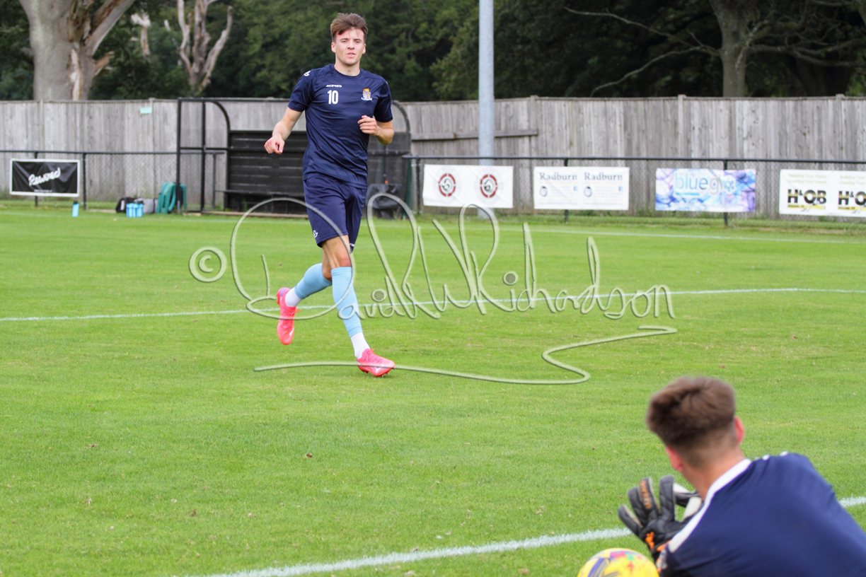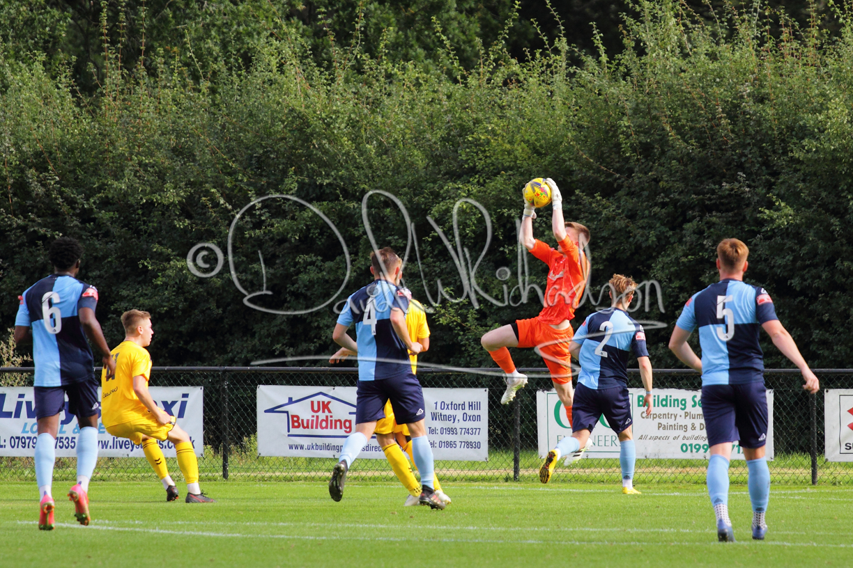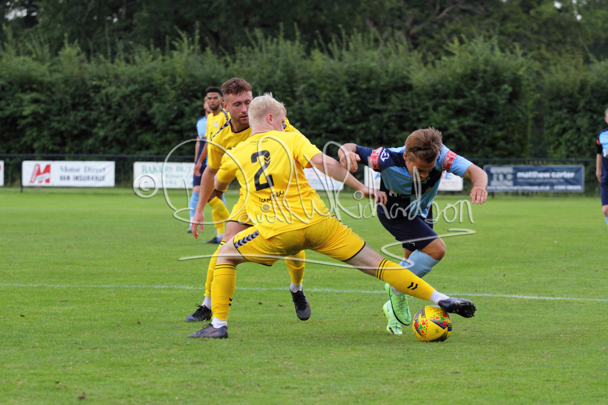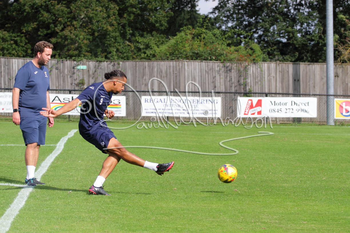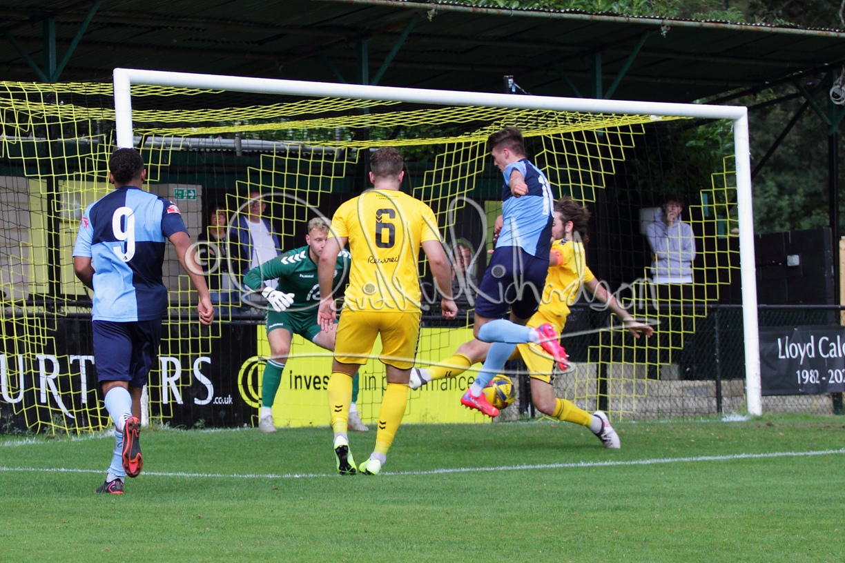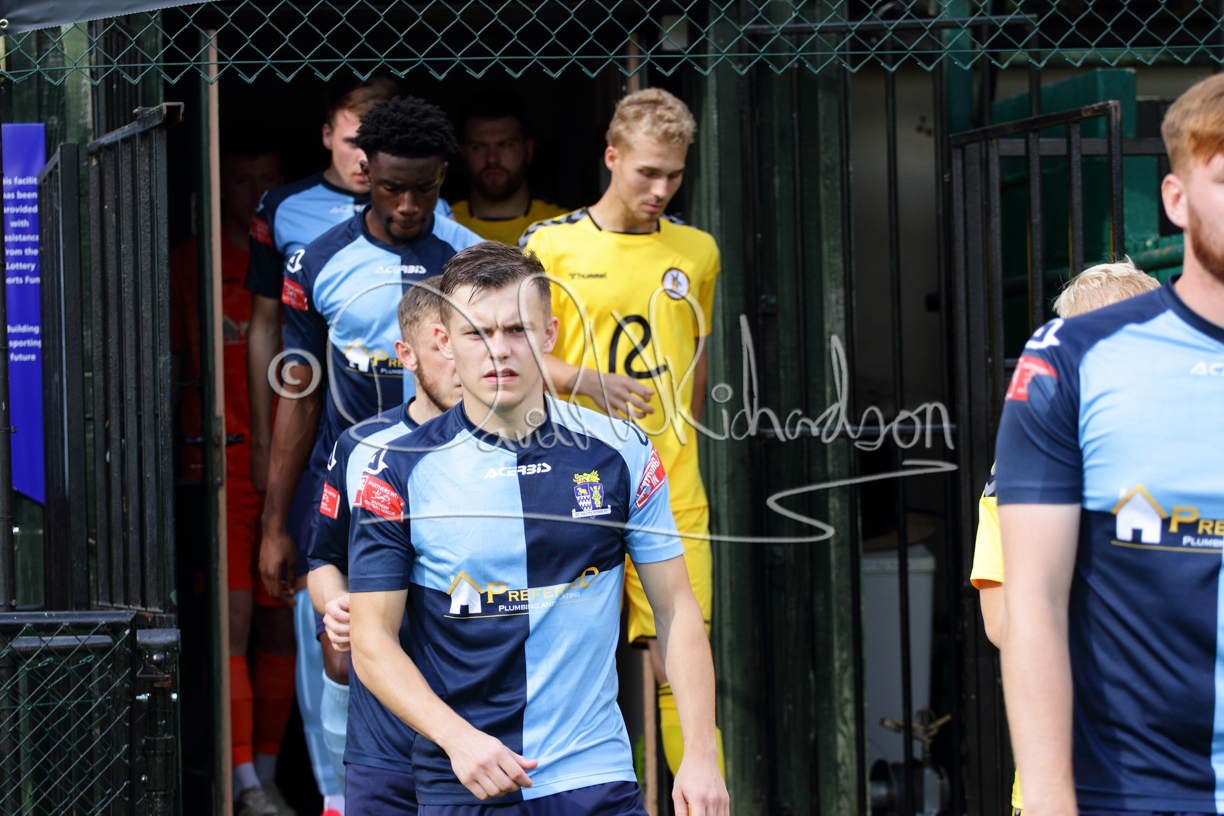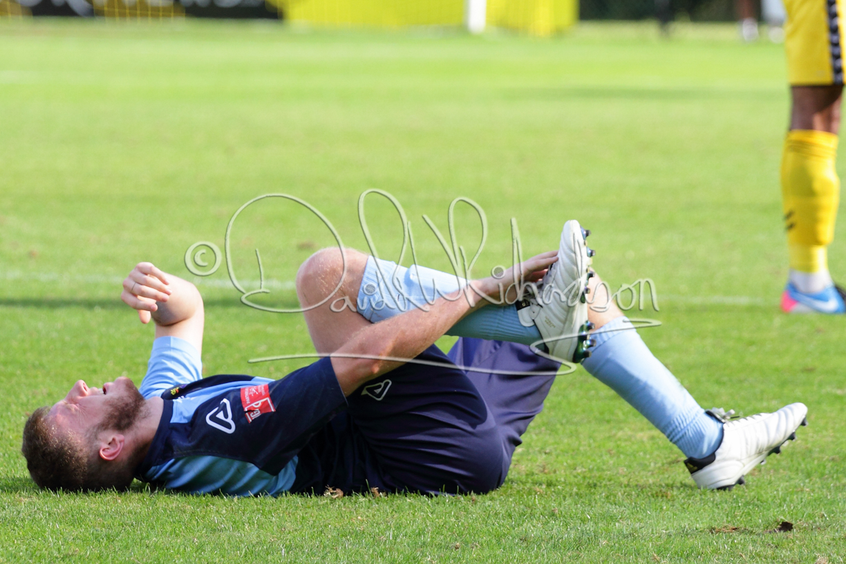 Although the action was stop/start with the over fussy official booking four players in the first 26 minutes – two from each side – with only one of those cautions looking warranted, when Ben Heal was brough down by Roger James. The action that was worthy of mention was Neo Richard-Noel weaving his way past two defenders, but Adam North saved well, and a second effort by the same visiting player also saved. As early as the 19th minute Erin Amu suffered an injury which saw Joe Sutton back in action and the home side only twice seriously threatened the St Neots goal late in the half when following a free kick, a close range shot from Lance Williams was bravely blocked by Chadwick and a second effort – the best chance of the first half – coming from a Roger James cross that found the head of Williams, but to St Neots’ relief he headed wide when scoring looked easier.
