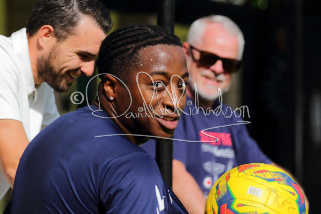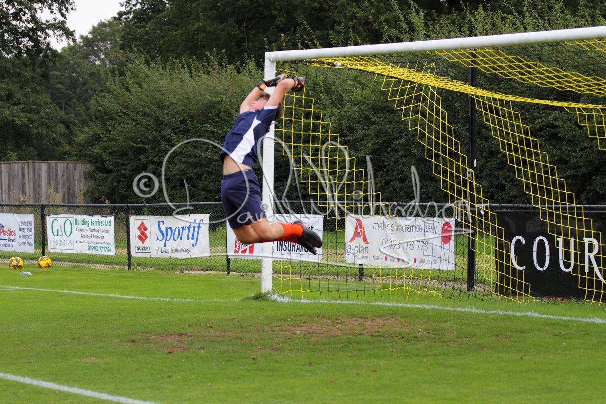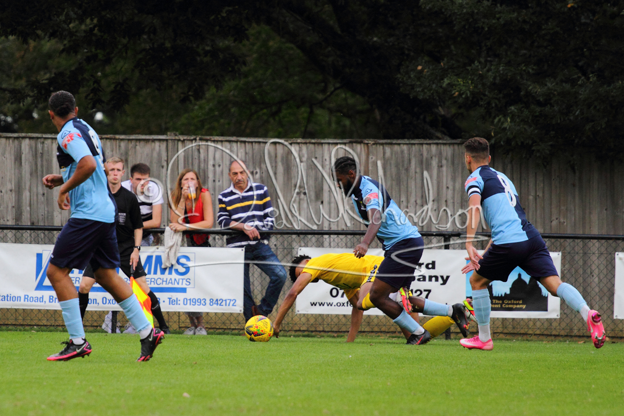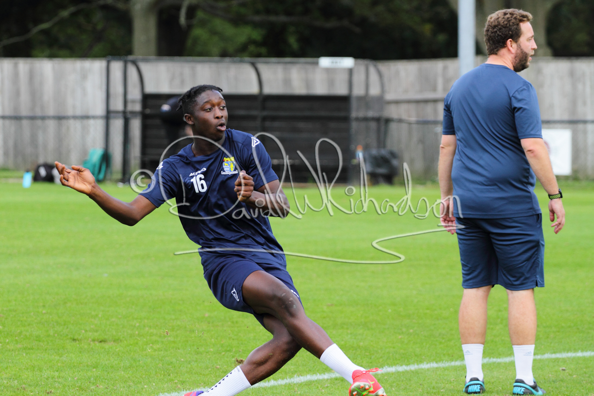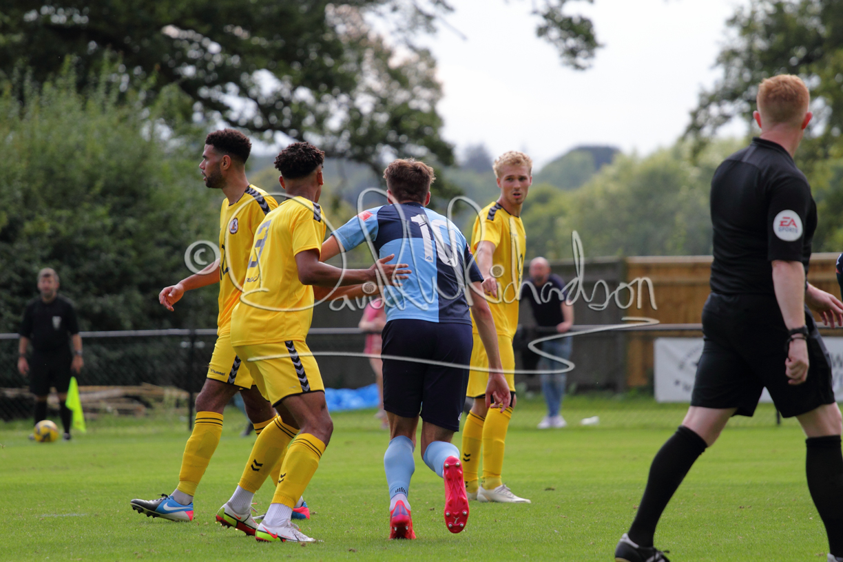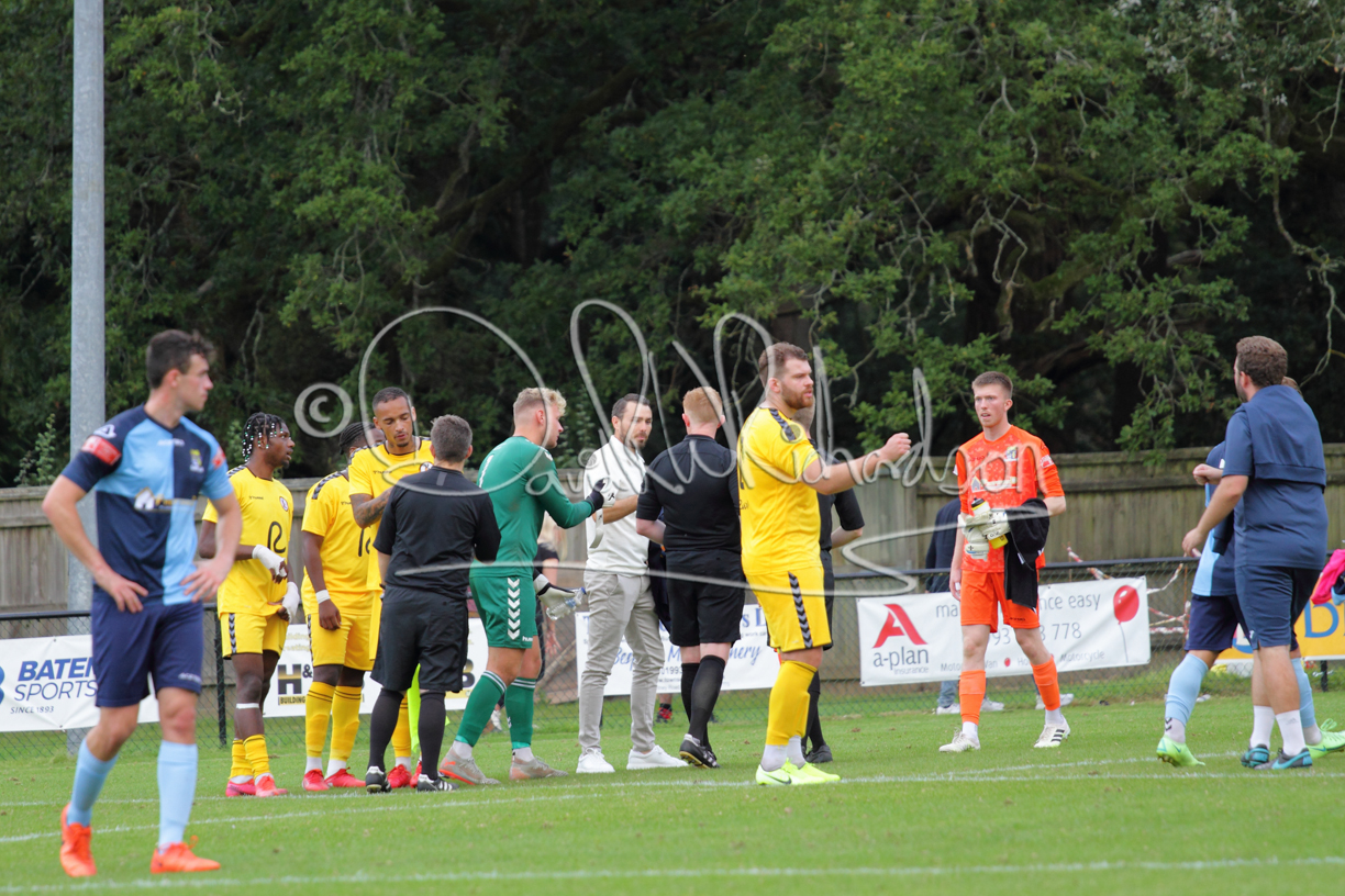 Although the action was stop/start with the over fussy official booking four players in the first 26 minutes – two from each side – with only one of those cautions looking warranted, when Ben Heal was brough down by Roger James. The action that was worthy of mention was Neo Richard-Noel weaving his way past two defenders, but Adam North saved well, and a second effort by the same visiting player also saved. As early as the 19th minute Erin Amu suffered an injury which saw Joe Sutton back in action and the home side only twice seriously threatened the St Neots goal late in the half when following a free kick, a close range shot from Lance Williams was bravely blocked by Chadwick and a second effort – the best chance of the first half – coming from a Roger James cross that found the head of Williams, but to St Neots’ relief he headed wide when scoring looked easier.