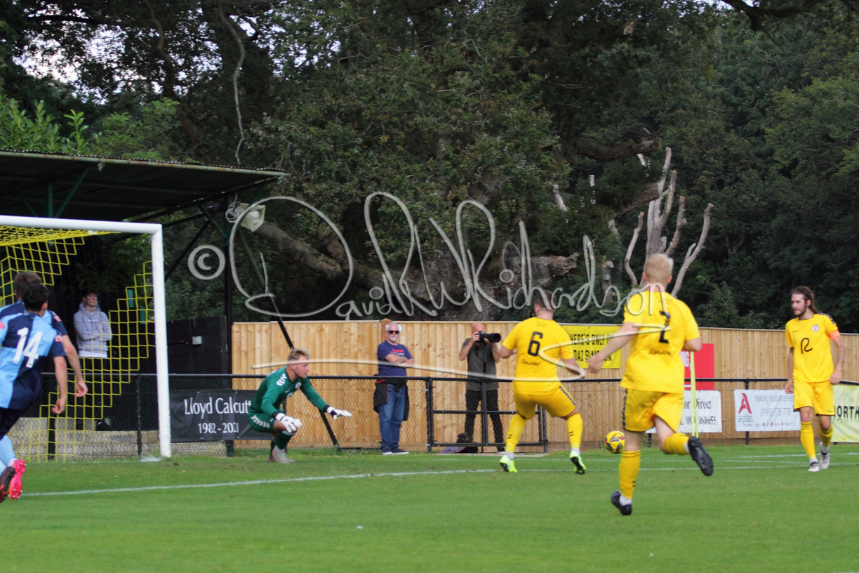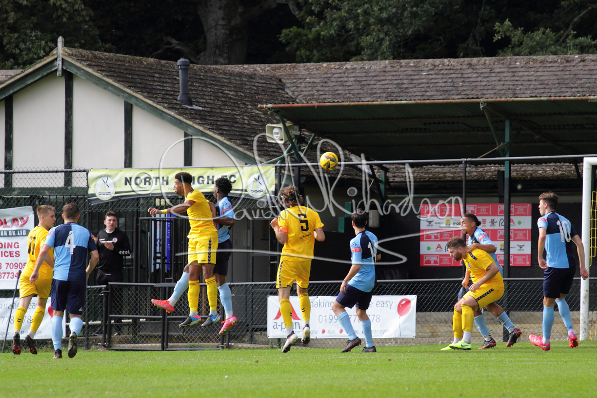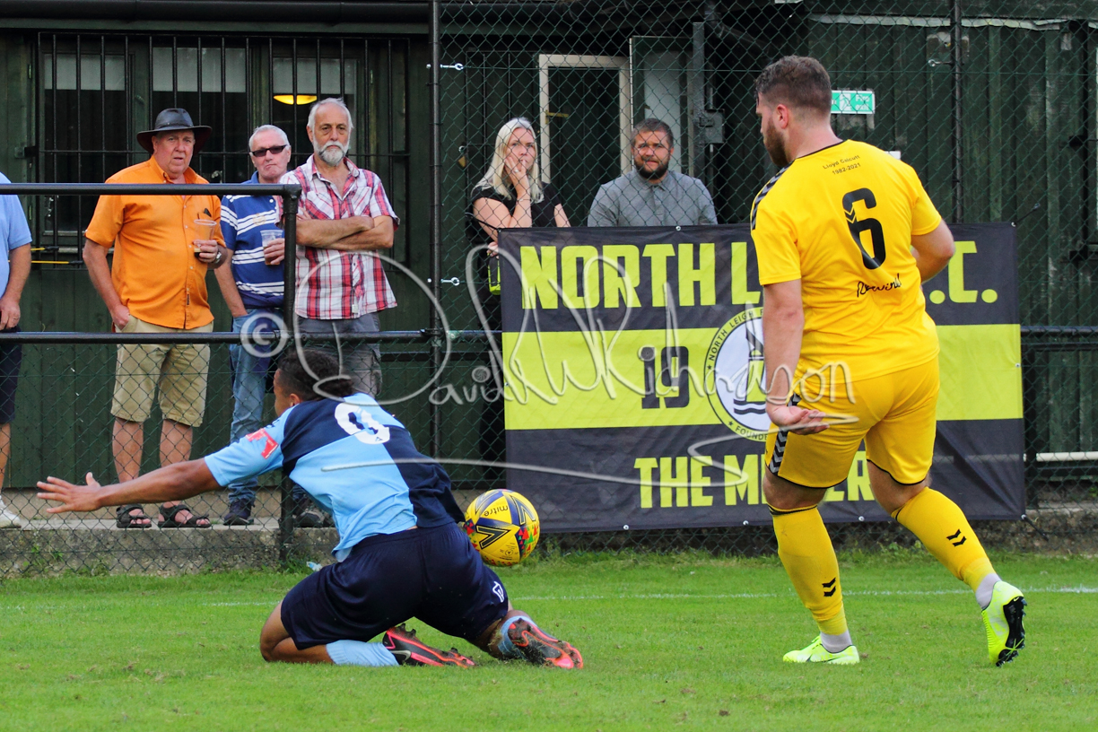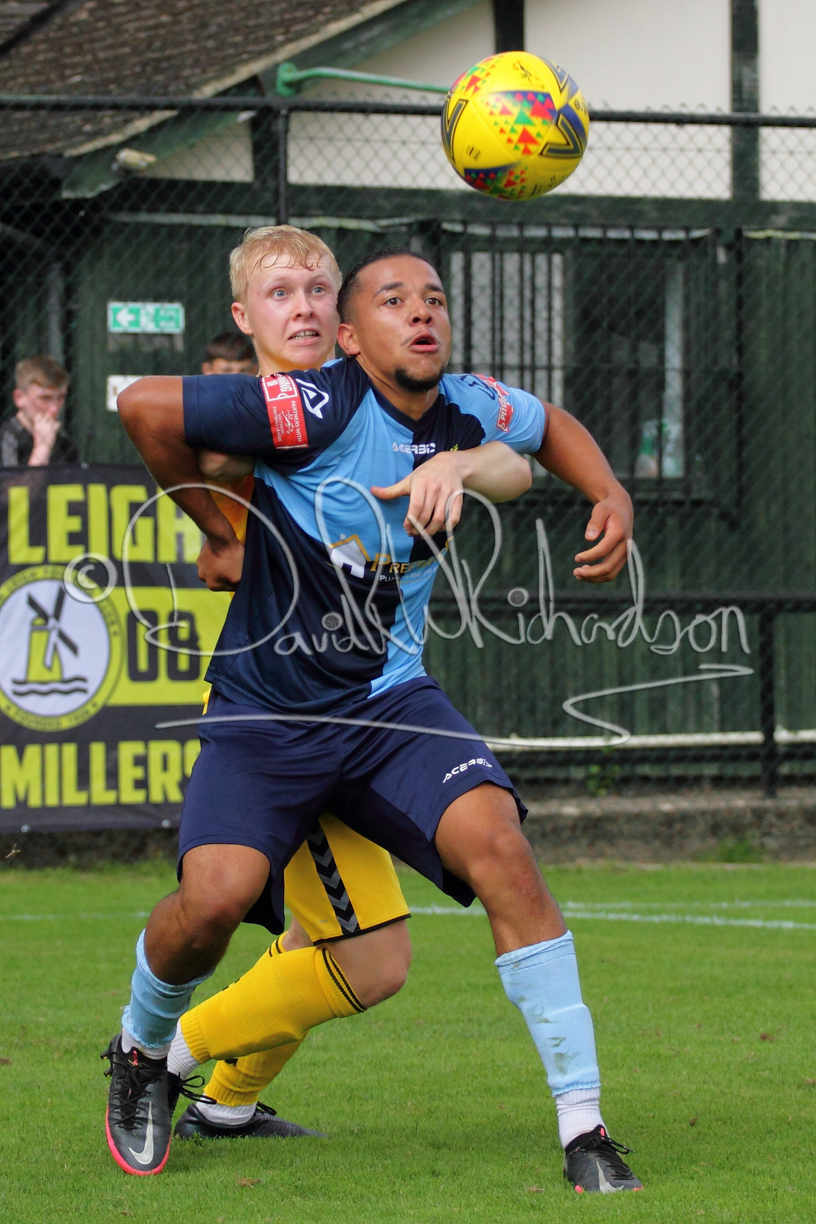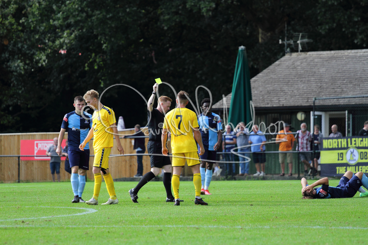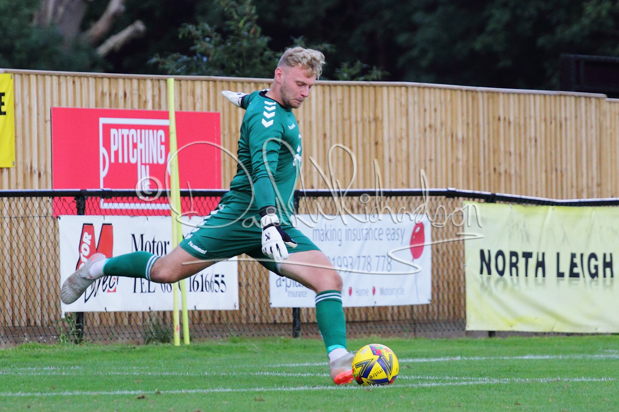 The Referee was in action two minutes in to the second half booking a third home player for an innocuous looking challenge but just sixty seconds later North Leigh took the lead. Another free kick just outside the penalty area delivered by Aaron Heap, saw the tall Luke Carnell outjump the defence and net with a perfectly placed header that gave Louis Chadwick no chance. St Neots tried to boost their defence sending on taller full-back Aaron Smith for Harvey Steel, but by now the home side were relishing their superior possession and midway through the half Jordan Thomas was played clear of the defence but as Louis Chadwick narrowed the angle, he shot tamely wide. After 73 minutes a second goal effectively put the outcome of the match beyond St Neots because they were seldom troubling the home defence. A free kick by Heap was headed back across goal by Carnell and Jensen Wright crashed home an unstoppable shot for that 2-0 lead. Now North Leigh rang the changes with all three permitted substitutes introduced and apart from one shot by Richard-Noel blocked by a defender, St Neots had little to offer, until the final eight minutes when they gave U18 winger Julinho Gomes his first taste of senior football and he responded with two searching contributions – the first a cross just beyond the two St Neots attackers and the second a lob over the advancing goalkeeper that only just cleared the crossbar.