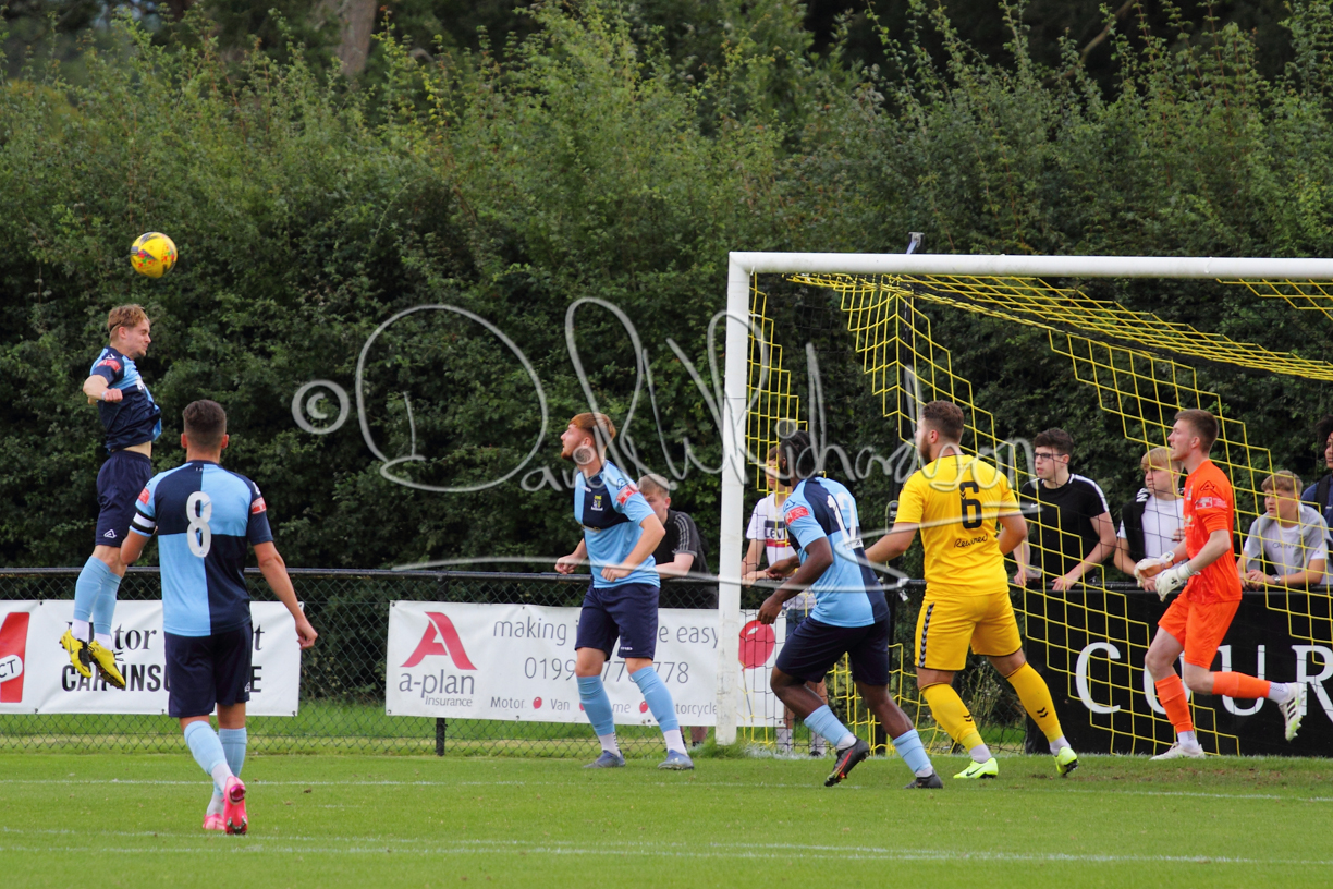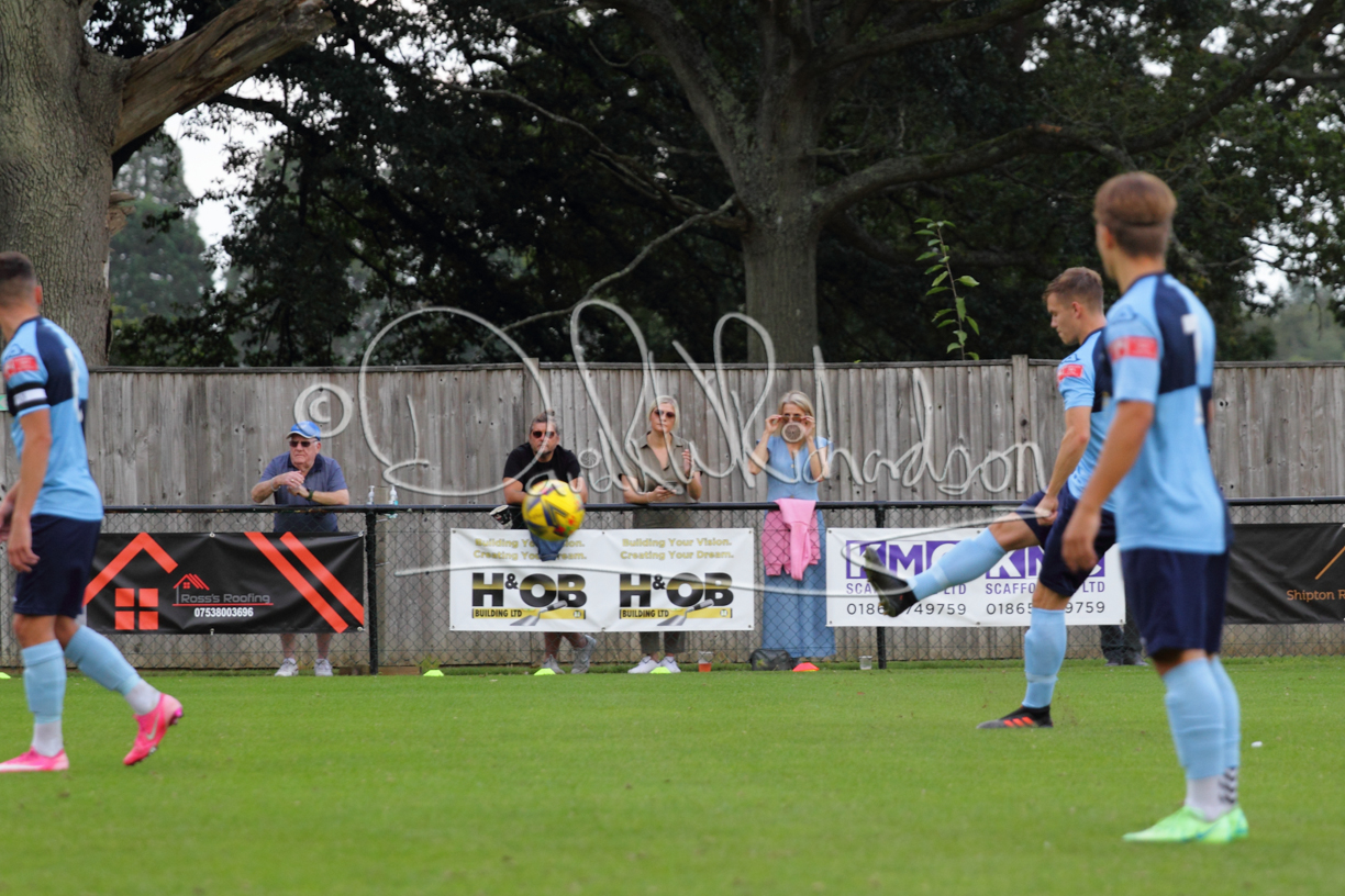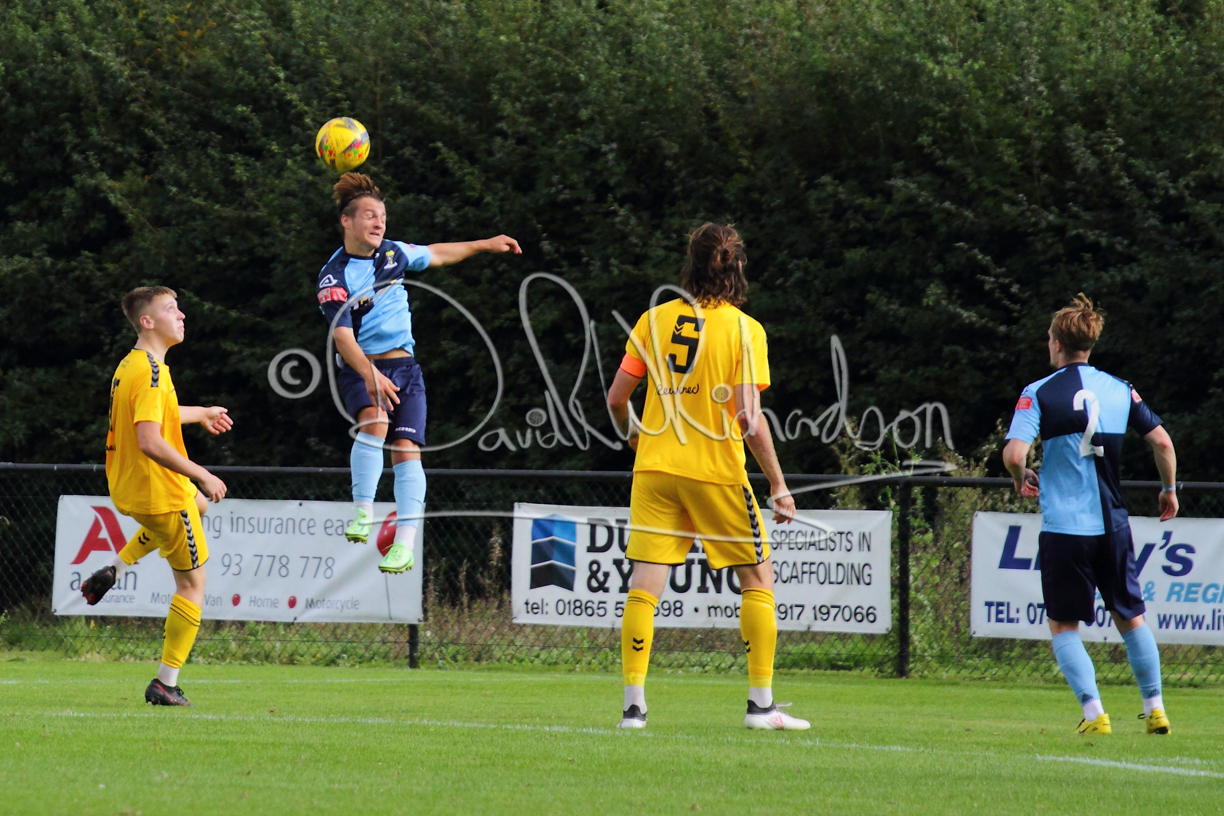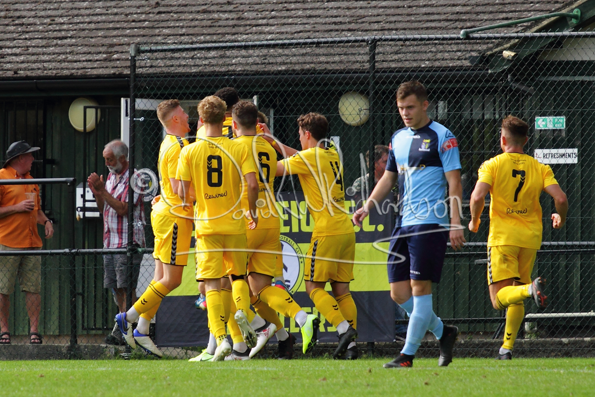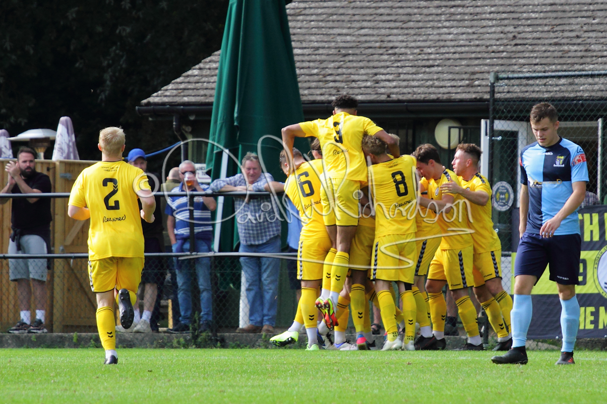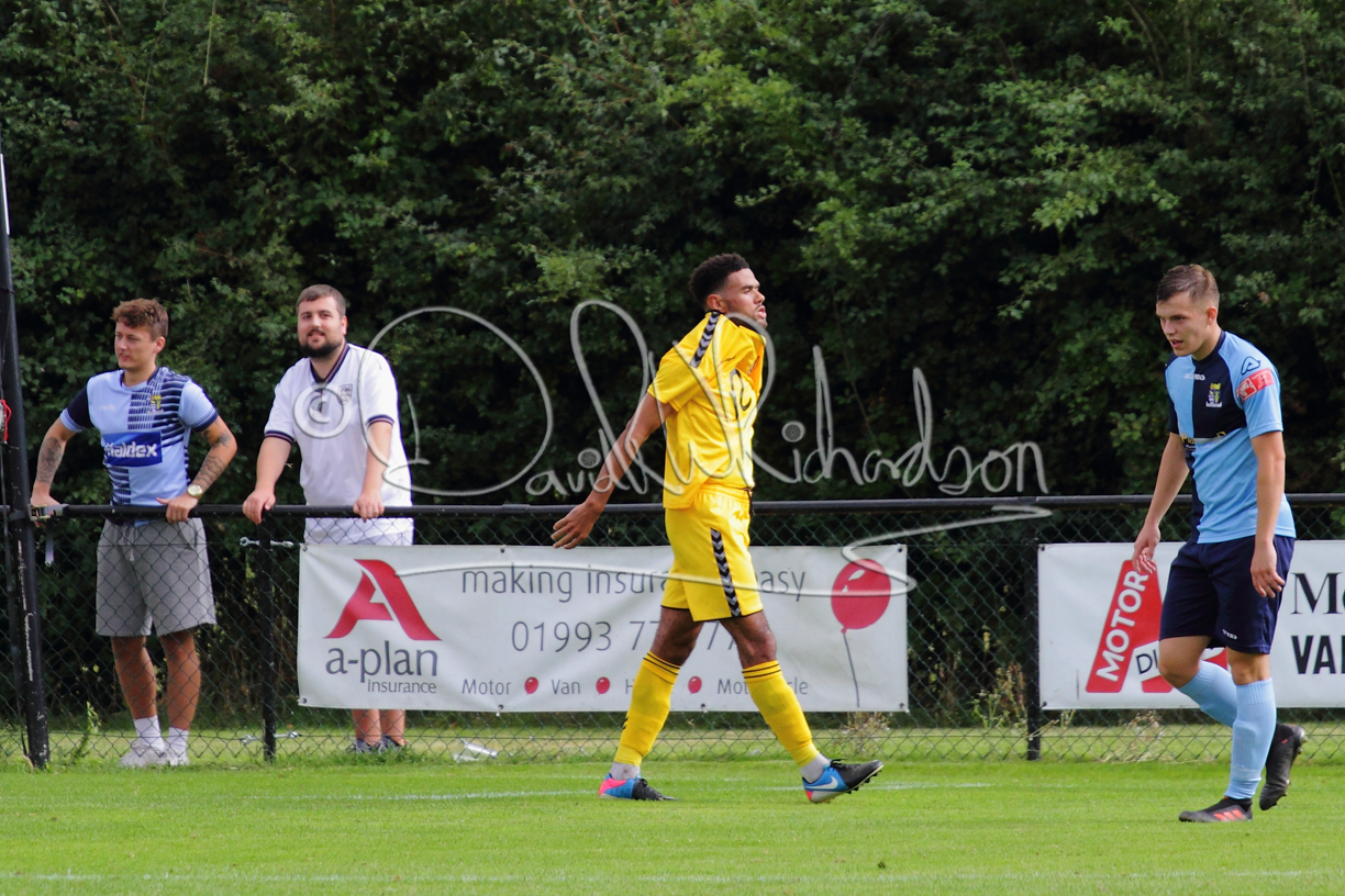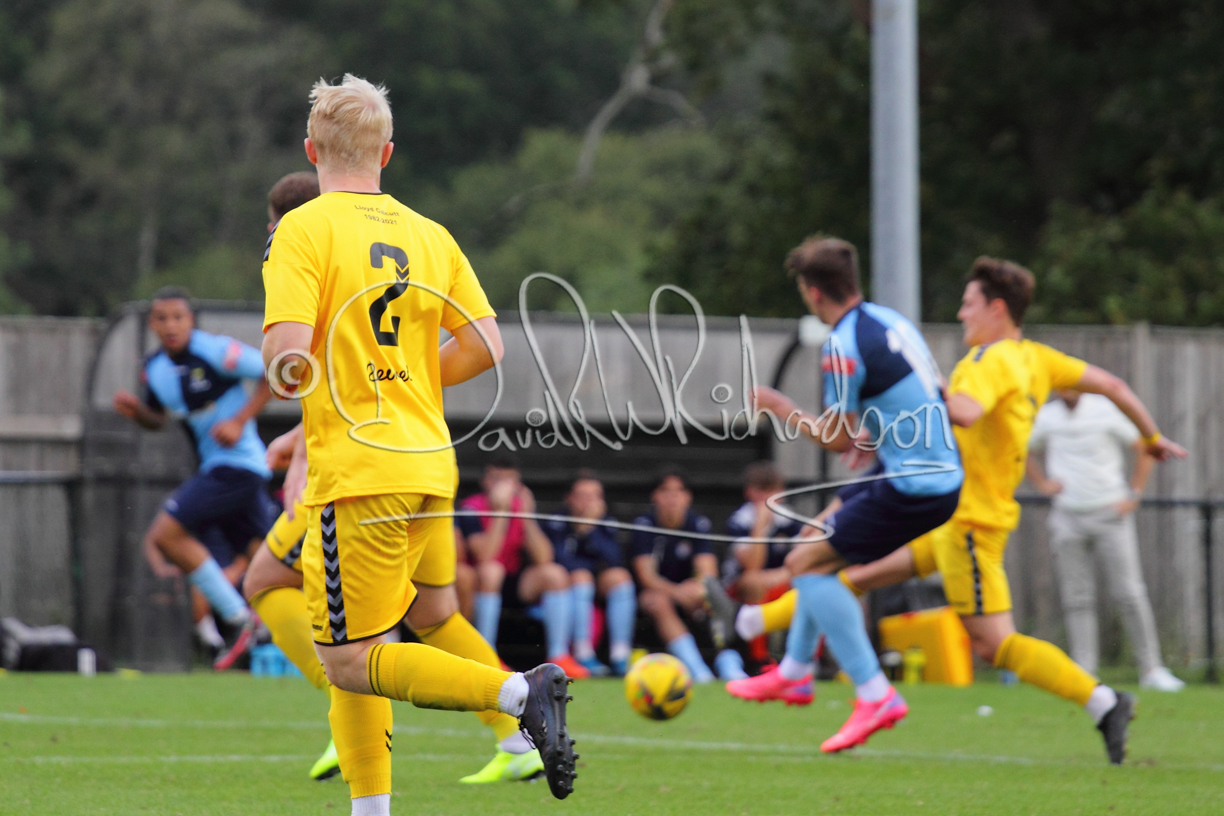 The Referee was in action two minutes in to the second half booking a third home player for an innocuous looking challenge but just sixty seconds later North Leigh took the lead. Another free kick just outside the penalty area delivered by Aaron Heap, saw the tall Luke Carnell outjump the defence and net with a perfectly placed header that gave Louis Chadwick no chance. St Neots tried to boost their defence sending on taller full-back Aaron Smith for Harvey Steel, but by now the home side were relishing their superior possession and midway through the half Jordan Thomas was played clear of the defence but as Louis Chadwick narrowed the angle, he shot tamely wide. After 73 minutes a second goal effectively put the outcome of the match beyond St Neots because they were seldom troubling the home defence. A free kick by Heap was headed back across goal by Carnell and Jensen Wright crashed home an unstoppable shot for that 2-0 lead. Now North Leigh rang the changes with all three permitted substitutes introduced and apart from one shot by Richard-Noel blocked by a defender, St Neots had little to offer, until the final eight minutes when they gave U18 winger Julinho Gomes his first taste of senior football and he responded with two searching contributions – the first a cross just beyond the two St Neots attackers and the second a lob over the advancing goalkeeper that only just cleared the crossbar.