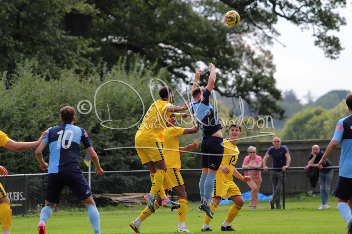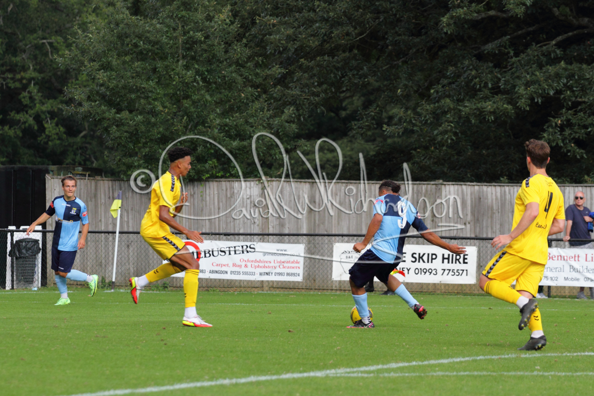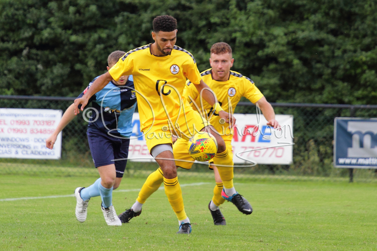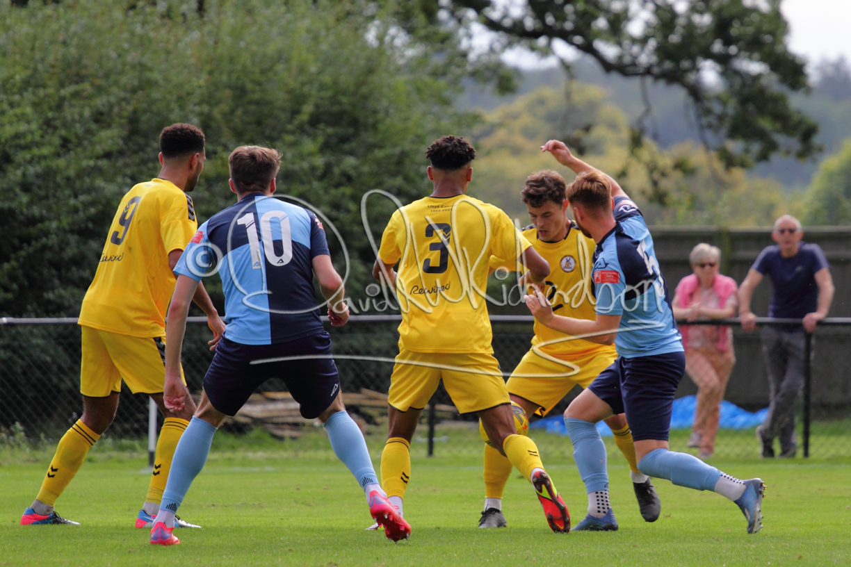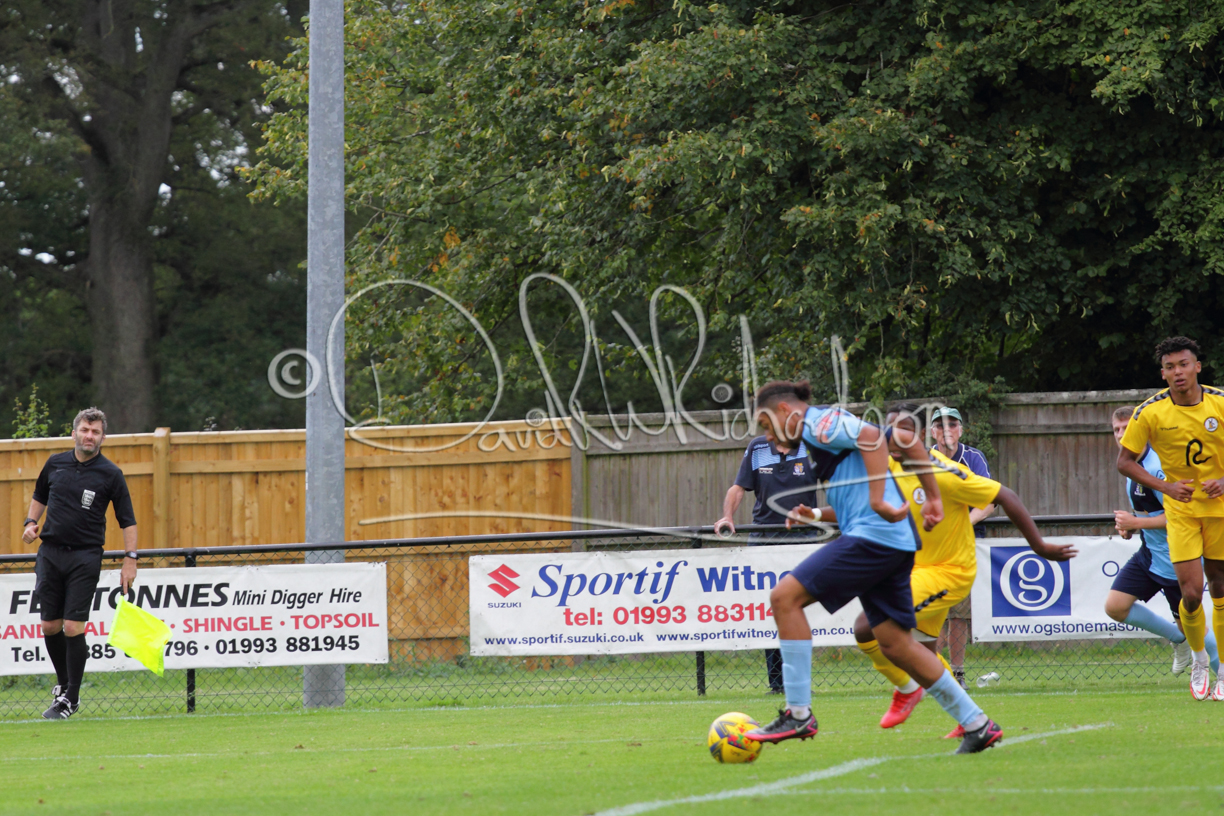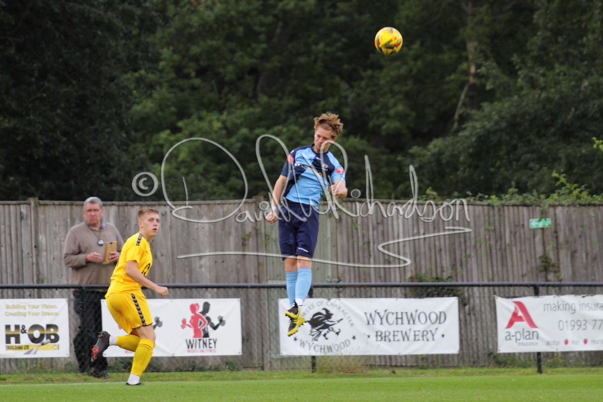 The Referee was in action two minutes in to the second half booking a third home player for an innocuous looking challenge but just sixty seconds later North Leigh took the lead. Another free kick just outside the penalty area delivered by Aaron Heap, saw the tall Luke Carnell outjump the defence and net with a perfectly placed header that gave Louis Chadwick no chance. St Neots tried to boost their defence sending on taller full-back Aaron Smith for Harvey Steel, but by now the home side were relishing their superior possession and midway through the half Jordan Thomas was played clear of the defence but as Louis Chadwick narrowed the angle, he shot tamely wide. After 73 minutes a second goal effectively put the outcome of the match beyond St Neots because they were seldom troubling the home defence. A free kick by Heap was headed back across goal by Carnell and Jensen Wright crashed home an unstoppable shot for that 2-0 lead. Now North Leigh rang the changes with all three permitted substitutes introduced and apart from one shot by Richard-Noel blocked by a defender, St Neots had little to offer, until the final eight minutes when they gave U18 winger Julinho Gomes his first taste of senior football and he responded with two searching contributions – the first a cross just beyond the two St Neots attackers and the second a lob over the advancing goalkeeper that only just cleared the crossbar.