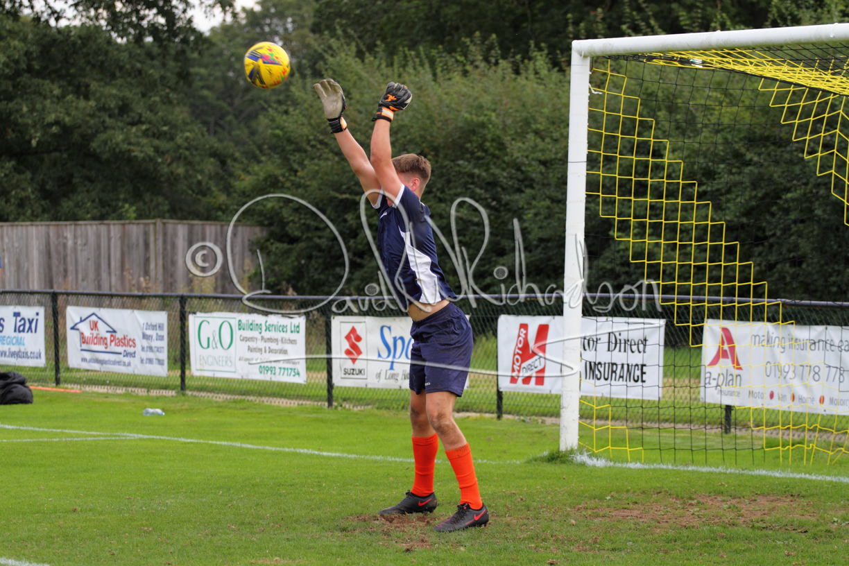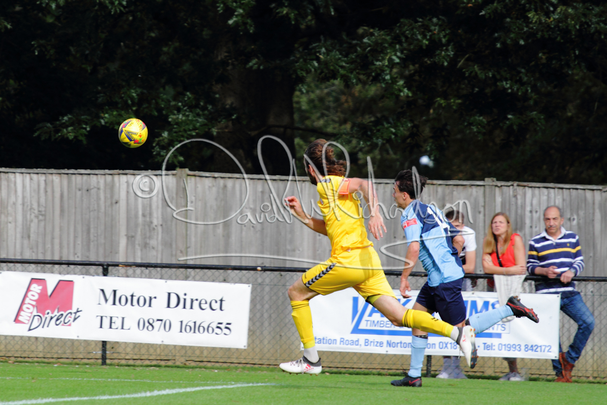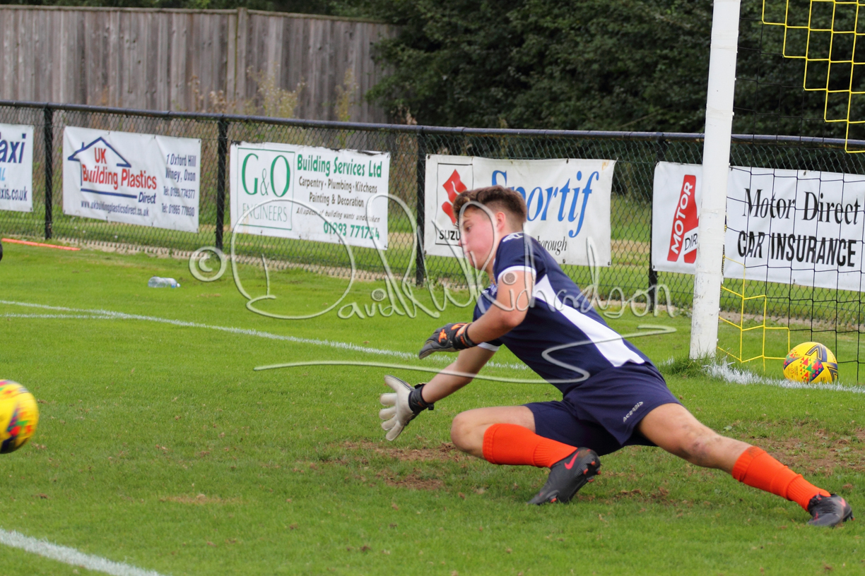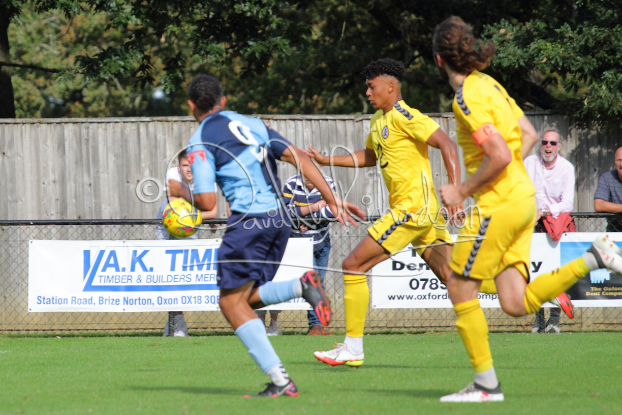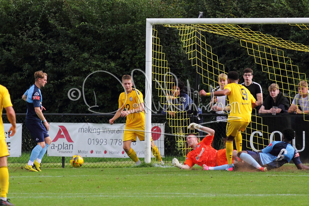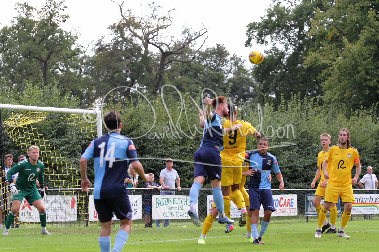 The Referee was in action two minutes in to the second half booking a third home player for an innocuous looking challenge but just sixty seconds later North Leigh took the lead. Another free kick just outside the penalty area delivered by Aaron Heap, saw the tall Luke Carnell outjump the defence and net with a perfectly placed header that gave Louis Chadwick no chance. St Neots tried to boost their defence sending on taller full-back Aaron Smith for Harvey Steel, but by now the home side were relishing their superior possession and midway through the half Jordan Thomas was played clear of the defence but as Louis Chadwick narrowed the angle, he shot tamely wide. After 73 minutes a second goal effectively put the outcome of the match beyond St Neots because they were seldom troubling the home defence. A free kick by Heap was headed back across goal by Carnell and Jensen Wright crashed home an unstoppable shot for that 2-0 lead. Now North Leigh rang the changes with all three permitted substitutes introduced and apart from one shot by Richard-Noel blocked by a defender, St Neots had little to offer, until the final eight minutes when they gave U18 winger Julinho Gomes his first taste of senior football and he responded with two searching contributions – the first a cross just beyond the two St Neots attackers and the second a lob over the advancing goalkeeper that only just cleared the crossbar.