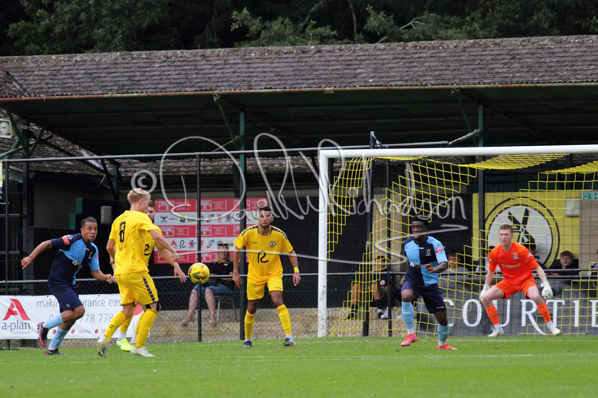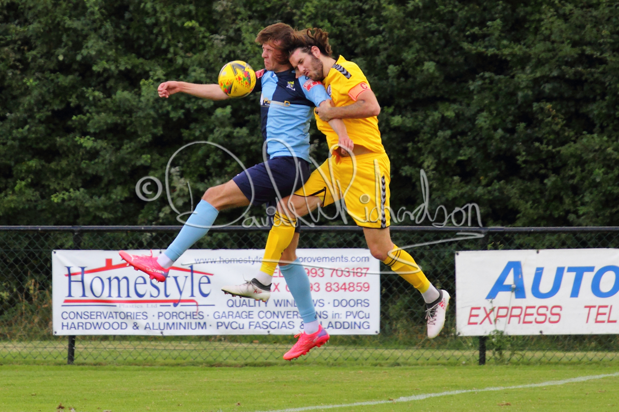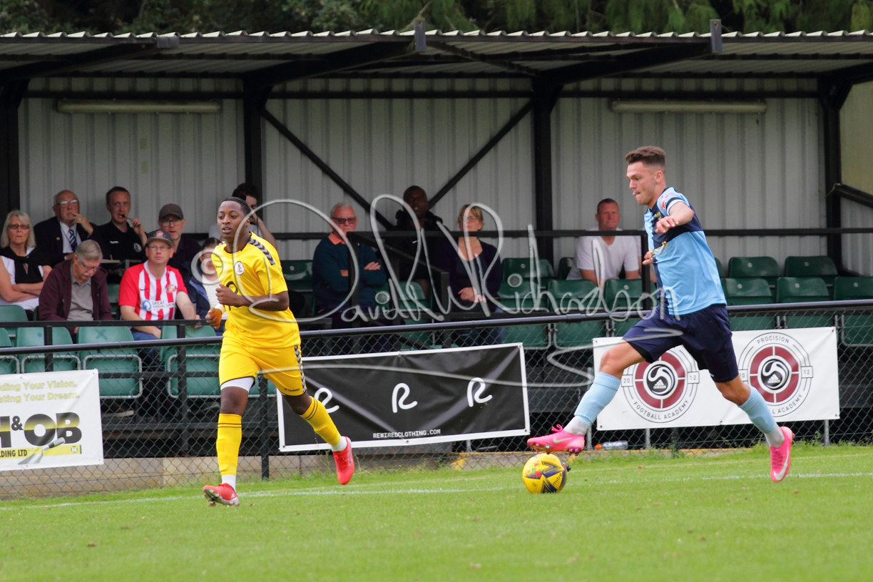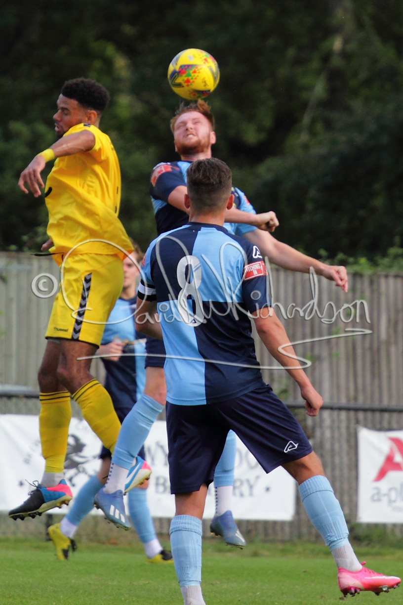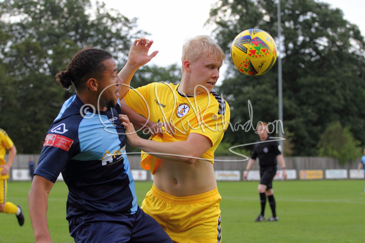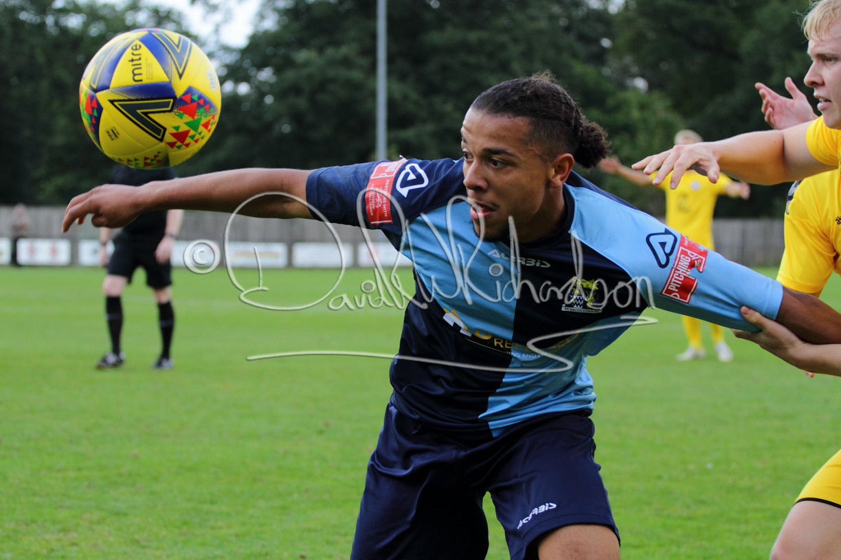 The match hinged at both ends on the two towering home central defenders who gave the visiting forwards no room and supplemented their performance by scoring the first and laying on the second goal. St Neots were still below full strength, especially in defence, with recent signing Mamadou Jobe joining Dequane Wilson-Braithwaite on the injury list. However, on the substitutes bench Joe Sutton returned to action after suspension and there was a first taste of senior action for U18 starlet Julinho Gomes. Harvey Steel returned to the side at full back with Wynford Marfo resuming in central defence. St Neots now embark on a busy spell of two matches each week for the next month, so the return of the injured players will be a welcome boost.