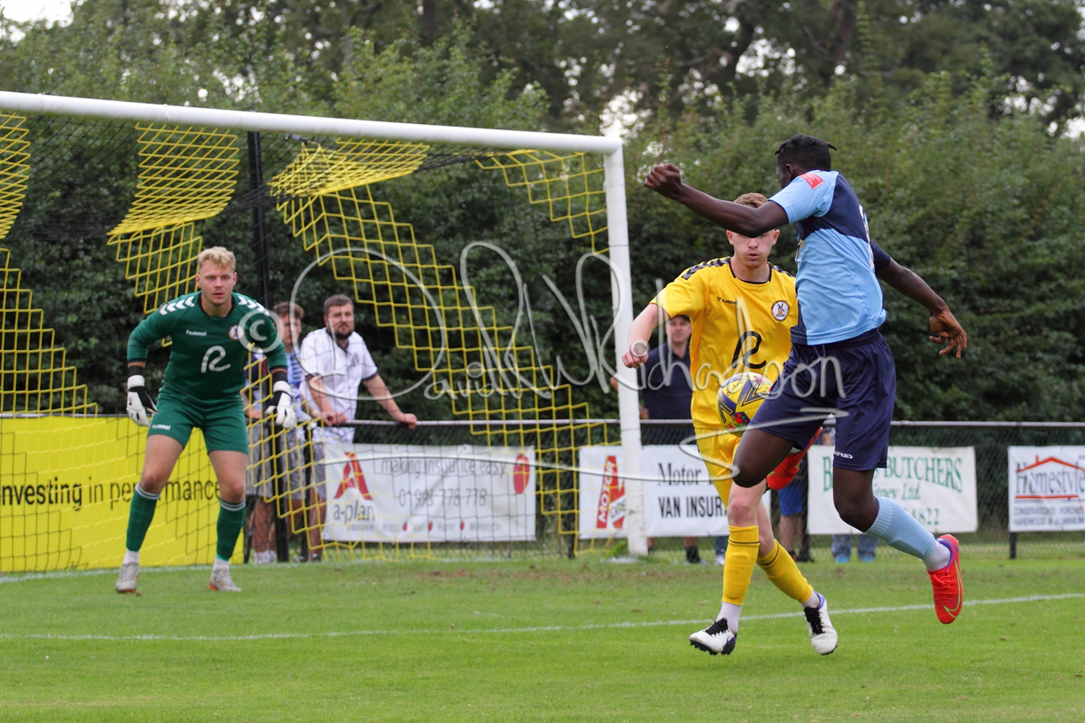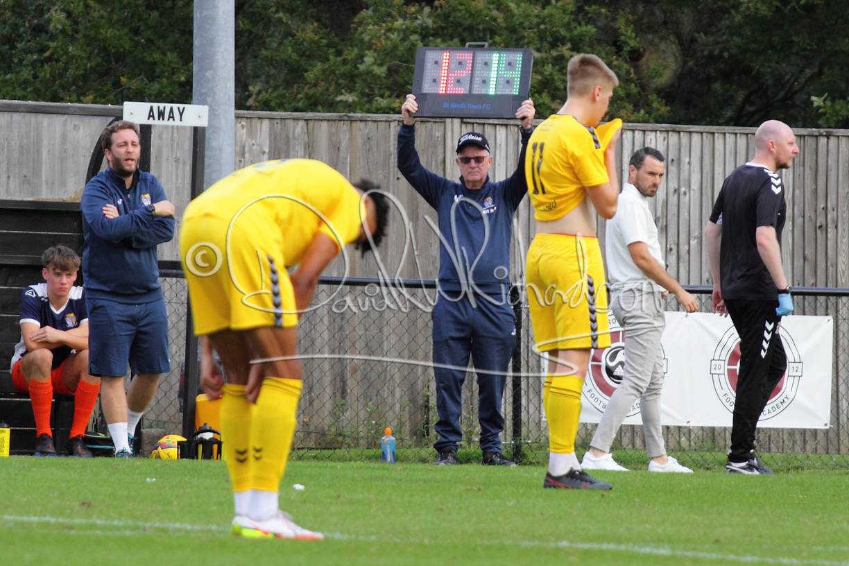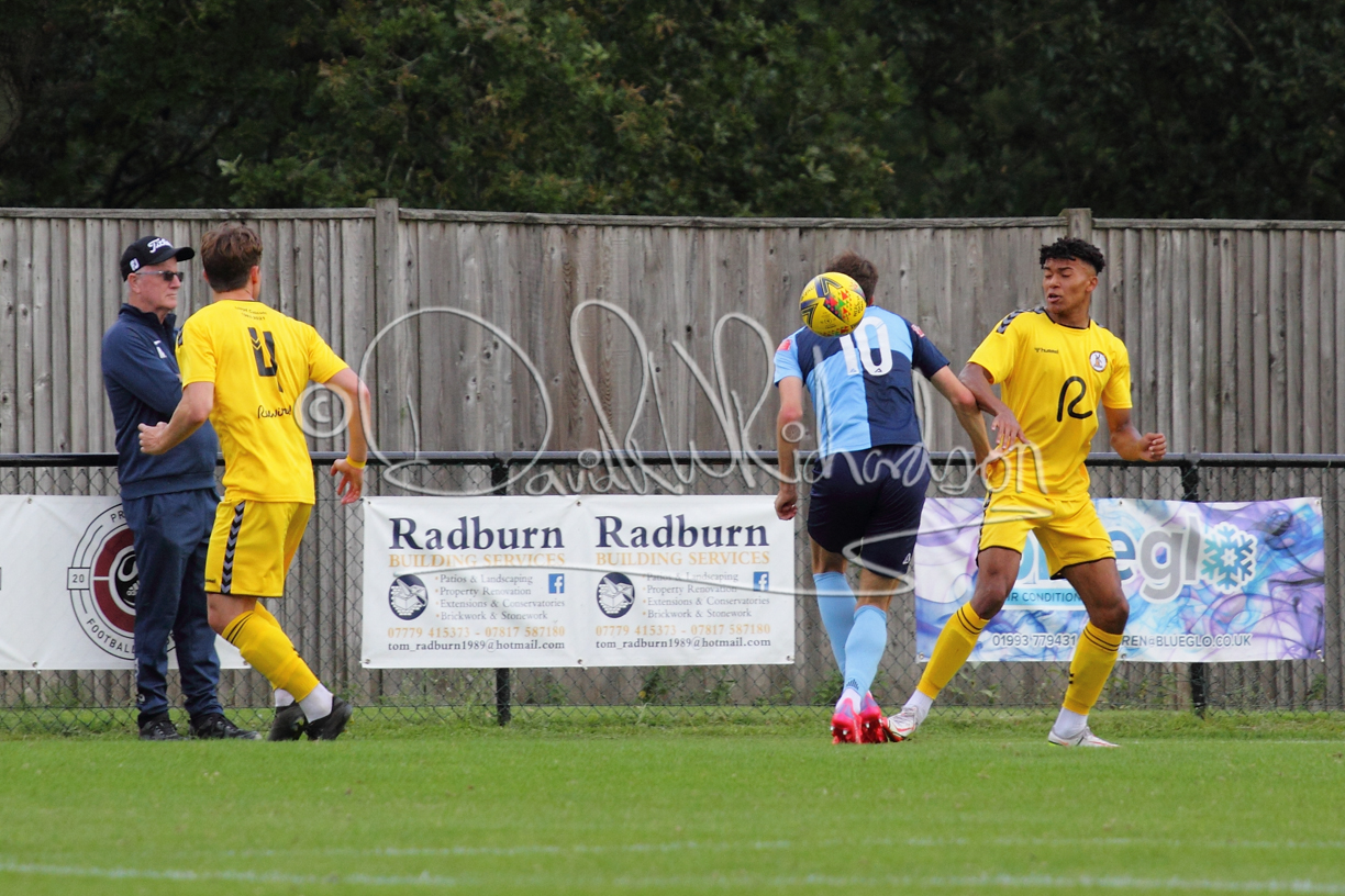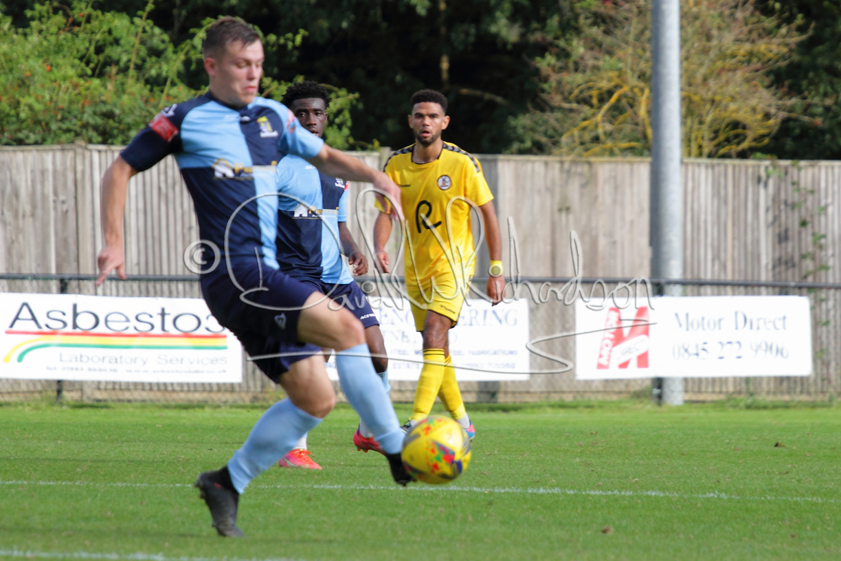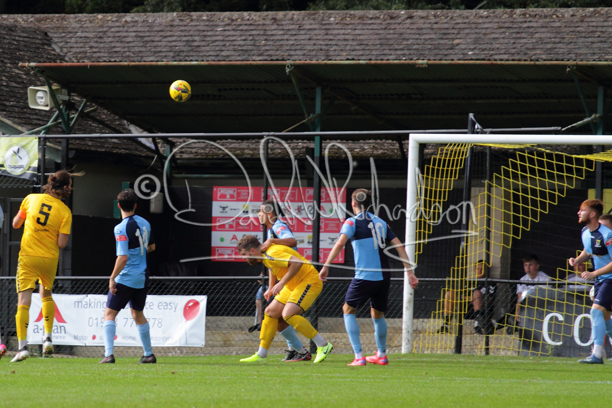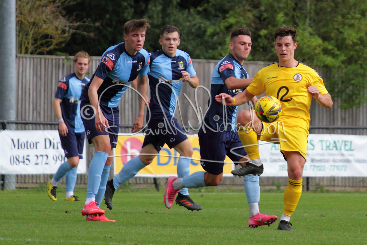 The match hinged at both ends on the two towering home central defenders who gave the visiting forwards no room and supplemented their performance by scoring the first and laying on the second goal. St Neots were still below full strength, especially in defence, with recent signing Mamadou Jobe joining Dequane Wilson-Braithwaite on the injury list. However, on the substitutes bench Joe Sutton returned to action after suspension and there was a first taste of senior action for U18 starlet Julinho Gomes. Harvey Steel returned to the side at full back with Wynford Marfo resuming in central defence. St Neots now embark on a busy spell of two matches each week for the next month, so the return of the injured players will be a welcome boost.