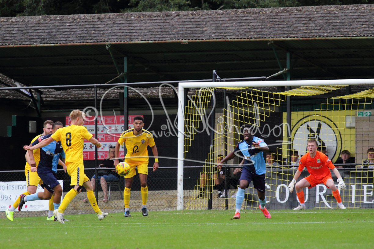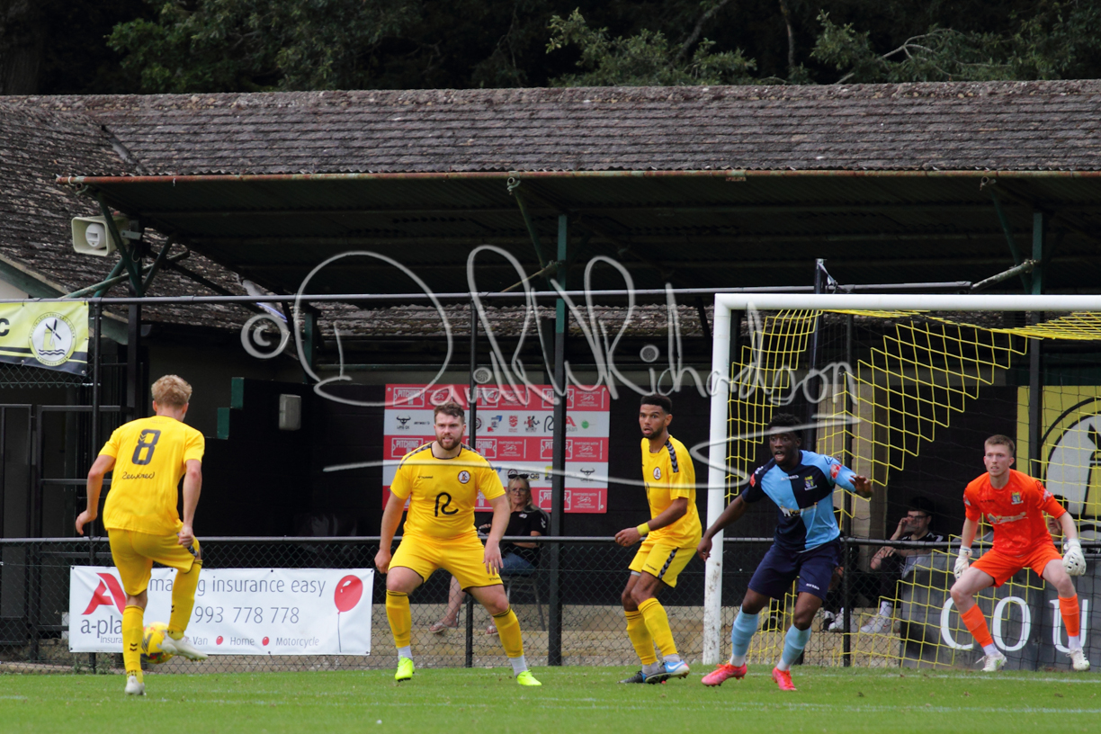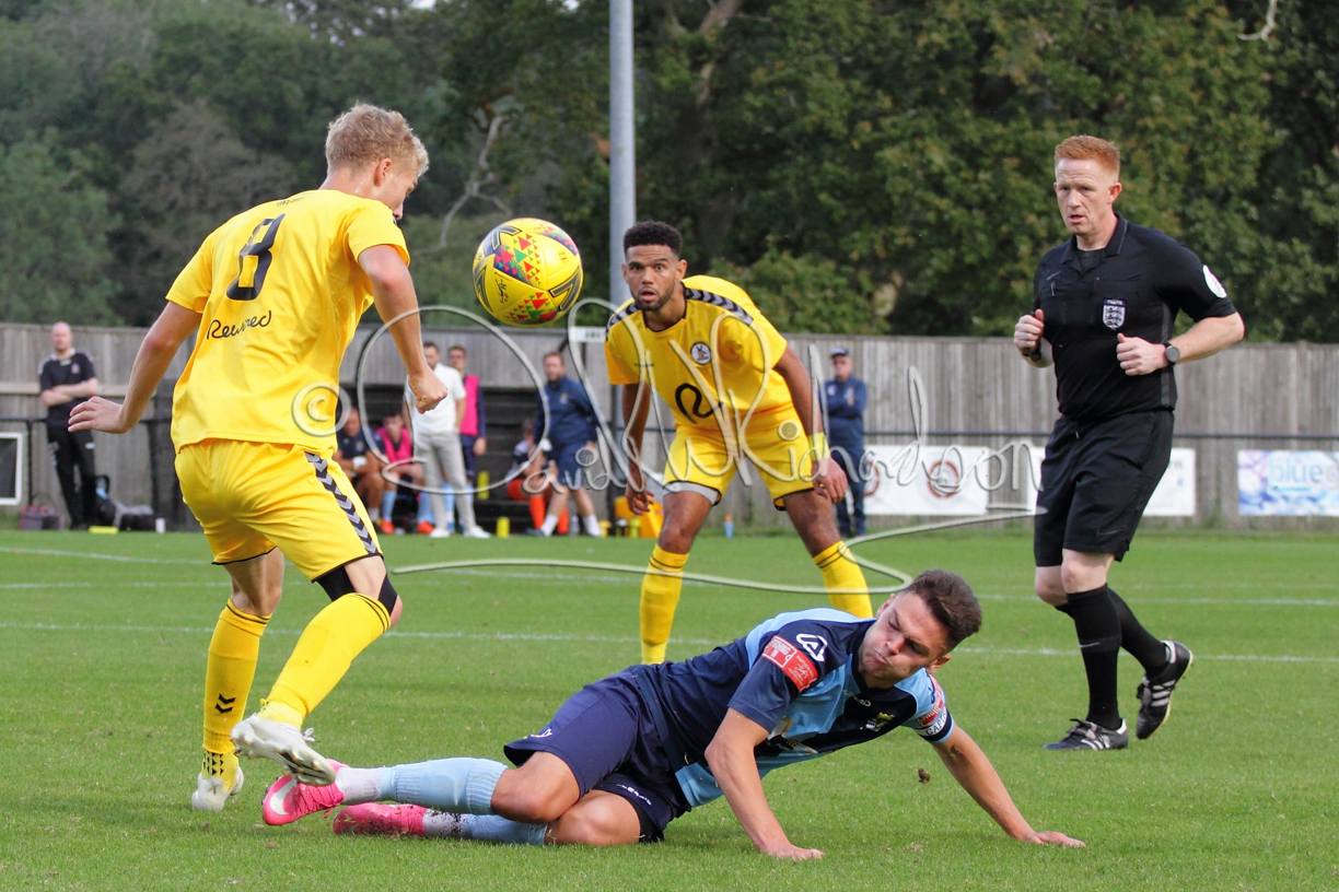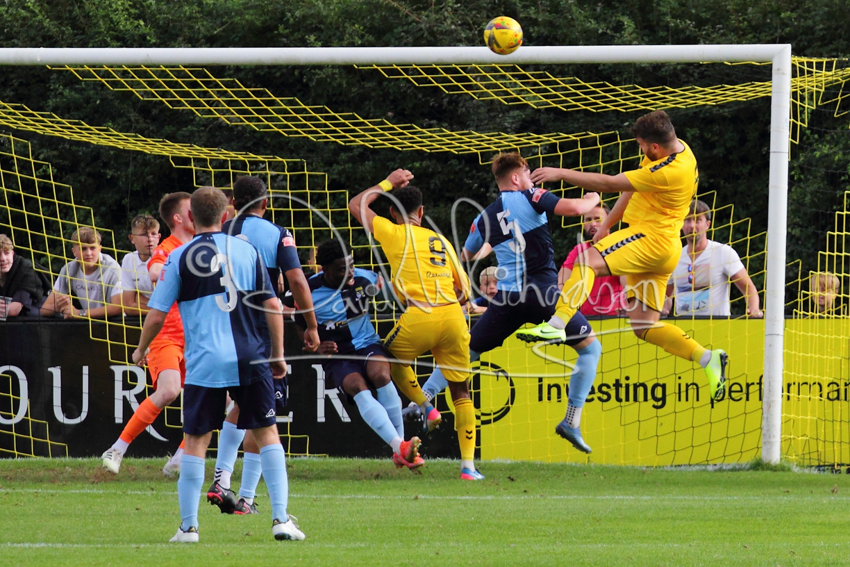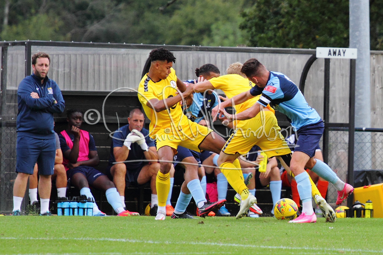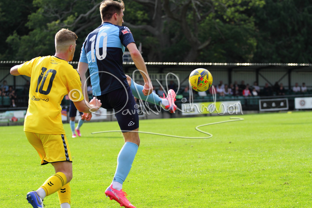 The match hinged at both ends on the two towering home central defenders who gave the visiting forwards no room and supplemented their performance by scoring the first and laying on the second goal. St Neots were still below full strength, especially in defence, with recent signing Mamadou Jobe joining Dequane Wilson-Braithwaite on the injury list. However, on the substitutes bench Joe Sutton returned to action after suspension and there was a first taste of senior action for U18 starlet Julinho Gomes. Harvey Steel returned to the side at full back with Wynford Marfo resuming in central defence. St Neots now embark on a busy spell of two matches each week for the next month, so the return of the injured players will be a welcome boost.