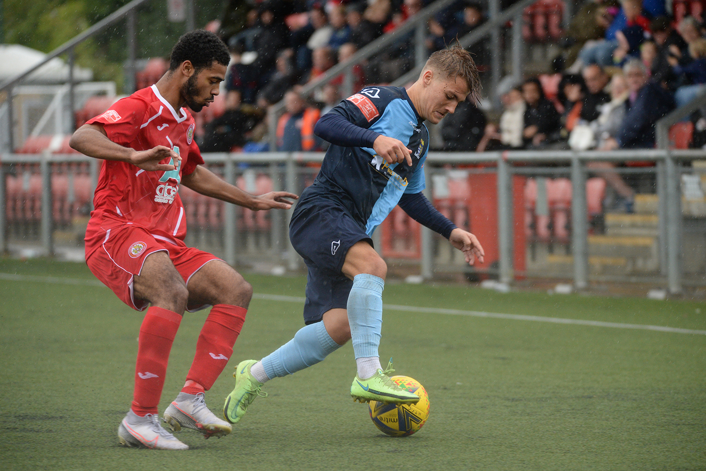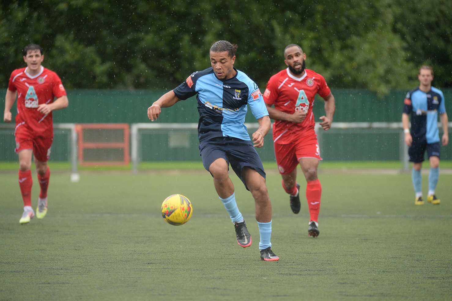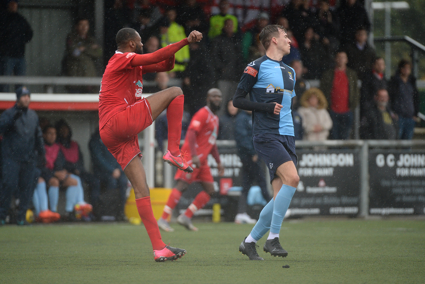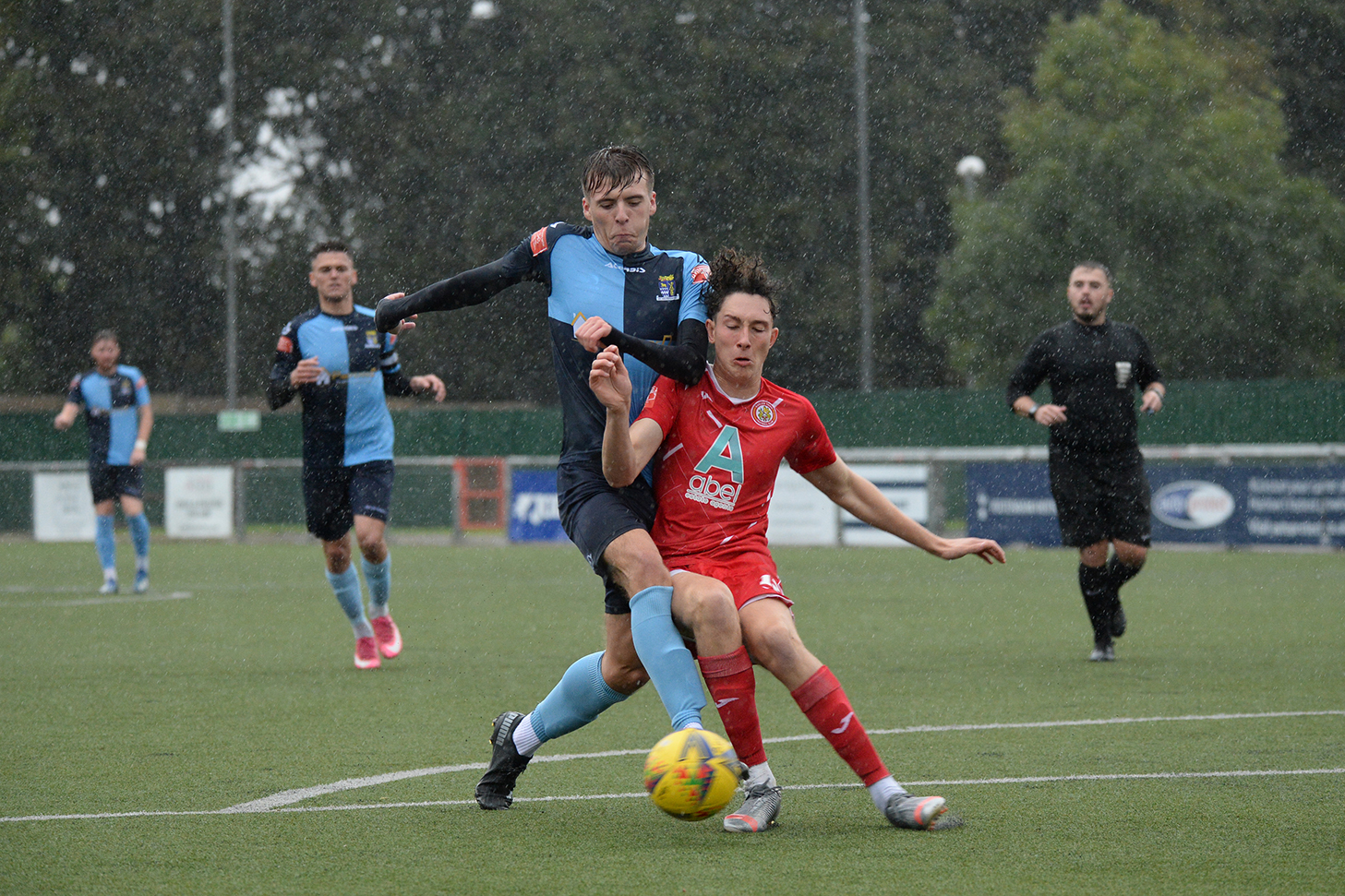 In a bright start both sides could have registered an early goal. St Neots were fortunate when their defence let in Sammy Dadson after seven minutes on the left and his cross found leading home scorer Alexander Read, but with the goal at his mercy from six yards his shot rebounded from a post. St Neots struck back immediately, and a low Joe Rider shot was pushed for a corner by Middlehurst. St Neots defence were again culpable as they allowed Read to go clear and his unselfish cross set up the unmarked Demaray Anyadike who saw his shot deflected for a corner. New St Neots signing Brendon Shabani made an early mark with a 21st minute curling free kick that just passed the far post with the keeper beaten and then at the other end when Wynford Marfo conceded a free kick, Hector Mackie forced a good save from Louis Chadwick. By now, St Neots were beginning to have the better of the exchanges and Rider (twice) brought good saves from the home keeper and Neo Richard-Noel shot narrowly wide. Marfo then joined the attack to exchange passes with Rider and skim the crossbar with his finish but then after 42 minutes from an Demaray Anyadike corner, defender Joshua Steele sent a header into the net via the inside of a goalpost to give the hosts their half time lead.