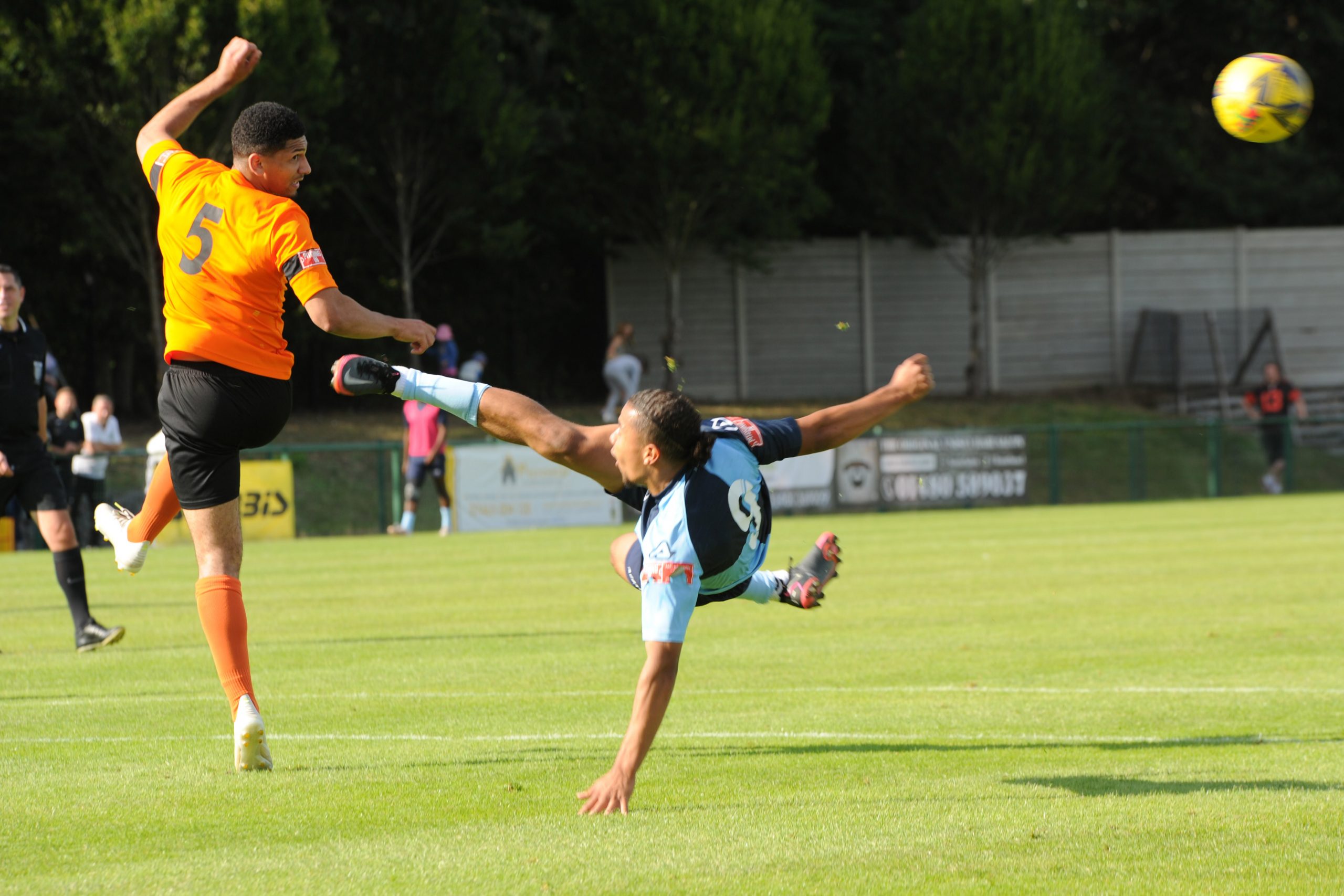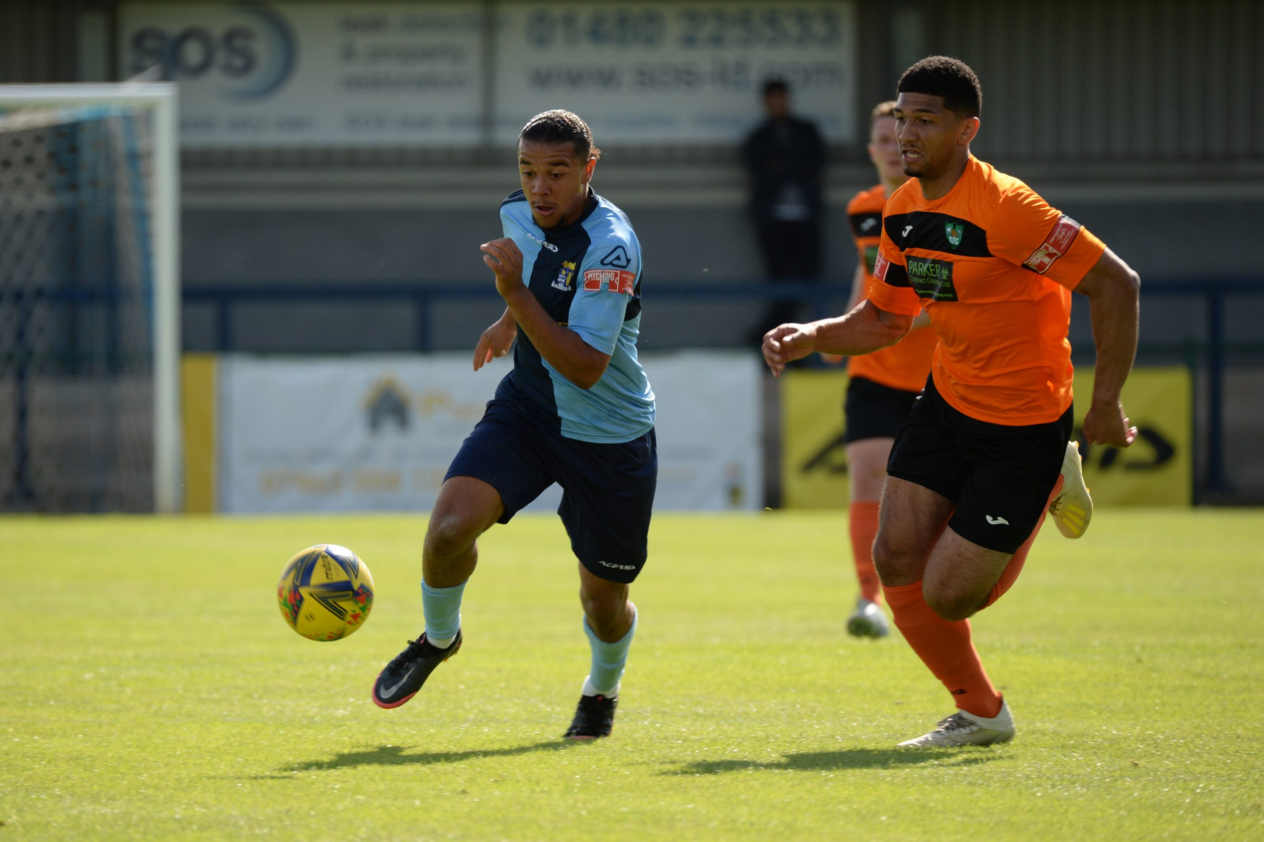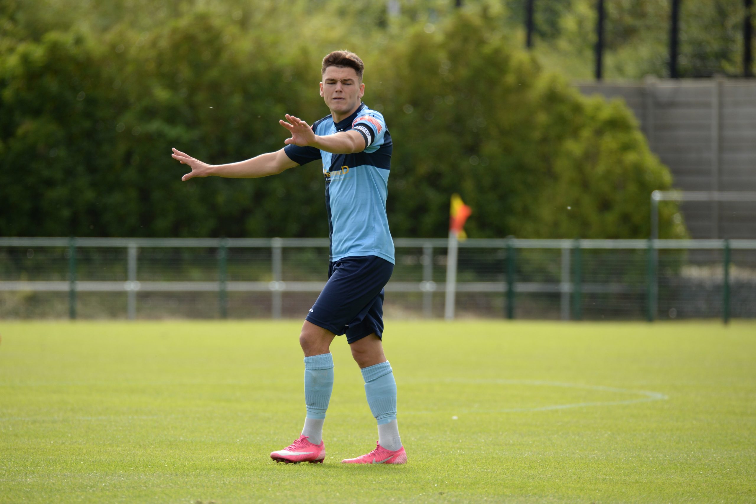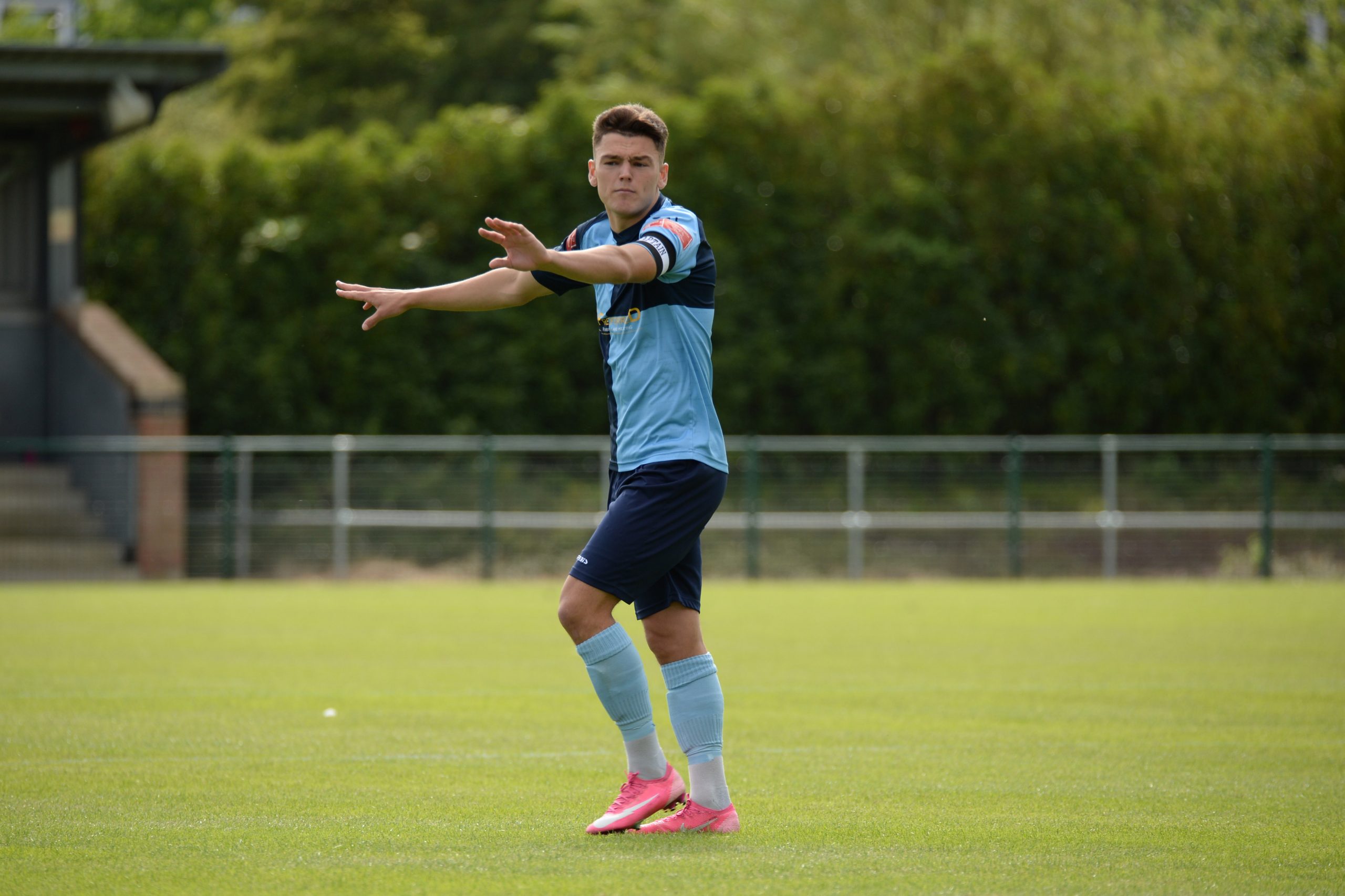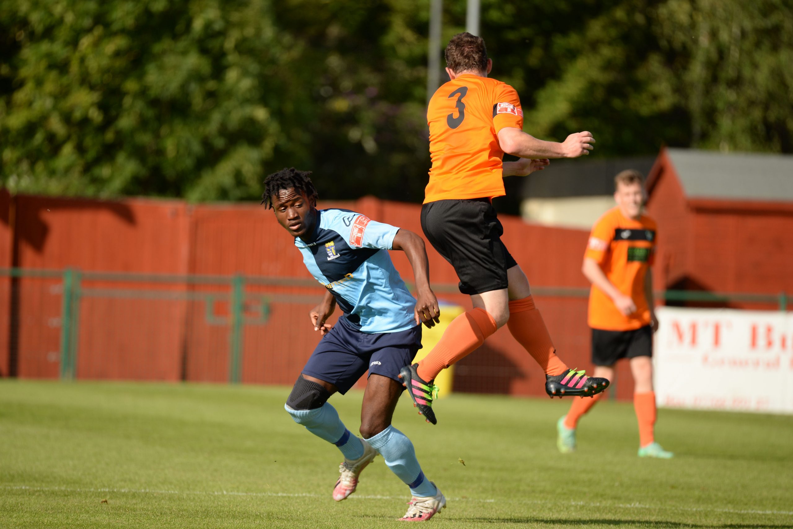 St Neots made much the better start creating two good chances before taking the lead on 13 minutes. Charley Barker stung Harry Way’s hands with a 30 yarder after four minutes and three minutes later the visiting keeper was again in action parrying a Myles Cowling effort after unselfish play by Joe Rider. The opening goal came courtesy of a Joe Rider penalty kick after visiting skipper Lewis Gabbidon had scythed down Cowling as he wove his way through the defence. Briefly the visitors rallied, and John Mills sent a free kick from a promising position high over the crossbar, and a Gabbidon free kick was pushed away by Louis Chadwick. St Neots continued to dominate from midfield and ten minutes before the break the mercurial Myles Cowling did negotiate his way through the visiting defence to score his first goal of the season. Rider then got the ball in the net only to by pulled back by an offside flag and as half time approached Cowling had two further chances to increase the home lead. He first went around the last defender and goalkeeper only to be denied by too narrow an angle as he found the side netting, and then after a flowing team move Lee Watkins set him up at the far post but his finish was too high. However, St Neots were not to be denied and in the final seconds of the first period Barker crossed to the far post for Joe Rider to claim his second goal of the match.