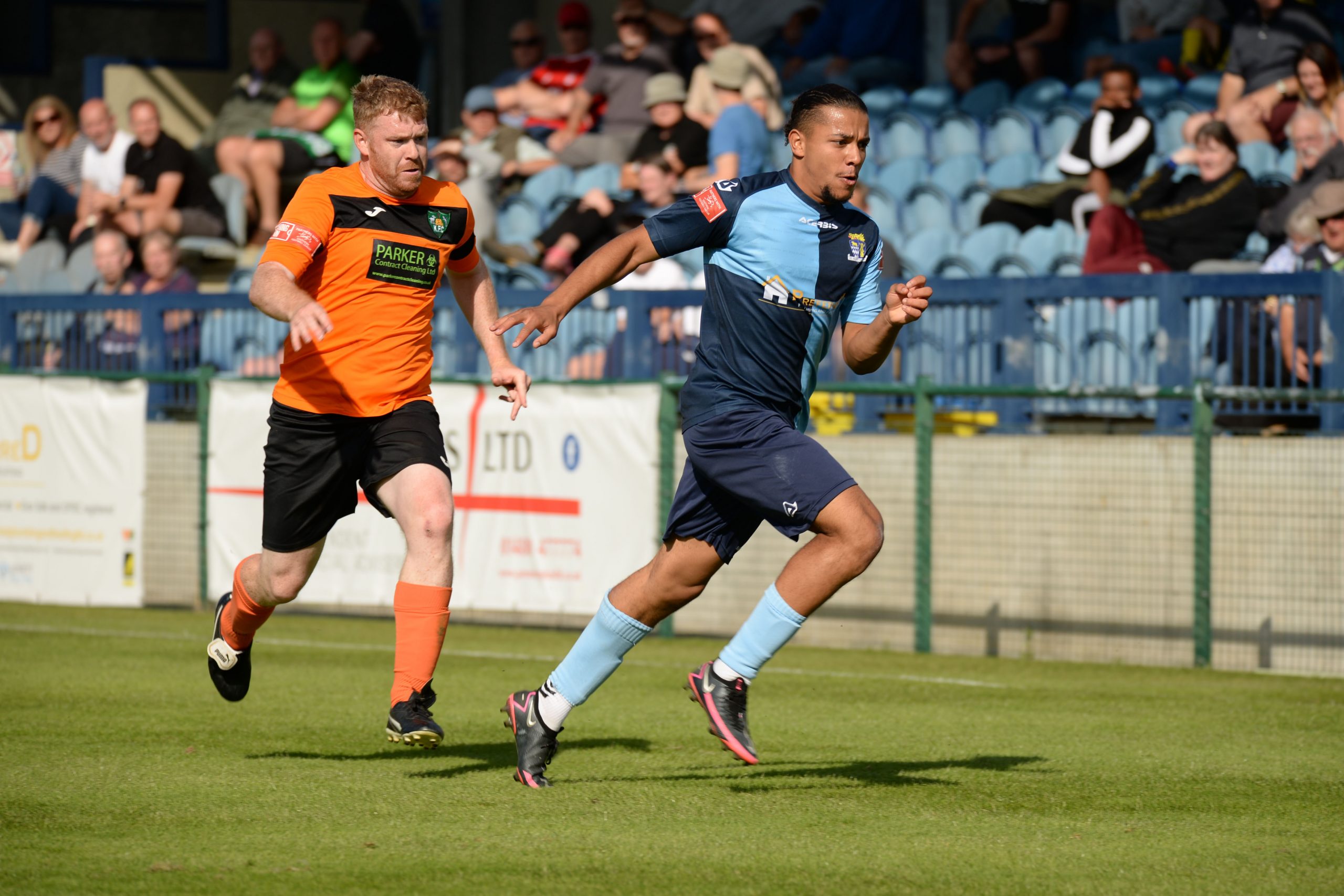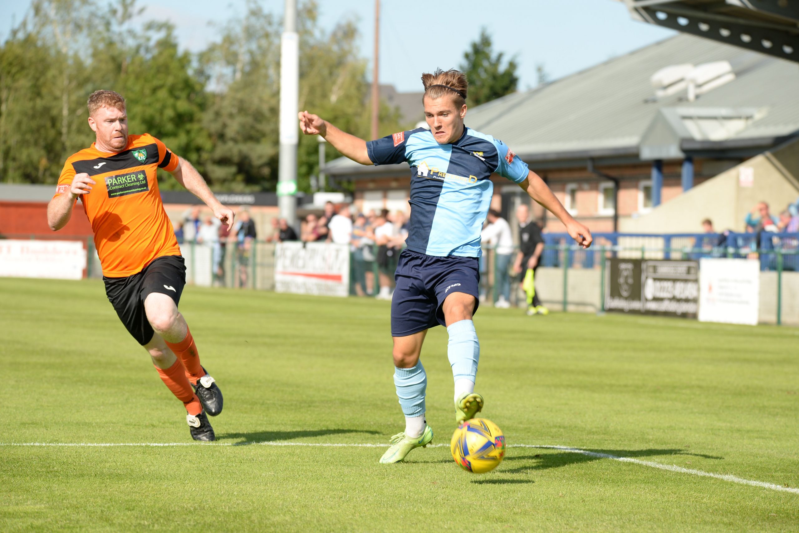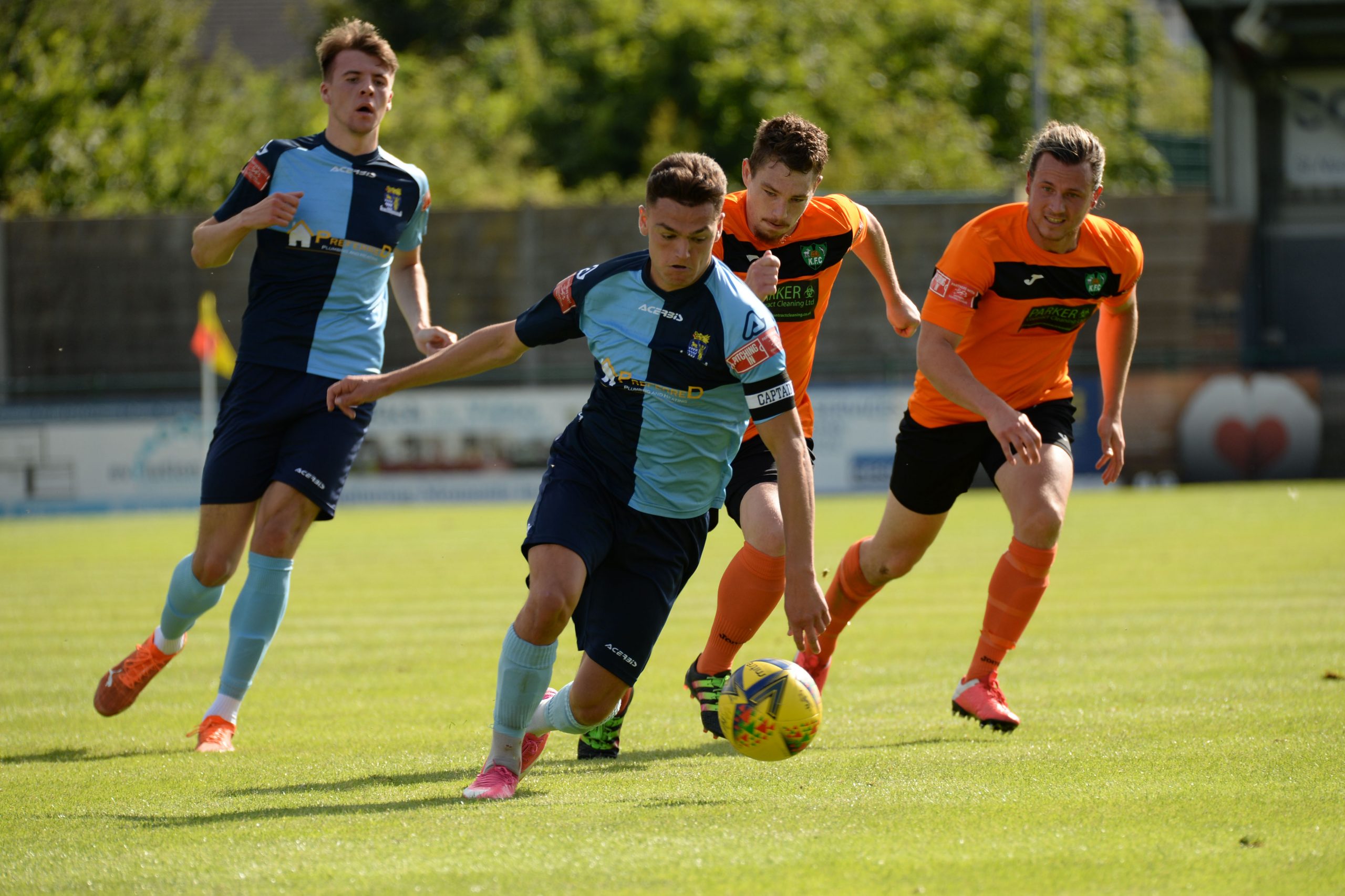 After two heavy defeats Kidlington arrived on a back of a surprise away FA Cup victory at North Leigh but they never really competed in this match and the final tally against them could have been higher. Even an extended half time break due to an injury to one of the officials failed to dampen St Neots hold on the match and they deserved their success with man of the match Myles Cowling turning in a sparkling individual performance. Manager Pete Gill made two team changes reinstating Callum Anderson in midfield and Joe Rider up front, leaving Erin Amu and Lawrence Hammond on the substitutes bench. It was Kidlington’s first appearance at the Premier Plus Stadium with the previous two seasons’ scheduled visits ruled out by COVID-19.