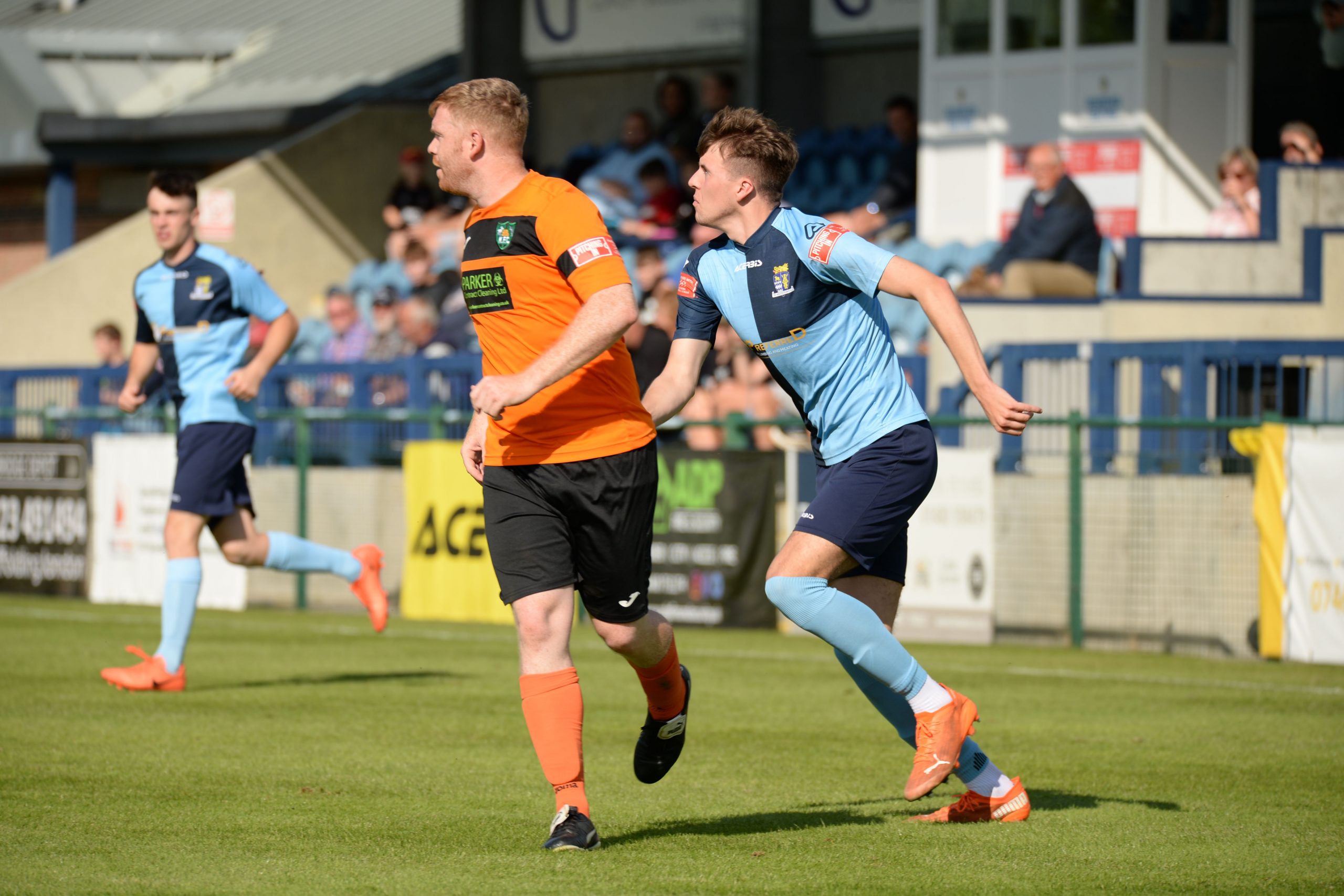 An appeal for a replacement for an injured Assistant Referee was answered from the crowd and the second half got under way after an extended half time break. Lee Watkins picked up a yellow card for a late challenge and then Kidlington went for broke as they sent on all three permitted substitutes in a bid to revitalise their approach. Despite reshaping their line-up, they were caught short in defence after 64 minutes as Neo Richard-Noel again fed by Cowling, picked his spot with a searing finish to make the score 4-0. That was the signal for St Neots to give substitutes some game time with Florian Tsaguim, Erin Amu and Lawrence Hammond all introduced for Richard-Noel, Cowling and Watkins. For a spell they seemed to coast on their comfortable lead and Kidlington looked more confident as substitute Jordan Godfrey brought a fine full length save from Chadwick after 71 minutes. With 13 minutes left visiting skipper Gabbidon was sent off after a rash two footed tackle and that signalled the end of the visitors’ attacking efforts. St Neots comfortably finished the match creating three more good scoring opportunities with Rider shooting narrowly wide, substitute Florian Tsaguim getting the ball in the net but being ruled offside, and Ben Heal bringing the save of the match from Way as he twisted in the air to turn the ball over the crossbar. It was an overall satisfactory performance and will have boosted the confidence of Pete Gill’s side.